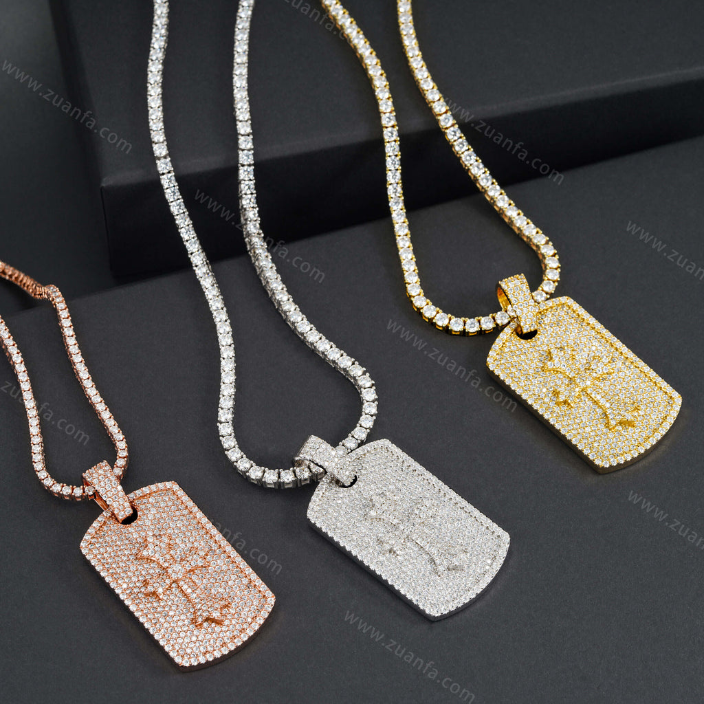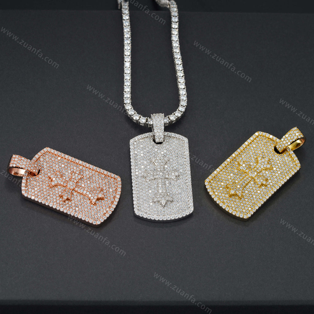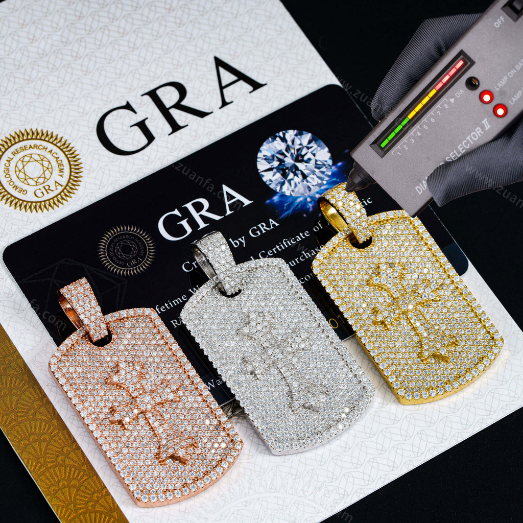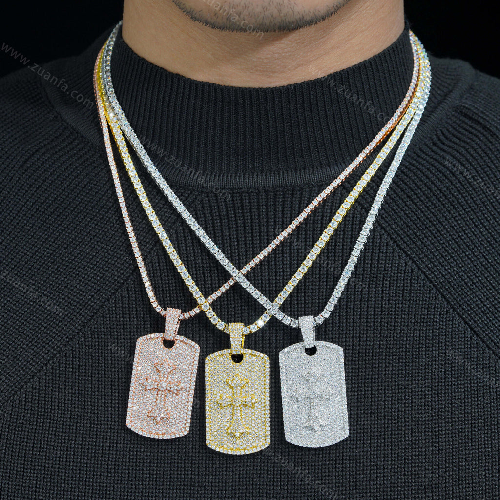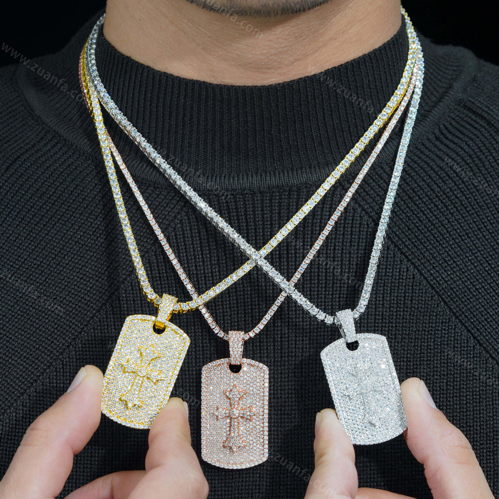Iced Out Cross Dog Tag Moissanite Pendant 18k Gold