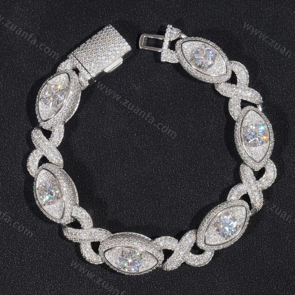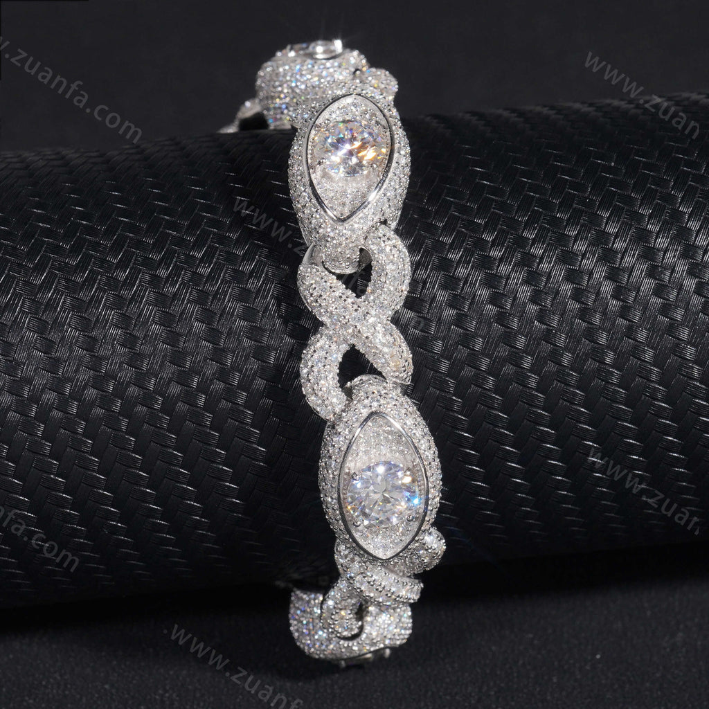 This Zuanfa exclusive 13MM Moissanite Cuban Link Bracelet is made from 925 sterling silver and plated with a thick layer of 18K Gold.