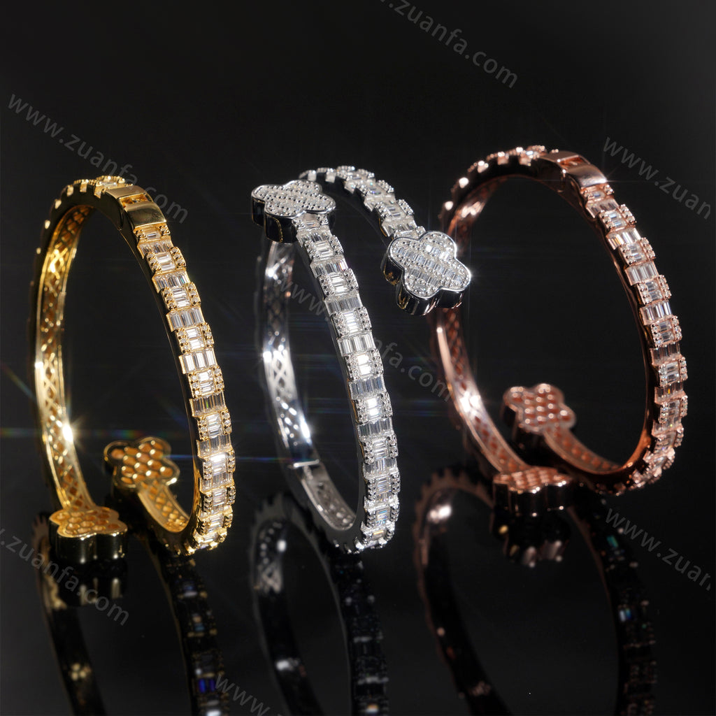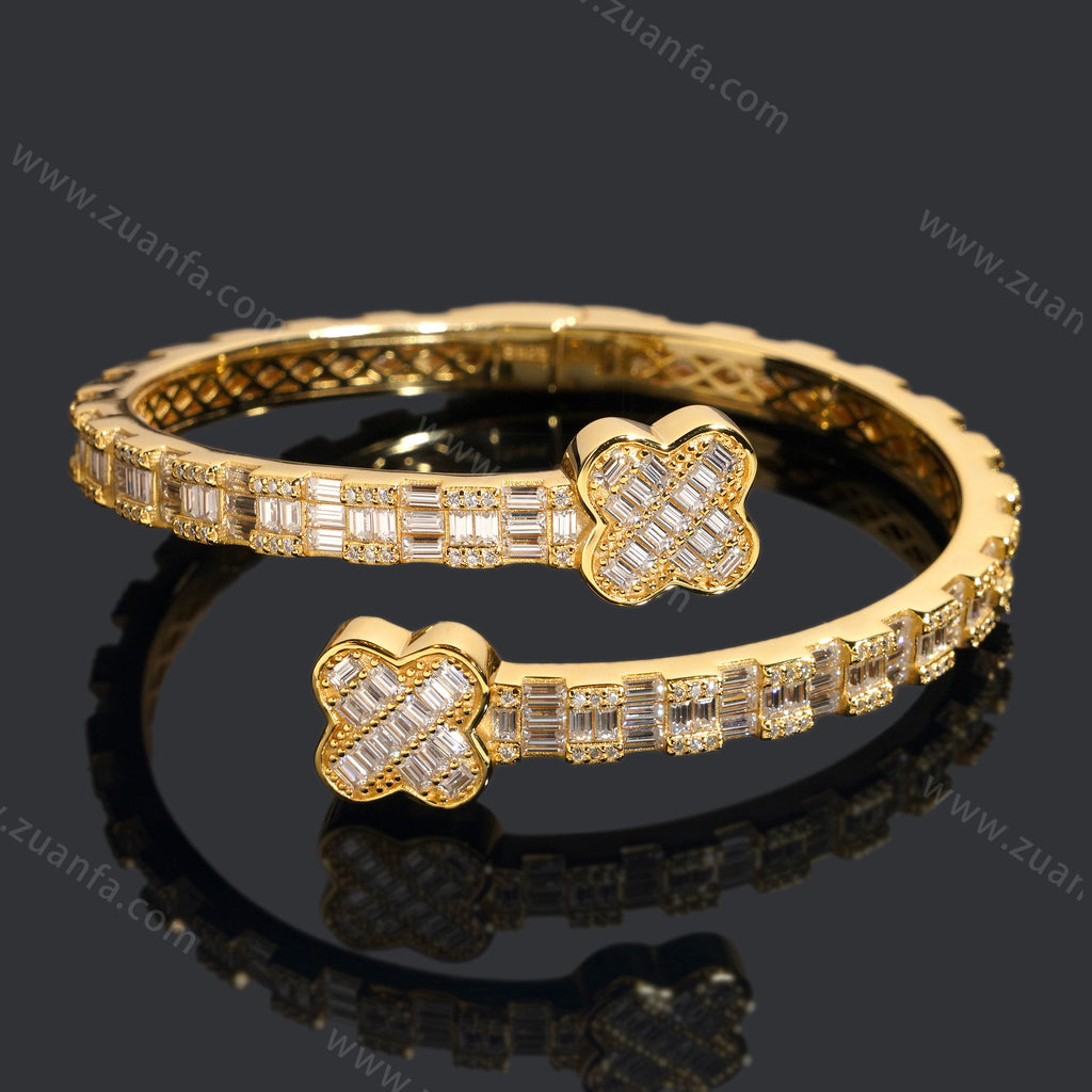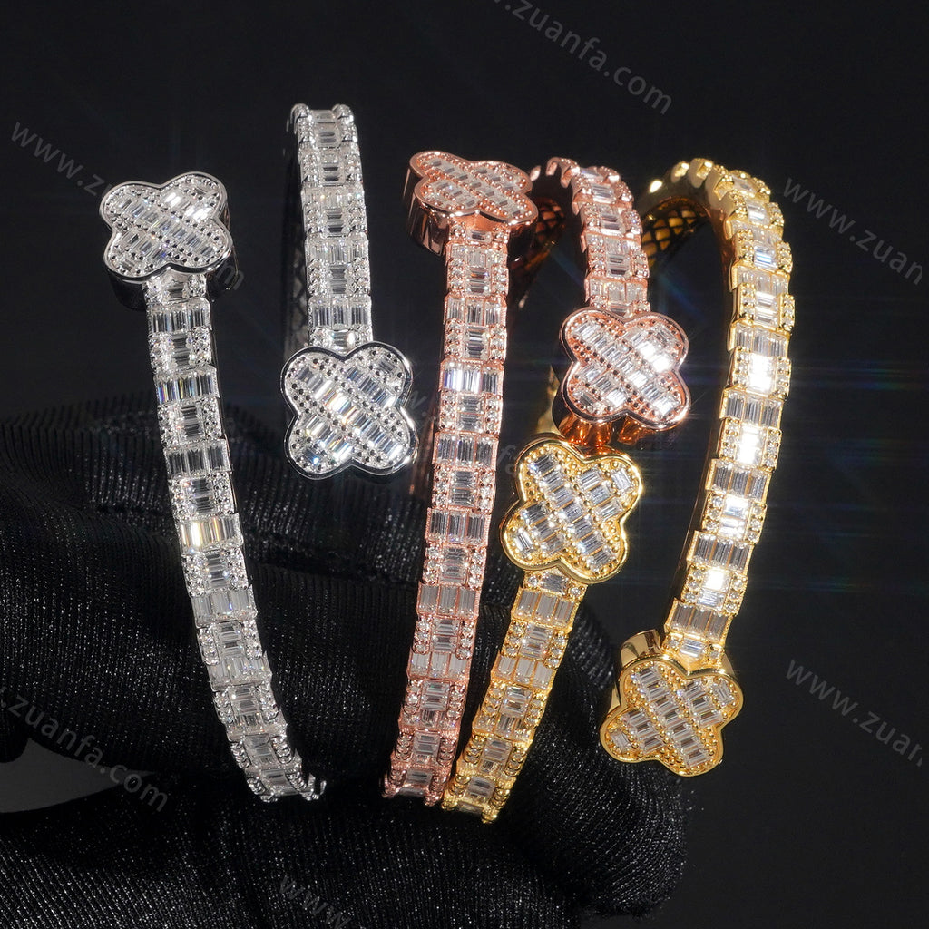 Four Leaf Clover Lock Baguette Moissanite Bangle