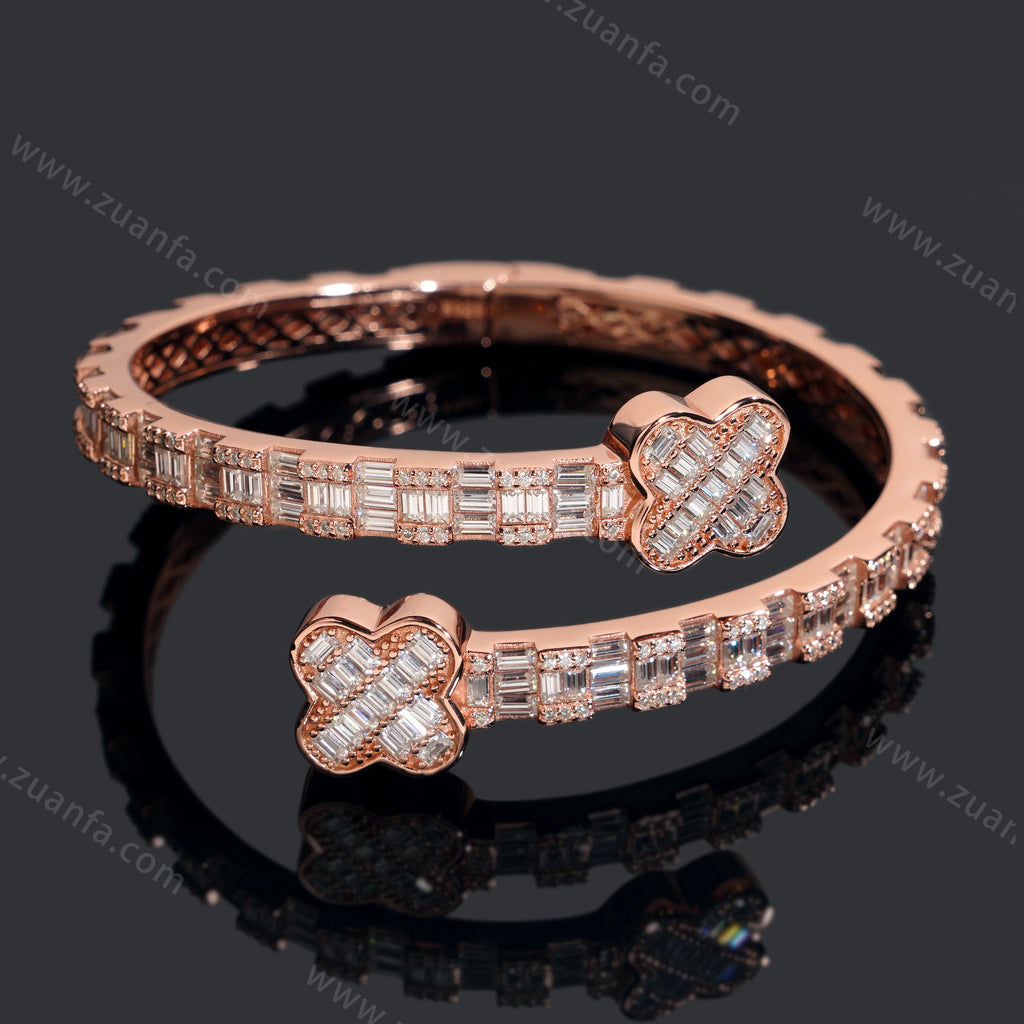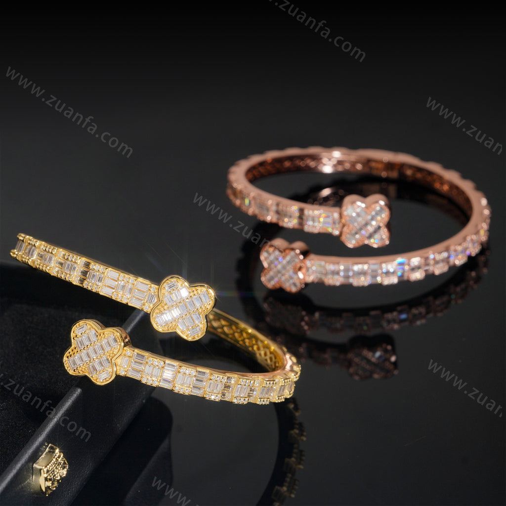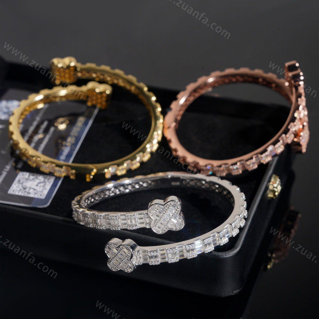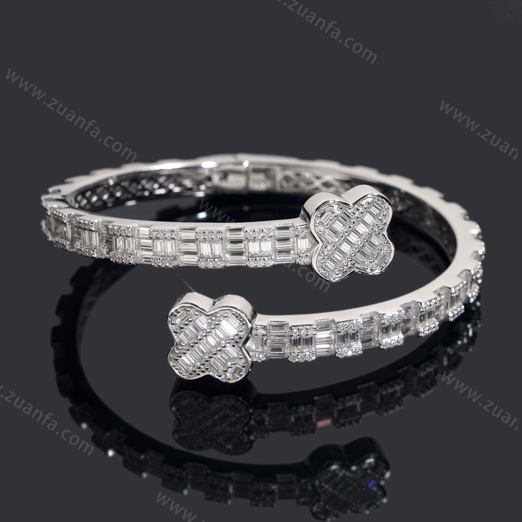 Four Leaf Clover Lock Baguette Moissanite Bangle