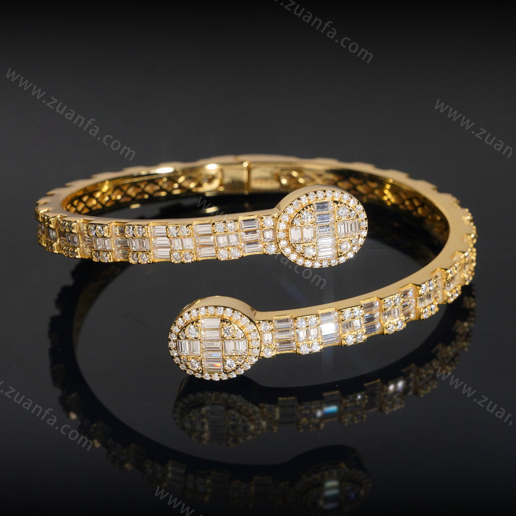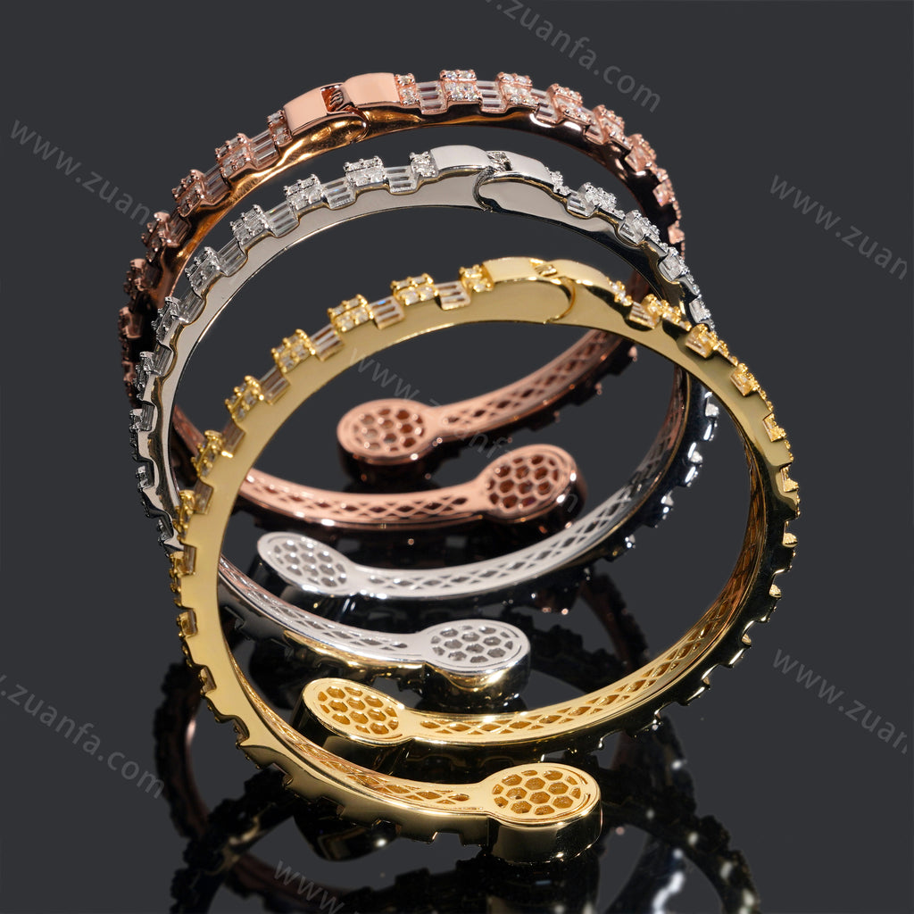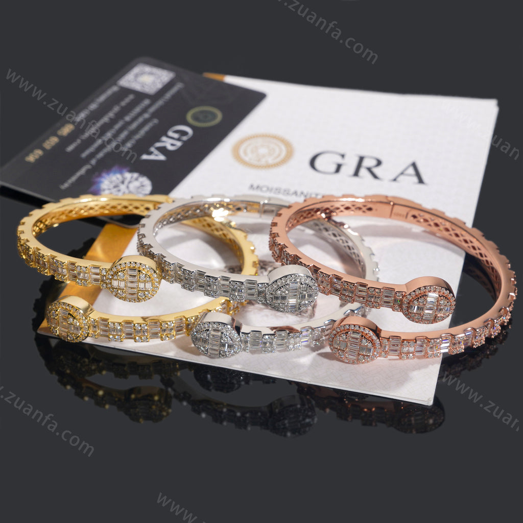 This Zuanfa exclusive Moissanite Bangle is made from 925 sterling silver and plated with a thick layer of 18K Gold.