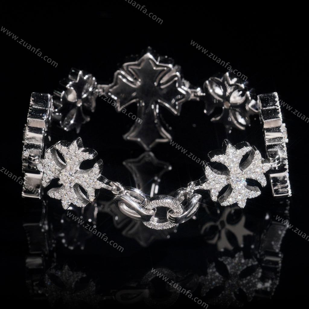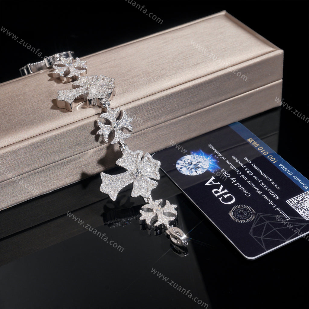 Snow Mixed Cross Moissanite Cuban Link Bracelet