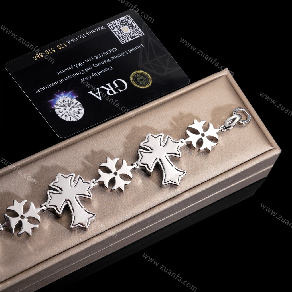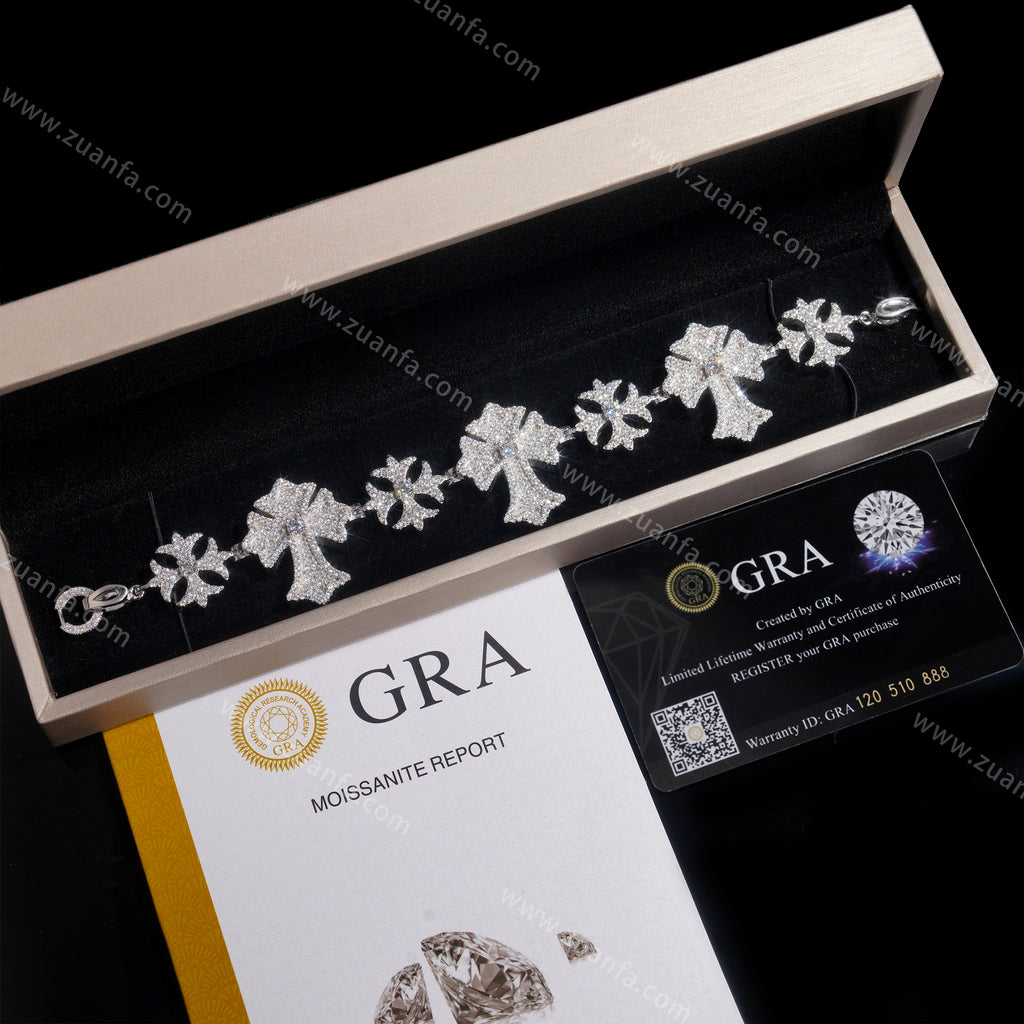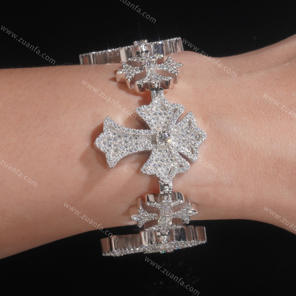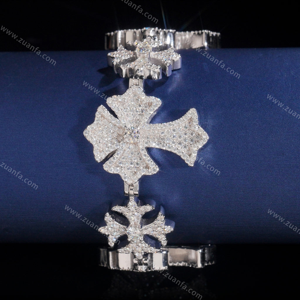 This Zuanfa exclusive Cross Moissanite Cuban Link Bracelet is made from 925 sterling silver and plated with a thick layer of 18K Gold.