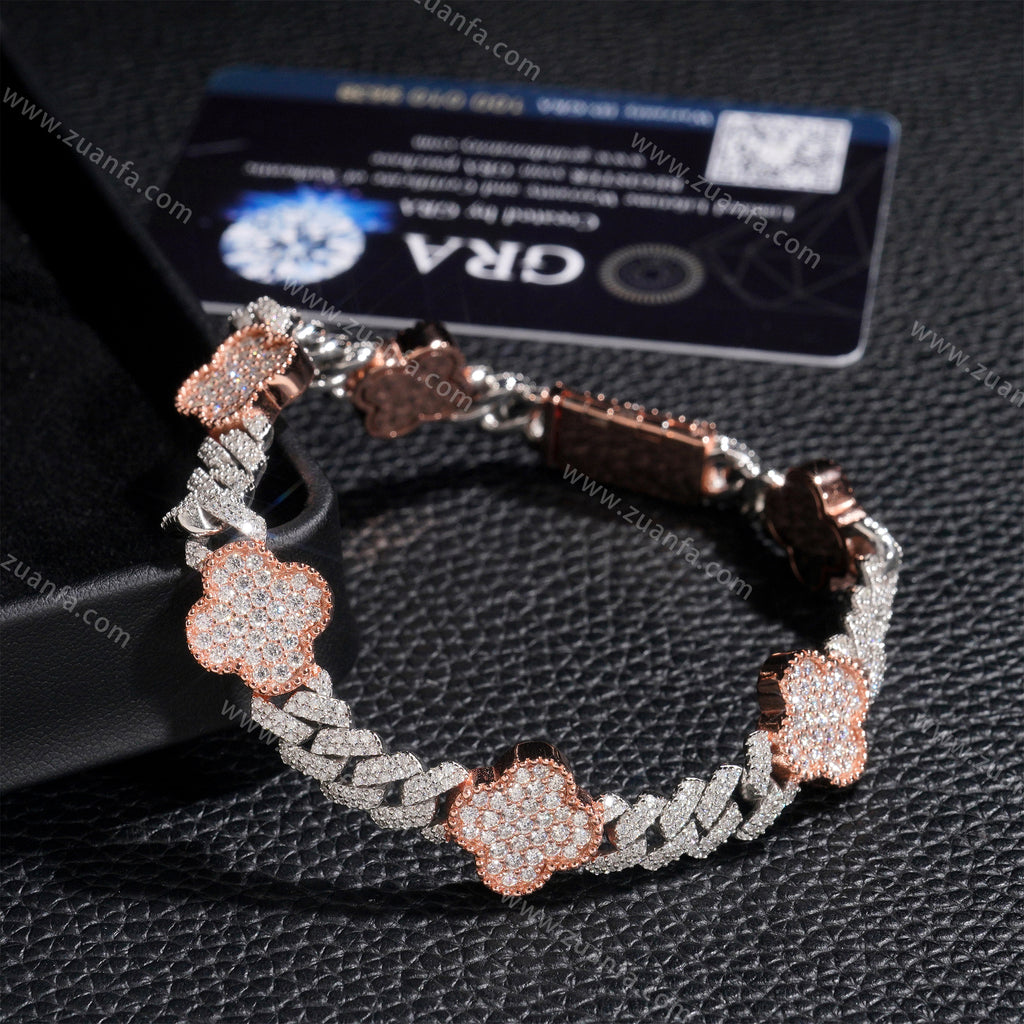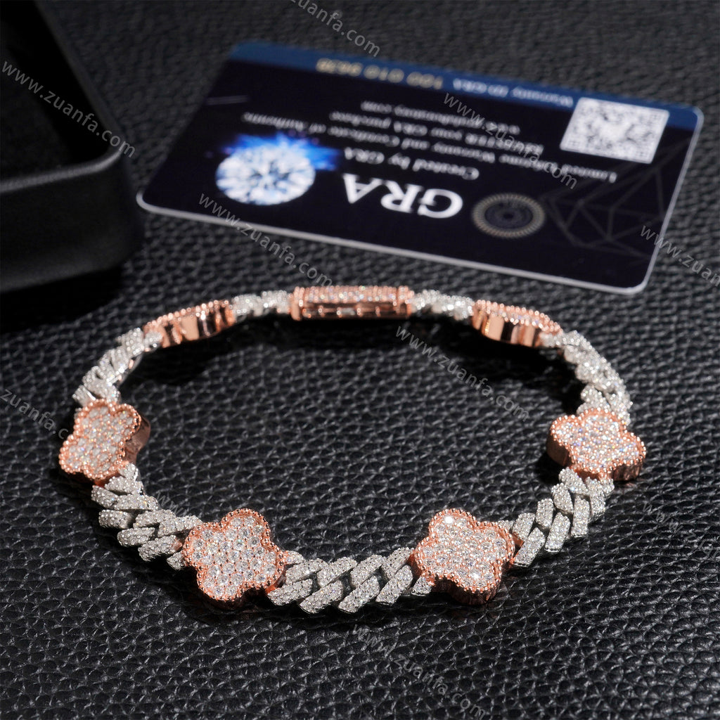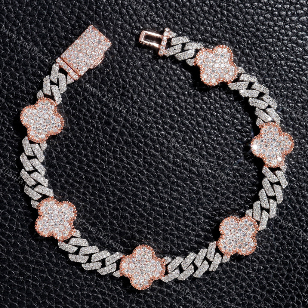 Two Row 8MM Clover Moissanite Cuban Link Bracelet