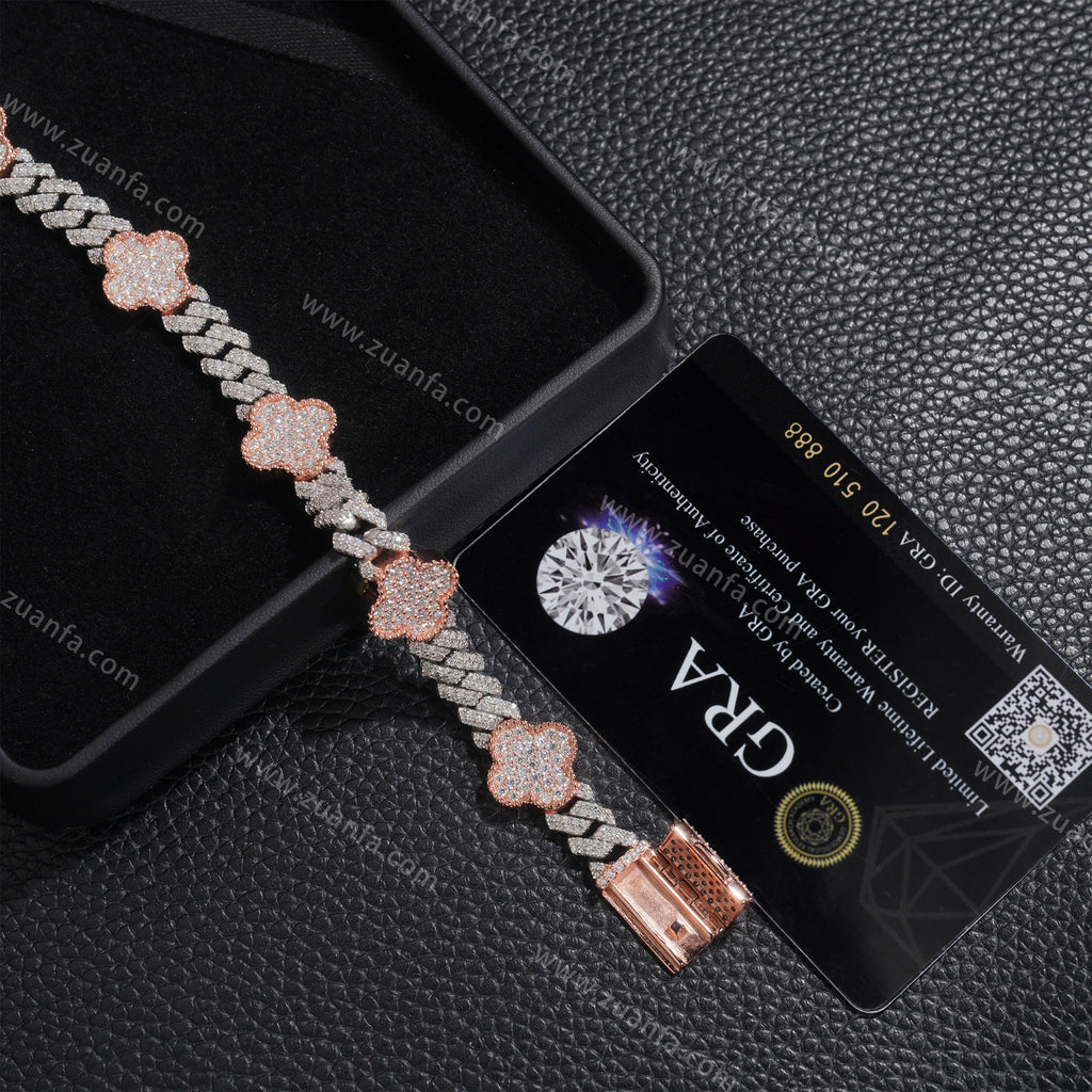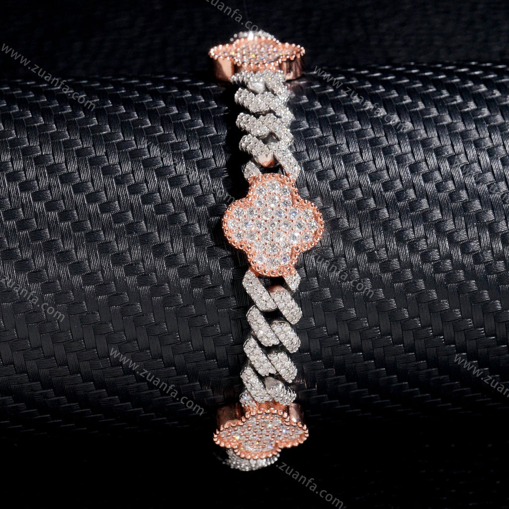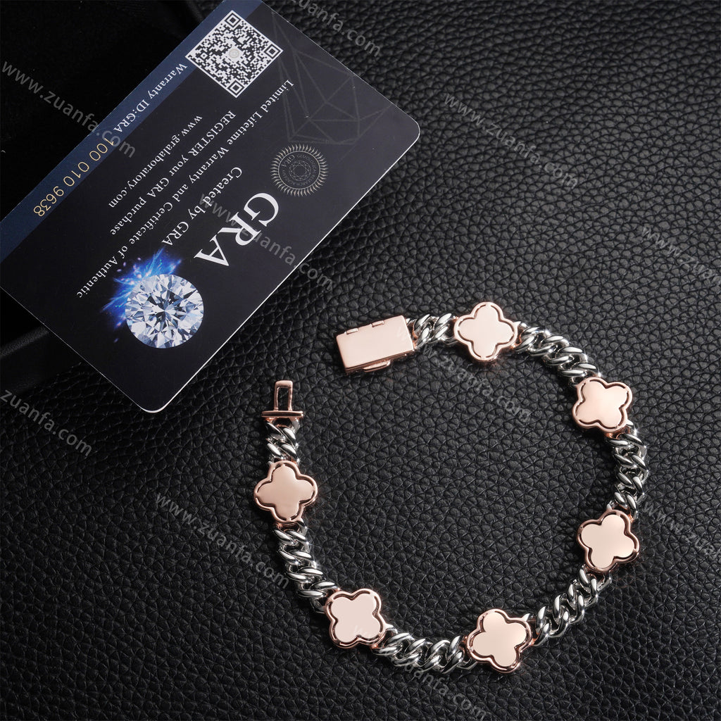 Two Row 8MM Clover Moissanite Cuban Link Bracelet