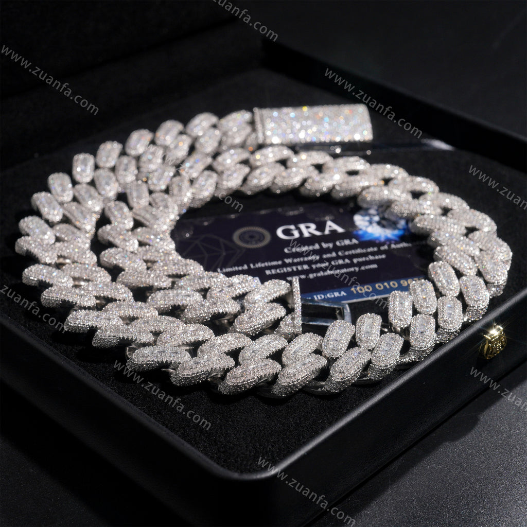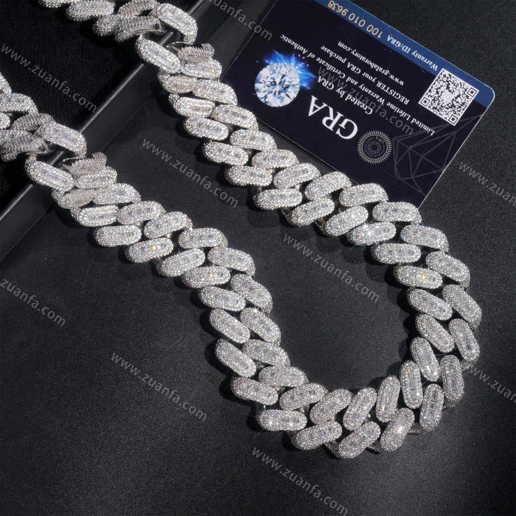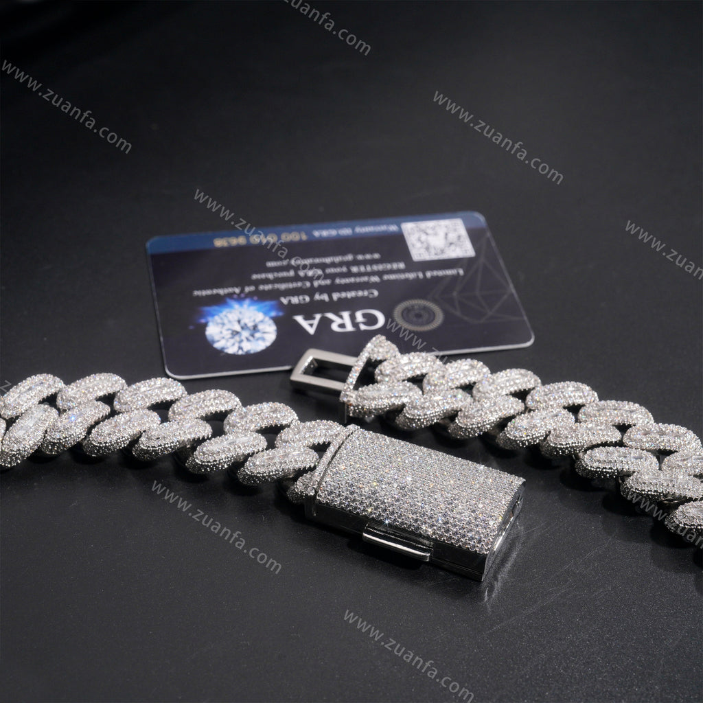 This Zuanfa exclusive 22MM Moissanite Cuban Link Chain is made from 925 sterling silver and plated with a thick layer of 18K Gold.