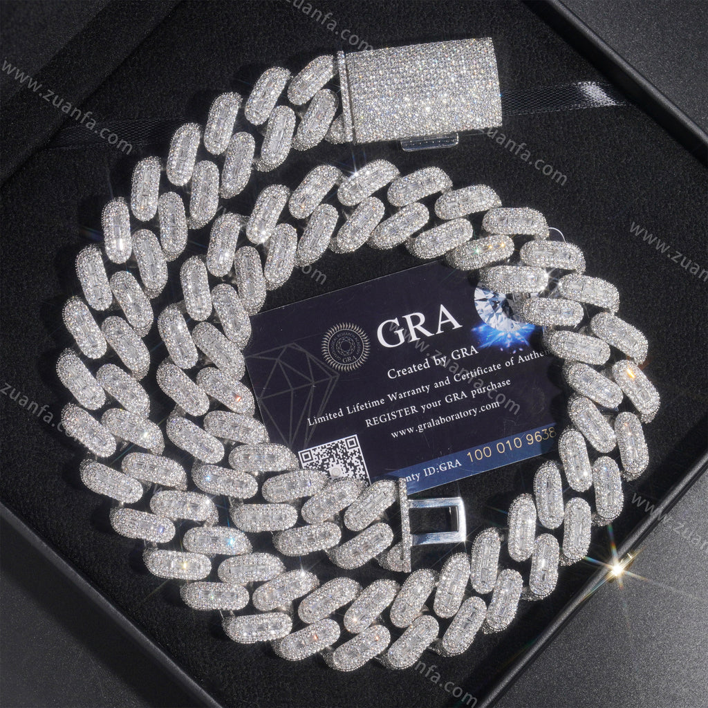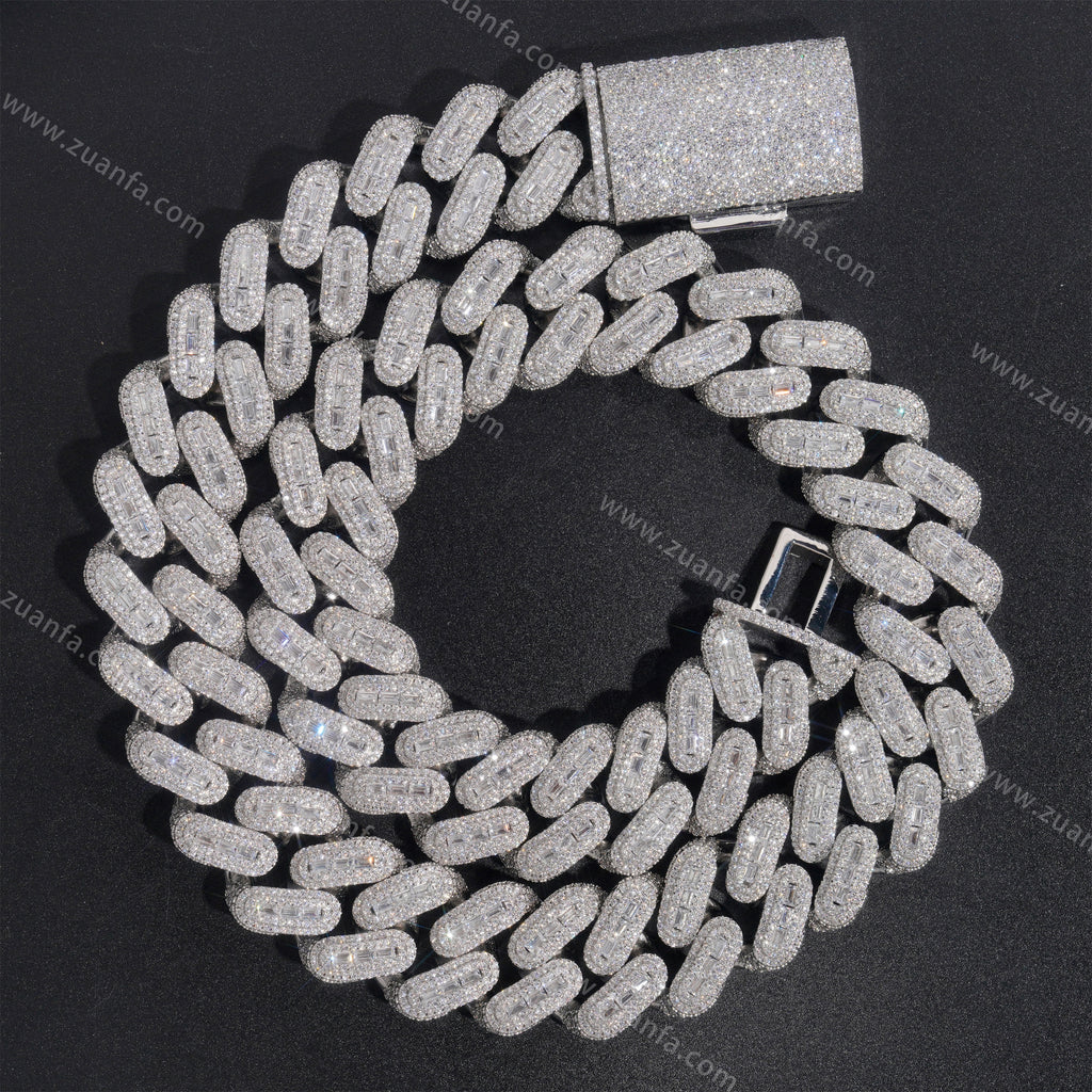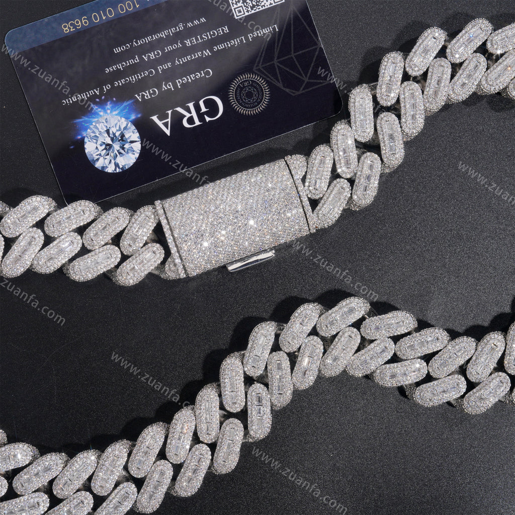 This Zuanfa exclusive 22MM Moissanite Cuban Link Chain is made from 925 sterling silver and plated with a thick layer of 18K Gold.