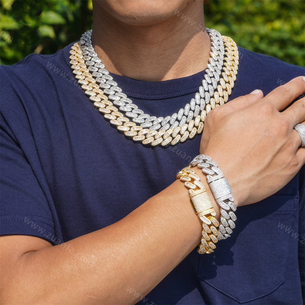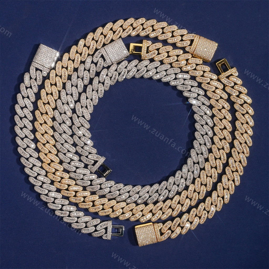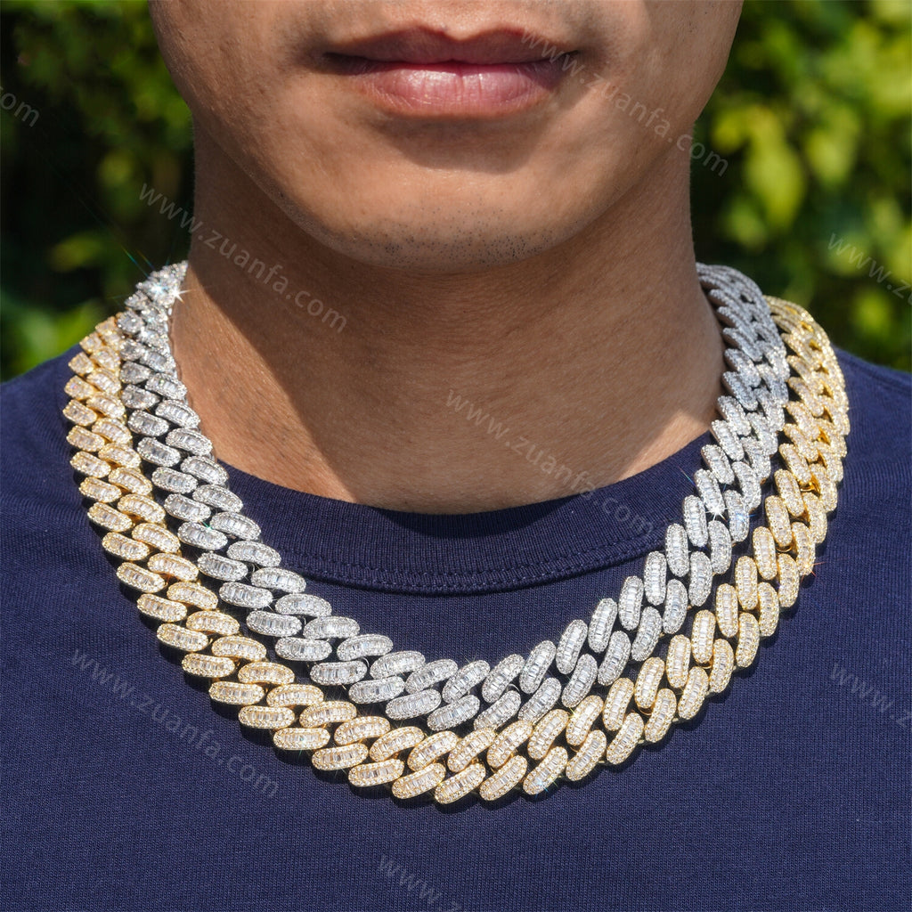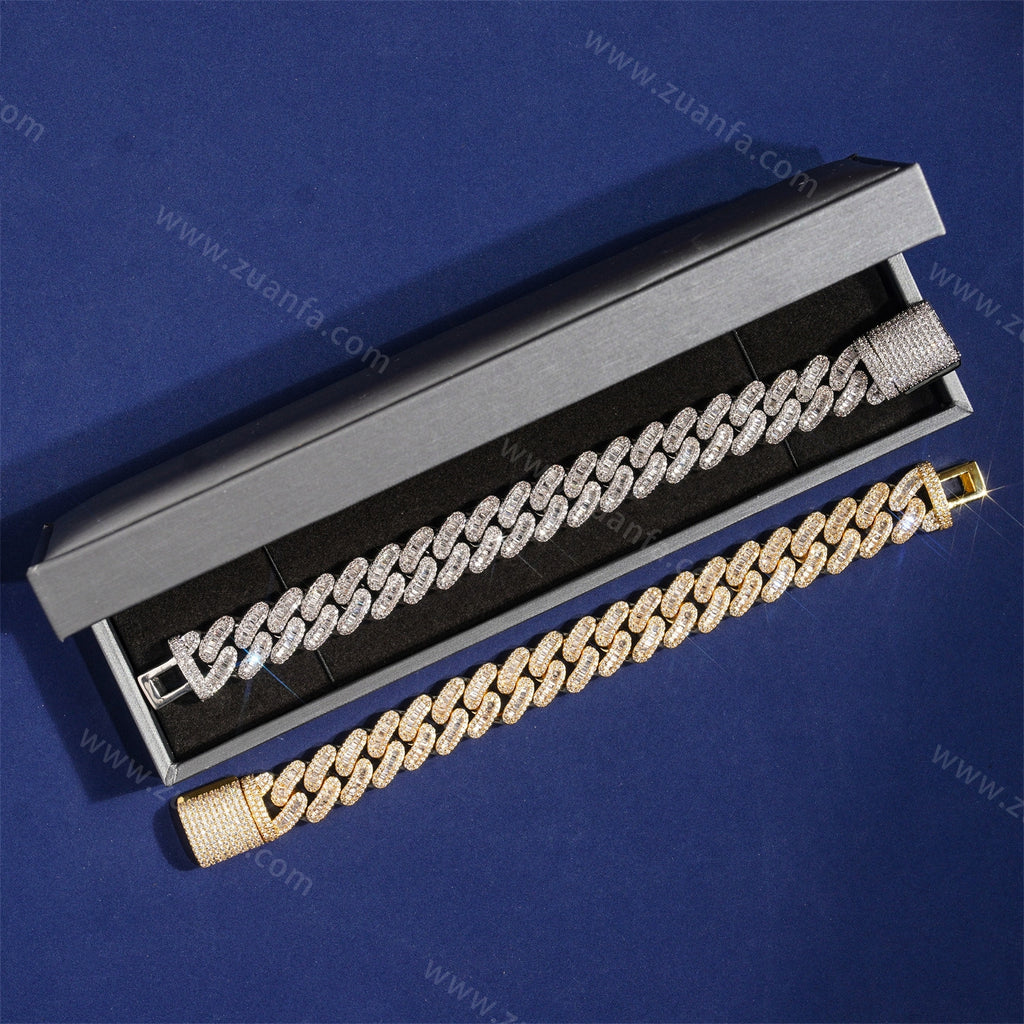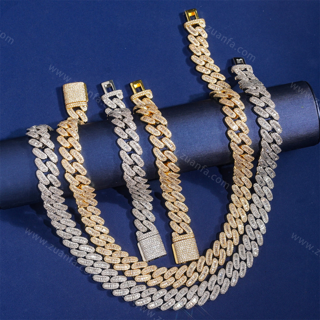 Zuanfa exclusive Round Diamond Iced Out Cuban Link Chain is now available, made of Brass and plated with a thick layer of 18K Gold.