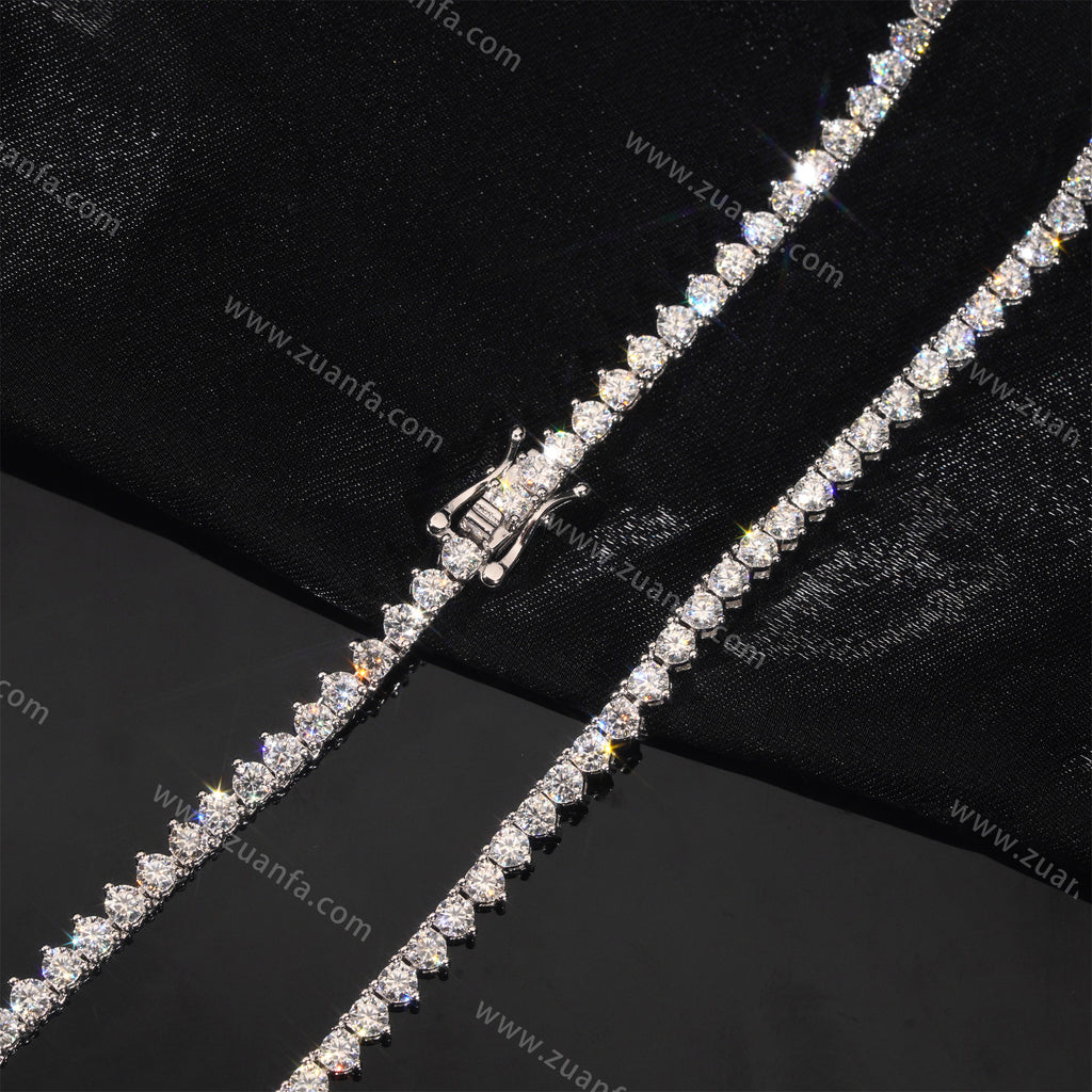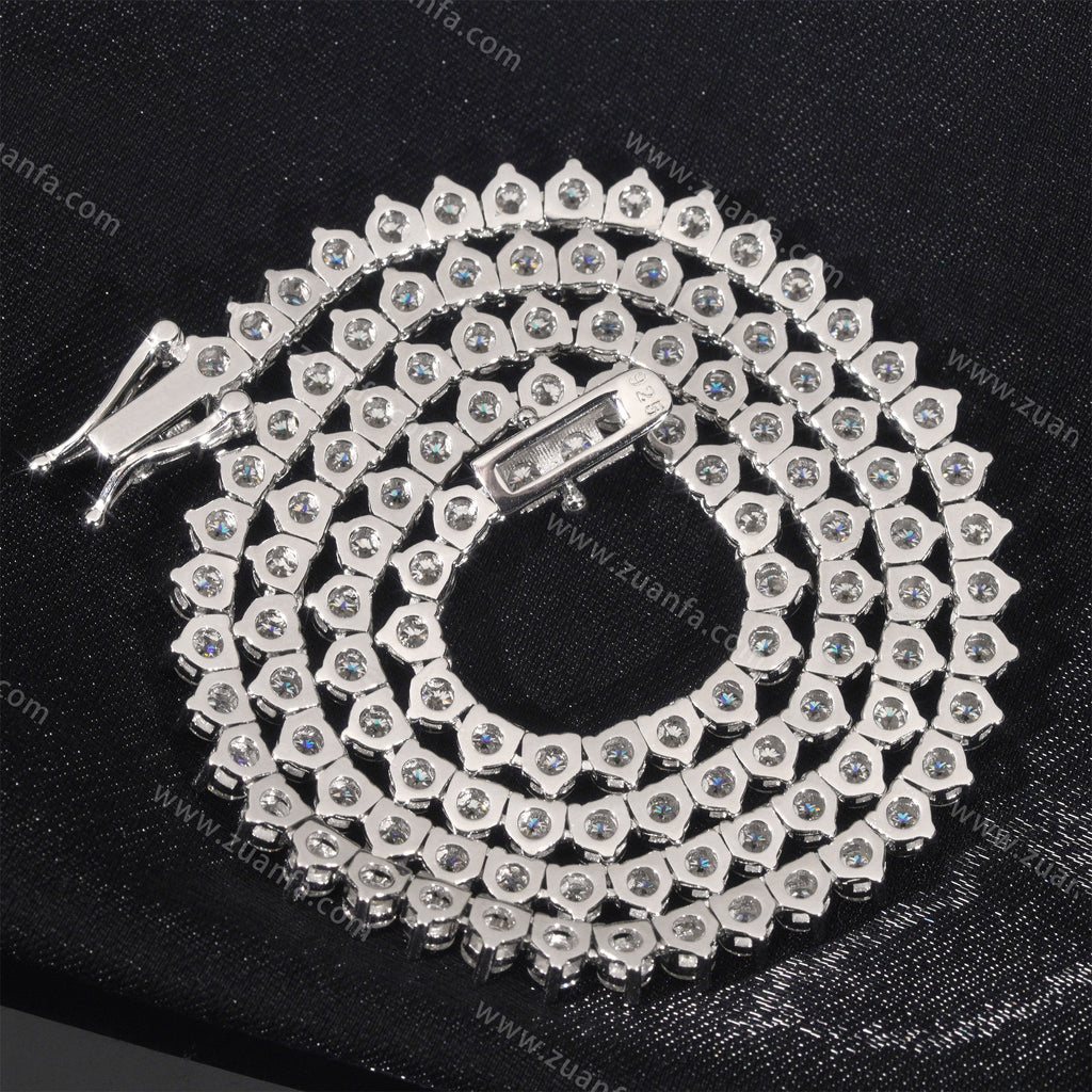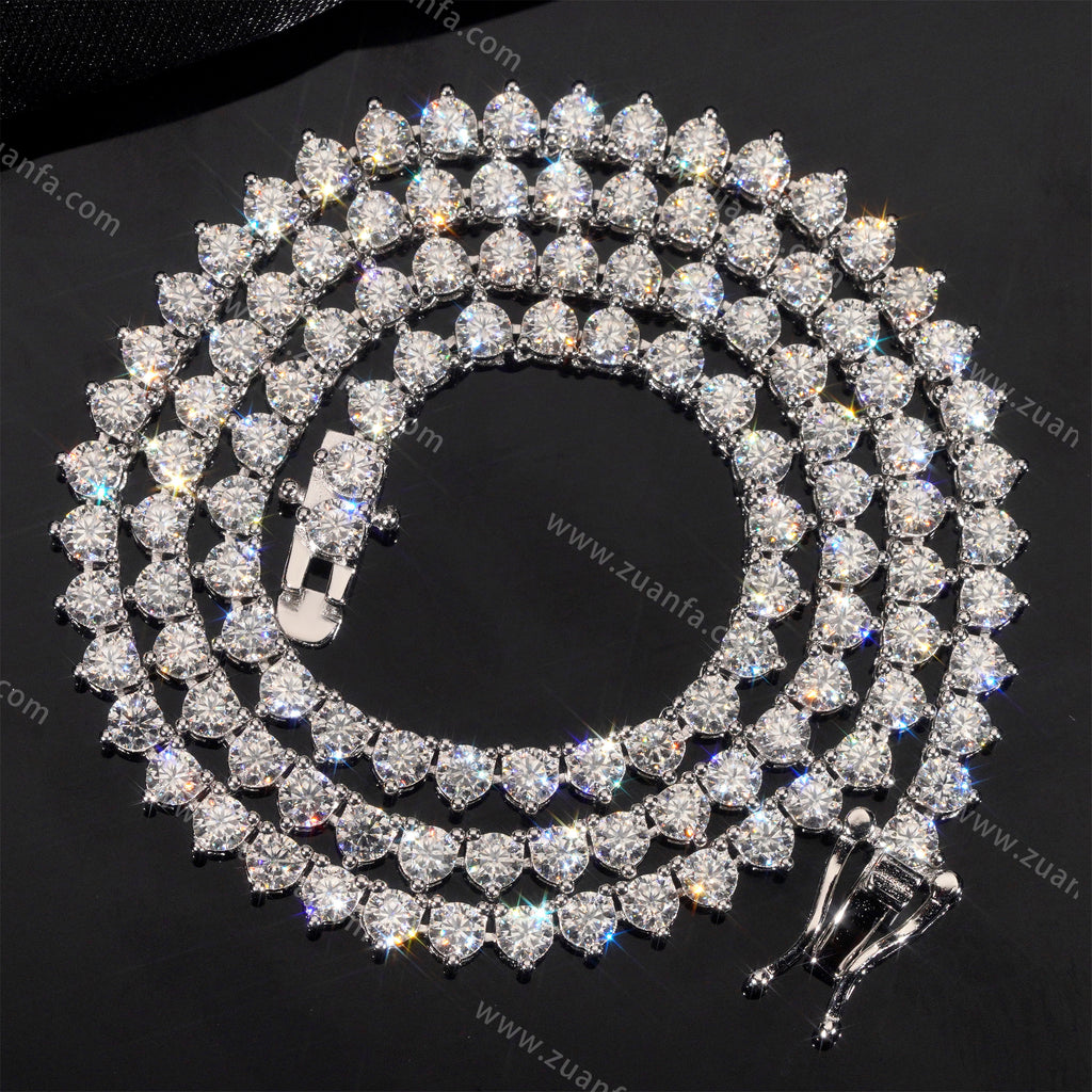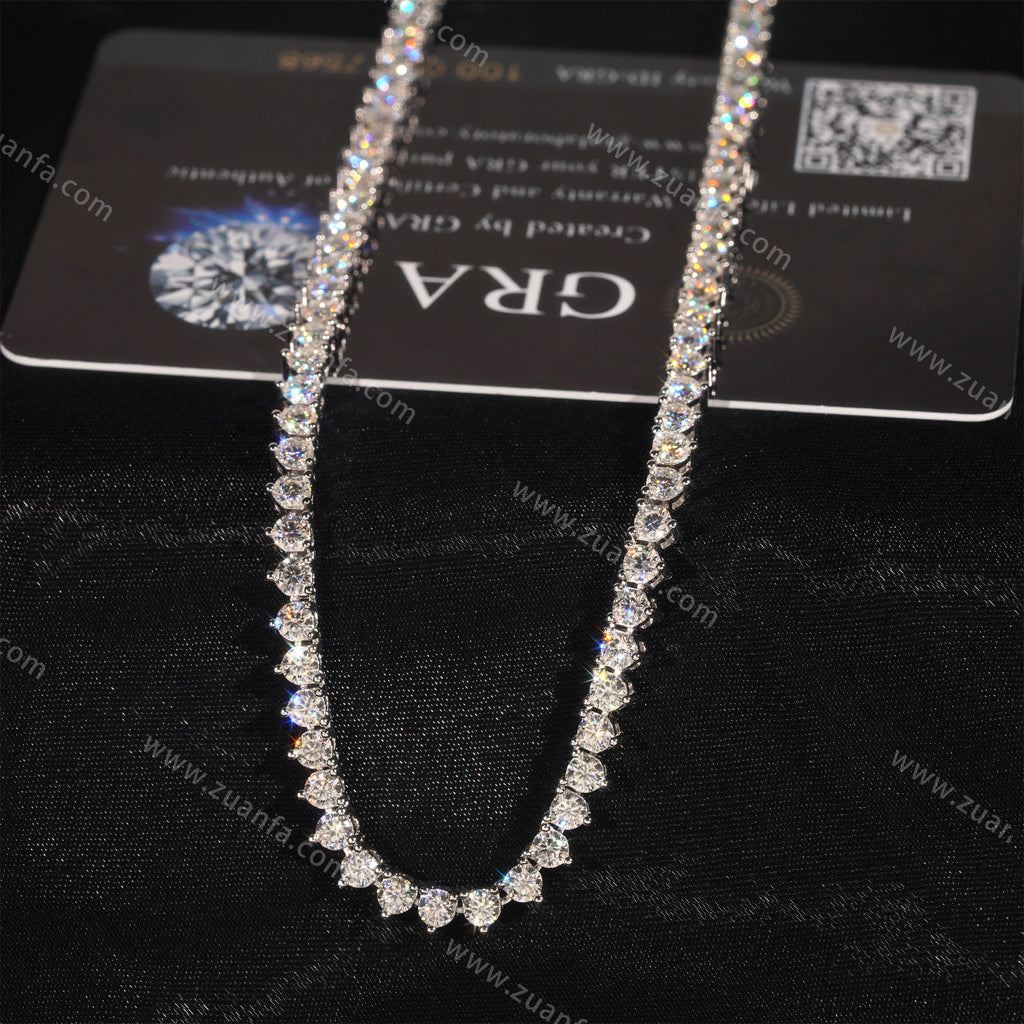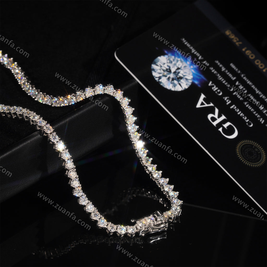 This Zuanfa exclusive 3.0MM Moissanite Tennis Chain is made from 925 sterling silver and plated with a thick layer of 18K Gold.