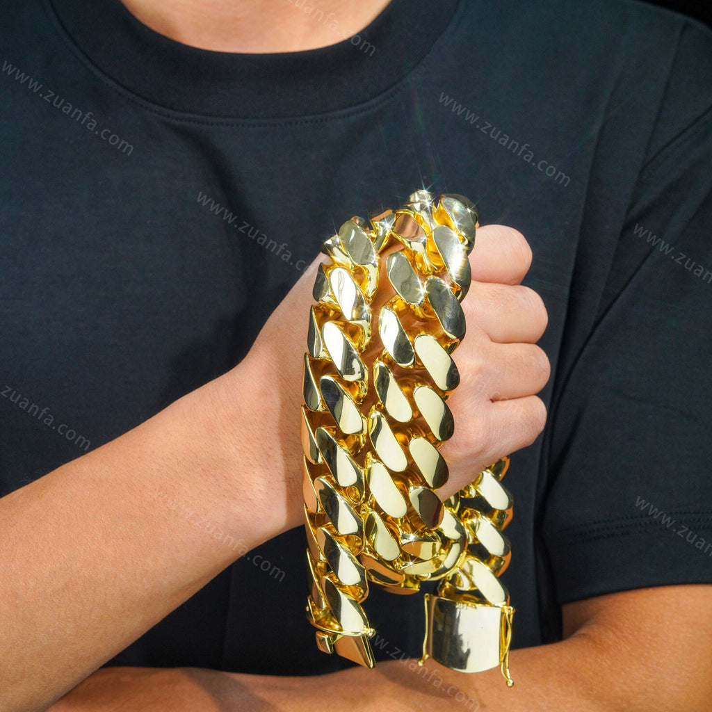 Zuanfa exclusive Plain Cuban Link Chain is now available, made of Brass and plated with a thick layer of 18K Gold.