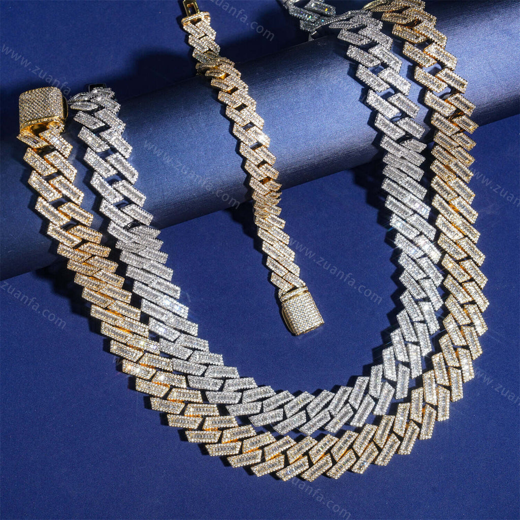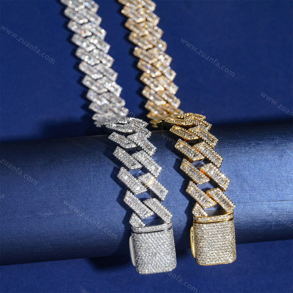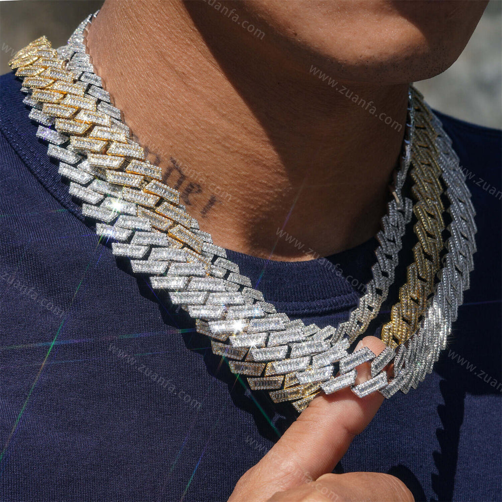 Zuanfa exclusive Round Diamond Iced Out Cuban Link Chain is now available, made of Brass and plated with a thick layer of 18K Gold.
