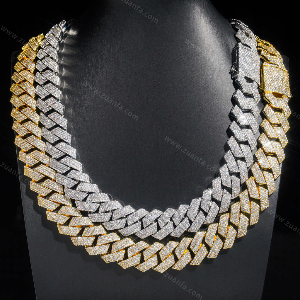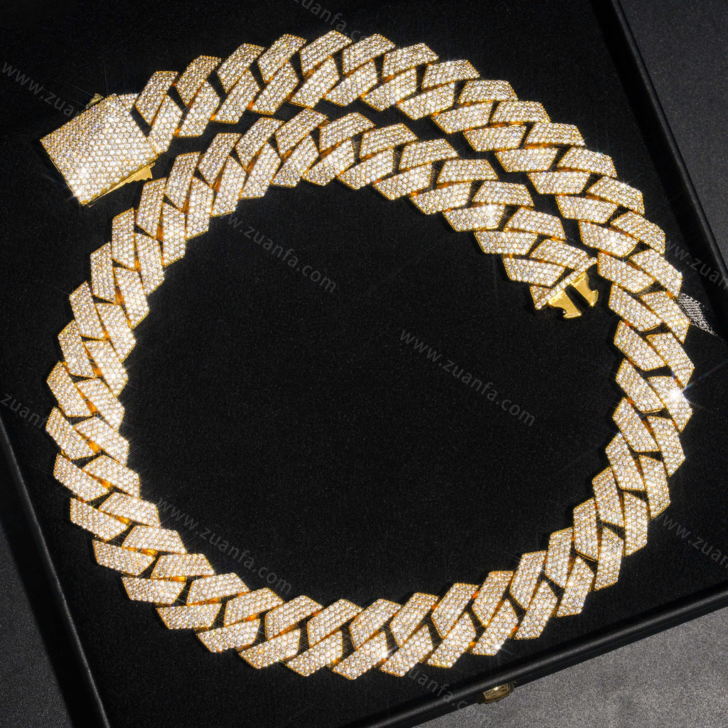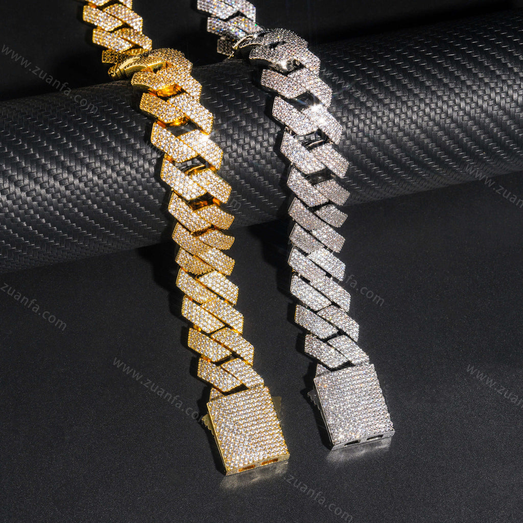 Zuanfa exclusive 20MM Iced Out Diamond Two Rows Cuban Link Chain is now available, made of Brass and plated with a thick layer of 18K Gold.