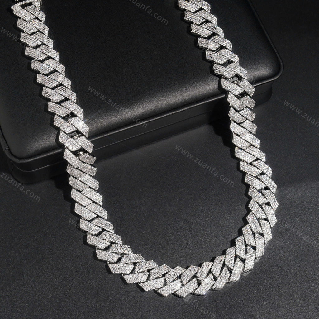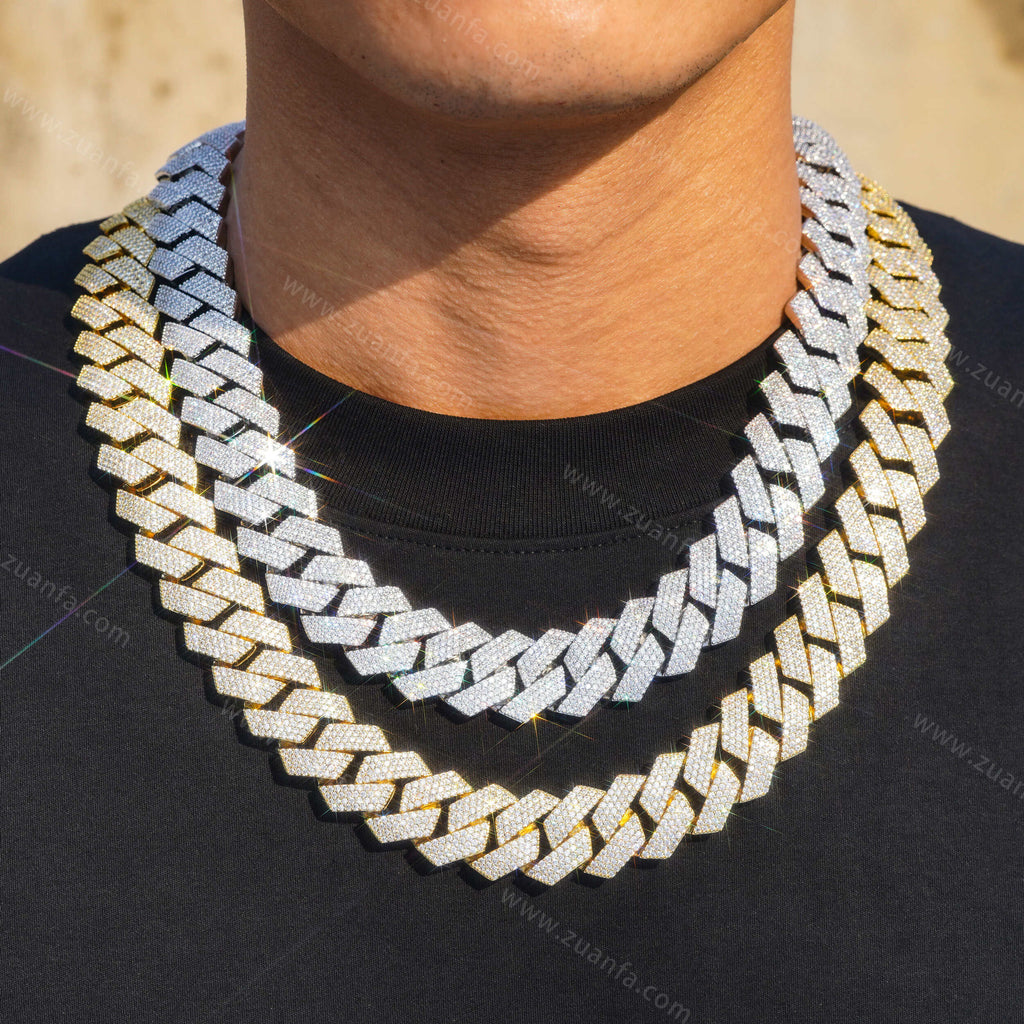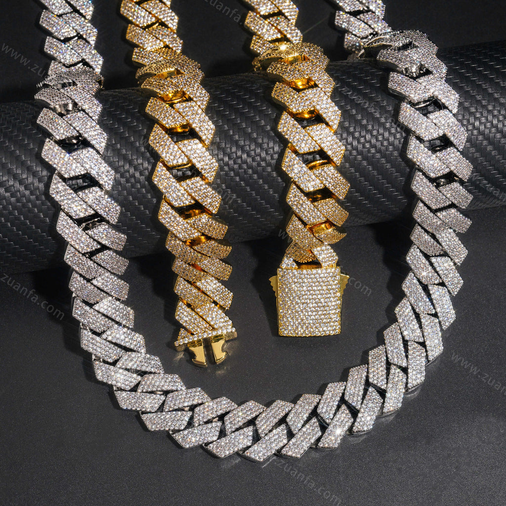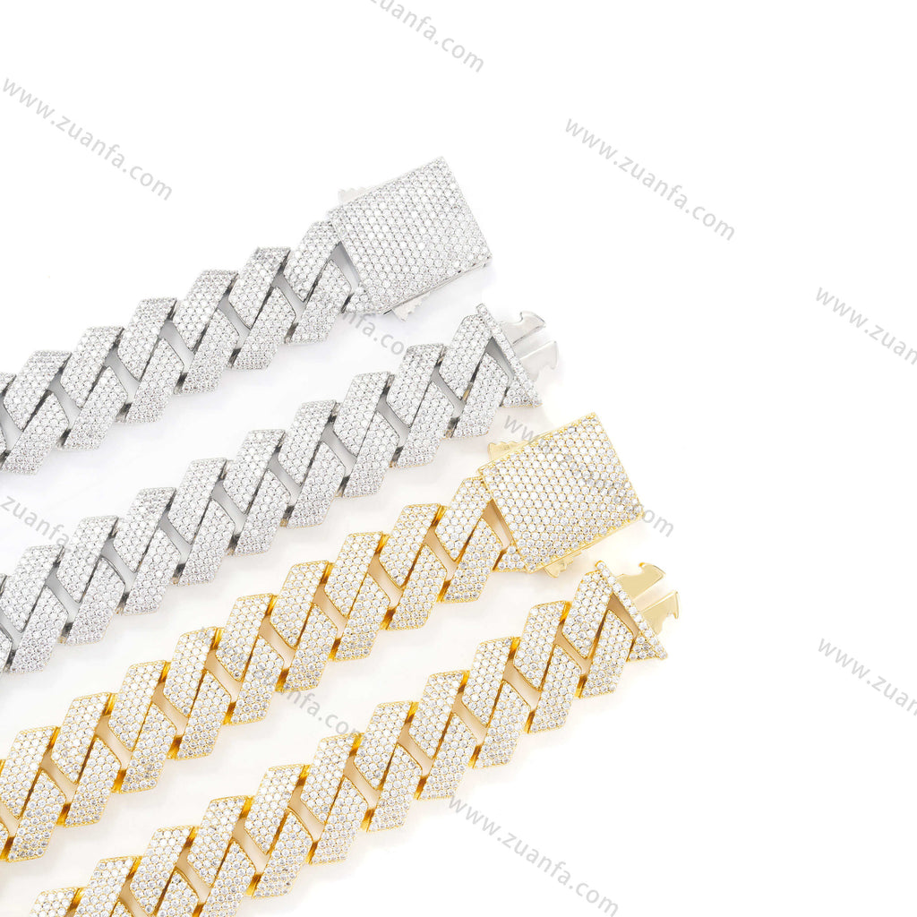 Zuanfa exclusive 20MM Iced Out Diamond Two Rows Cuban Link Chain is now available, made of Brass and plated with a thick layer of 18K Gold.