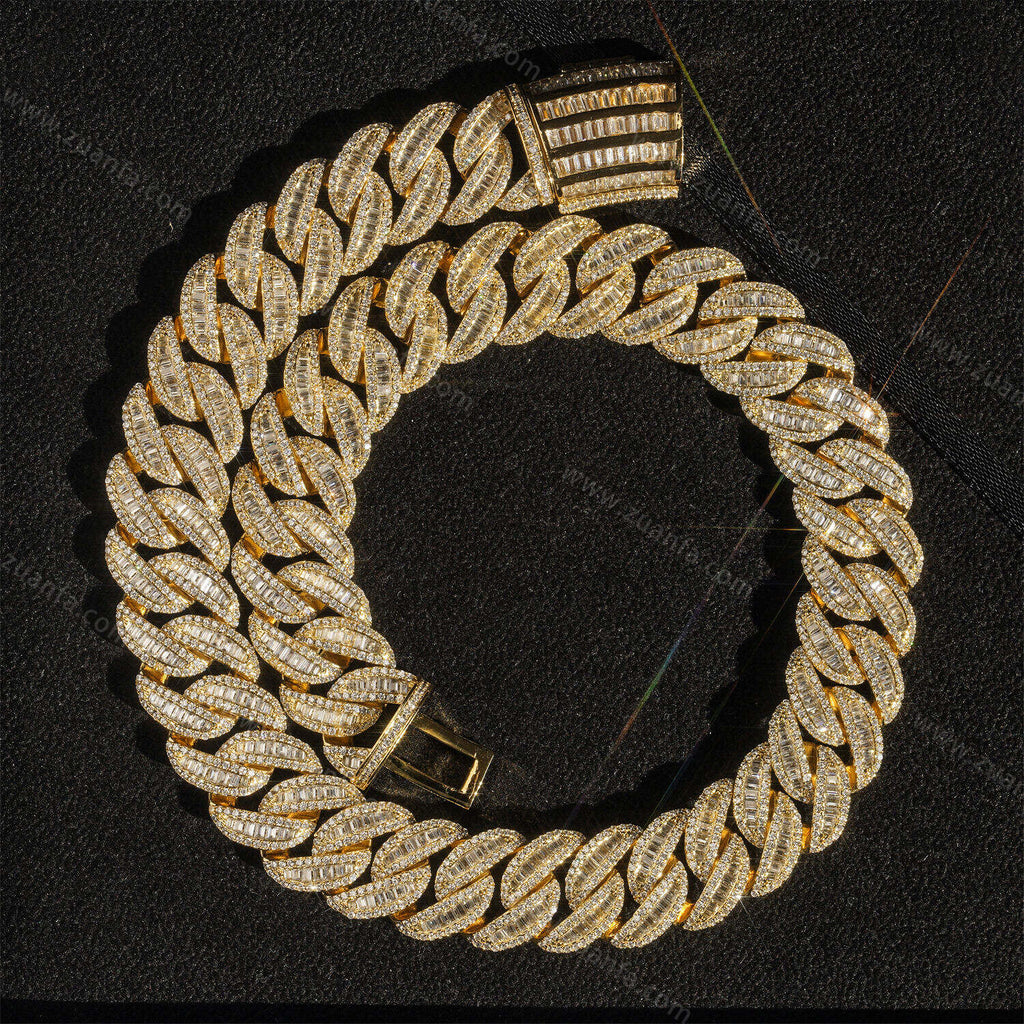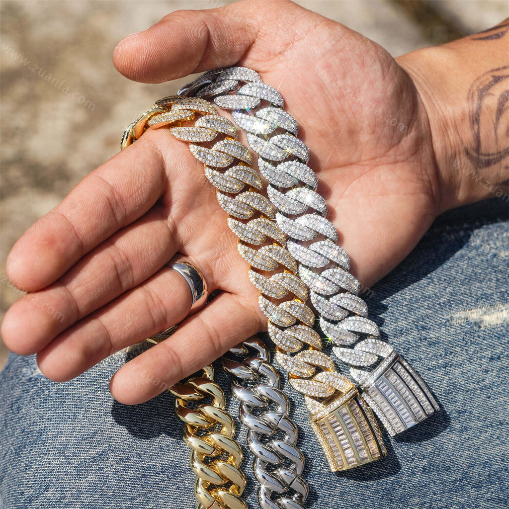 Zuanfa exclusive Round Diamond Iced Out Cuban Link Chain is now available, made of Brass and plated with a thick layer of 18K Gold.