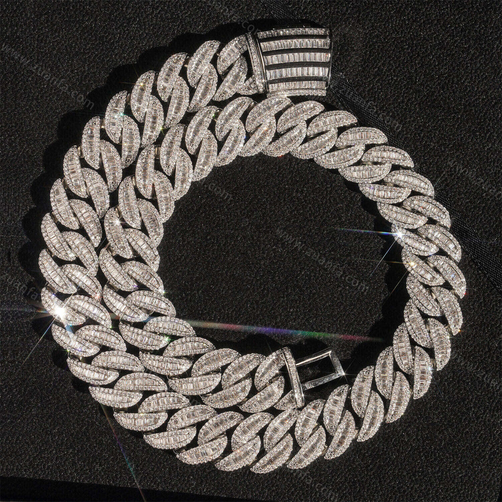 Moon Shape Three Row 15MM Diamond Cuban Link Chain