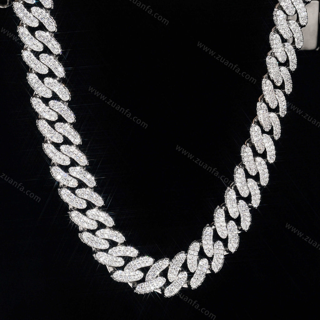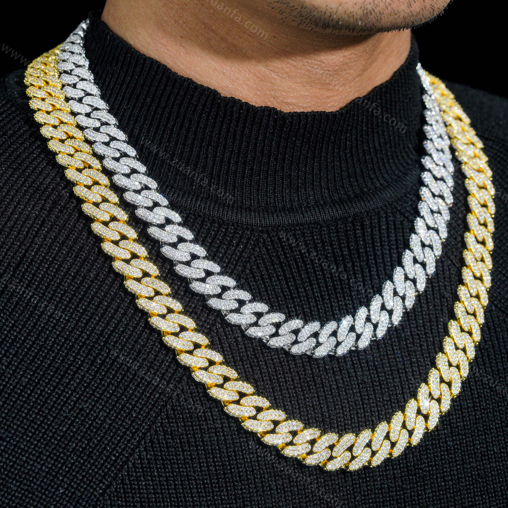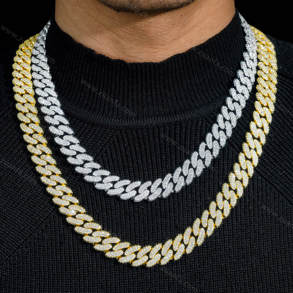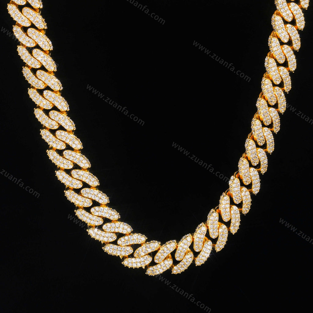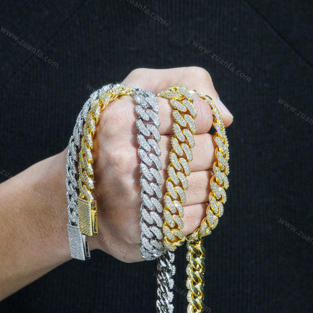 Zuanfa exclusive 13MM Iced Out Diamond Two Row Cuban Link Chain is now available, made of Brass and plated with a thick layer of 18K Gold.