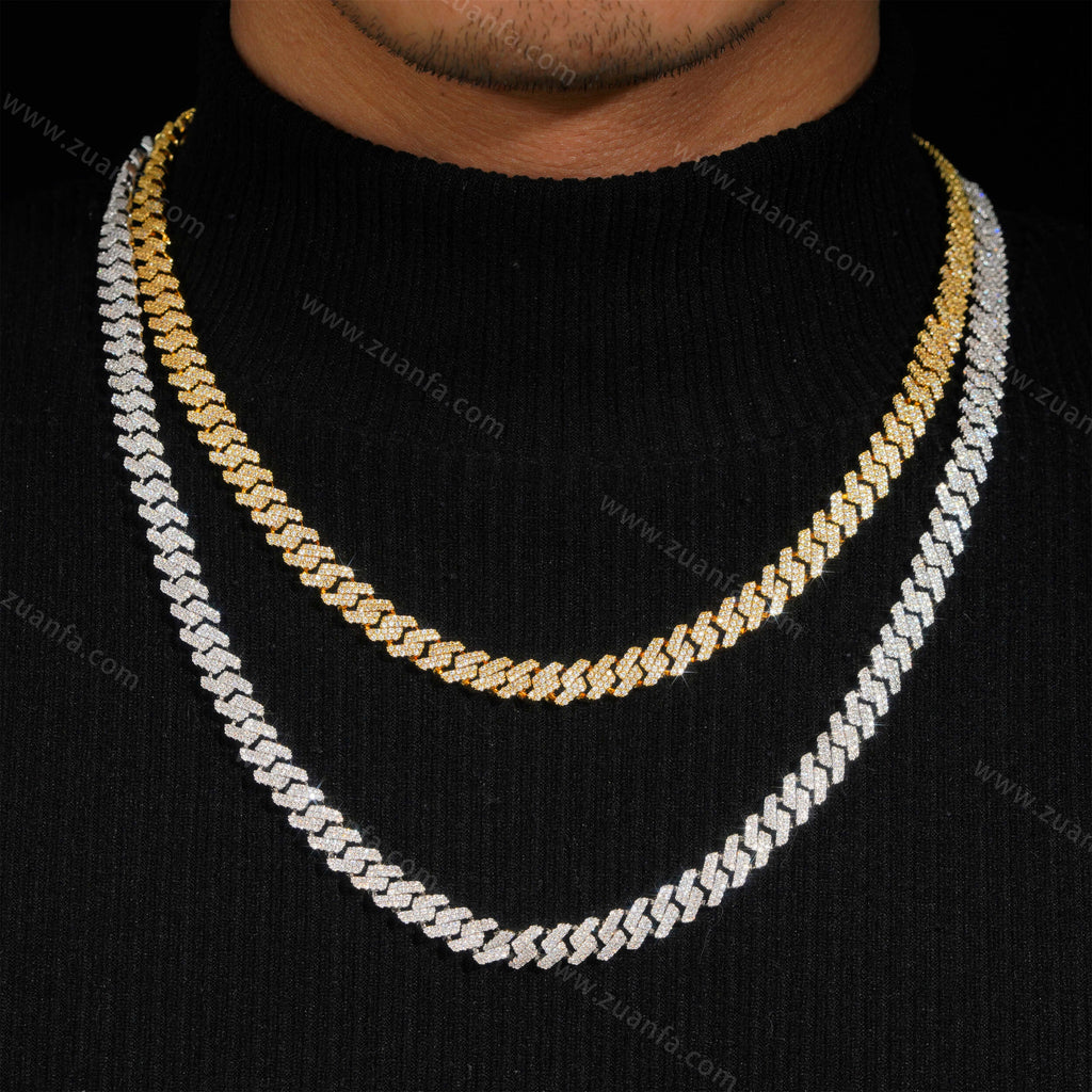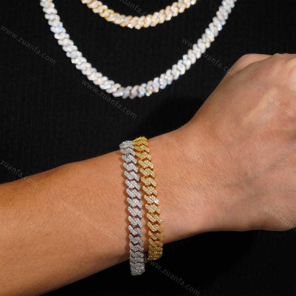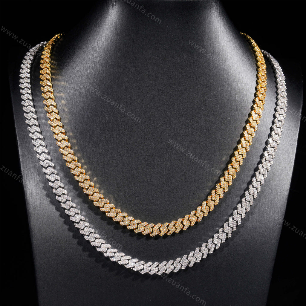 Zuanfa exclusive 8MM Round Diamond Iced Out Cuban Link Chain is now available, made of Brass and plated with a thick layer of 18K Gold.