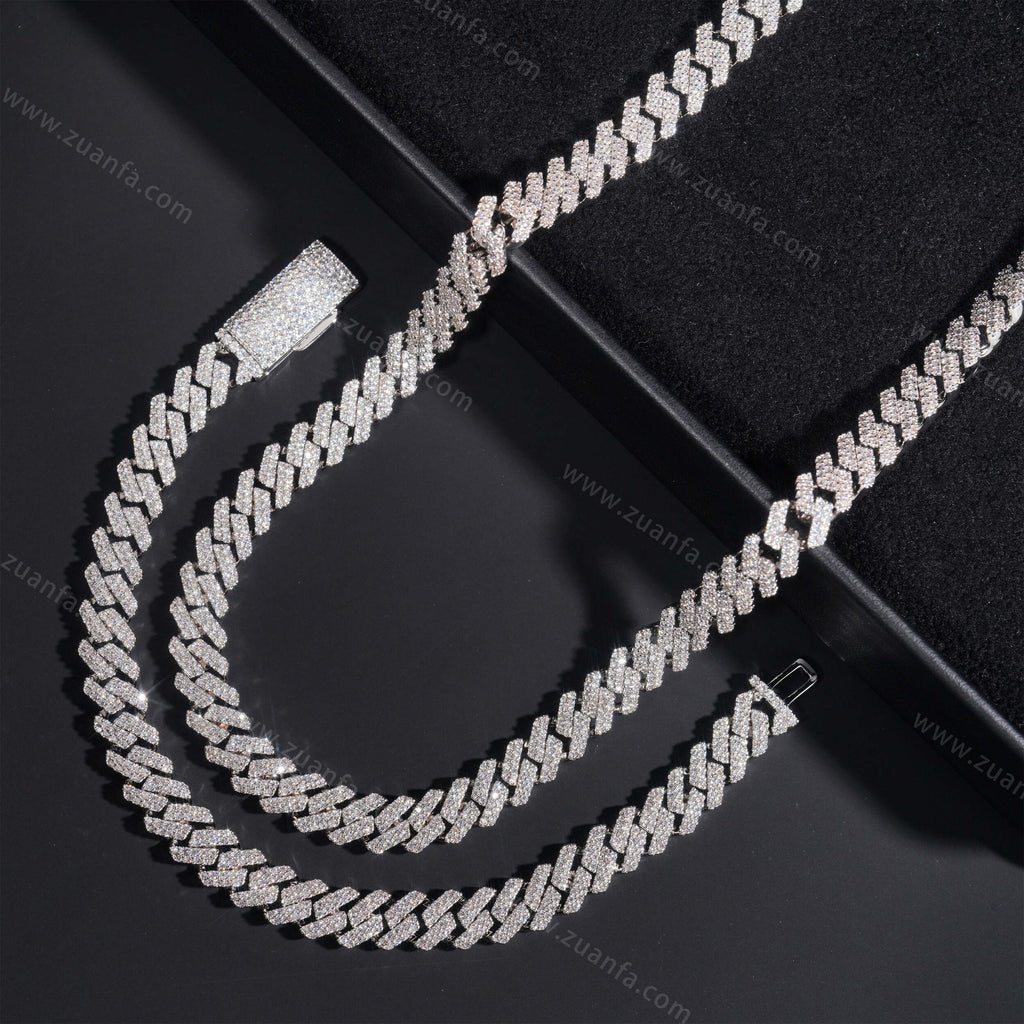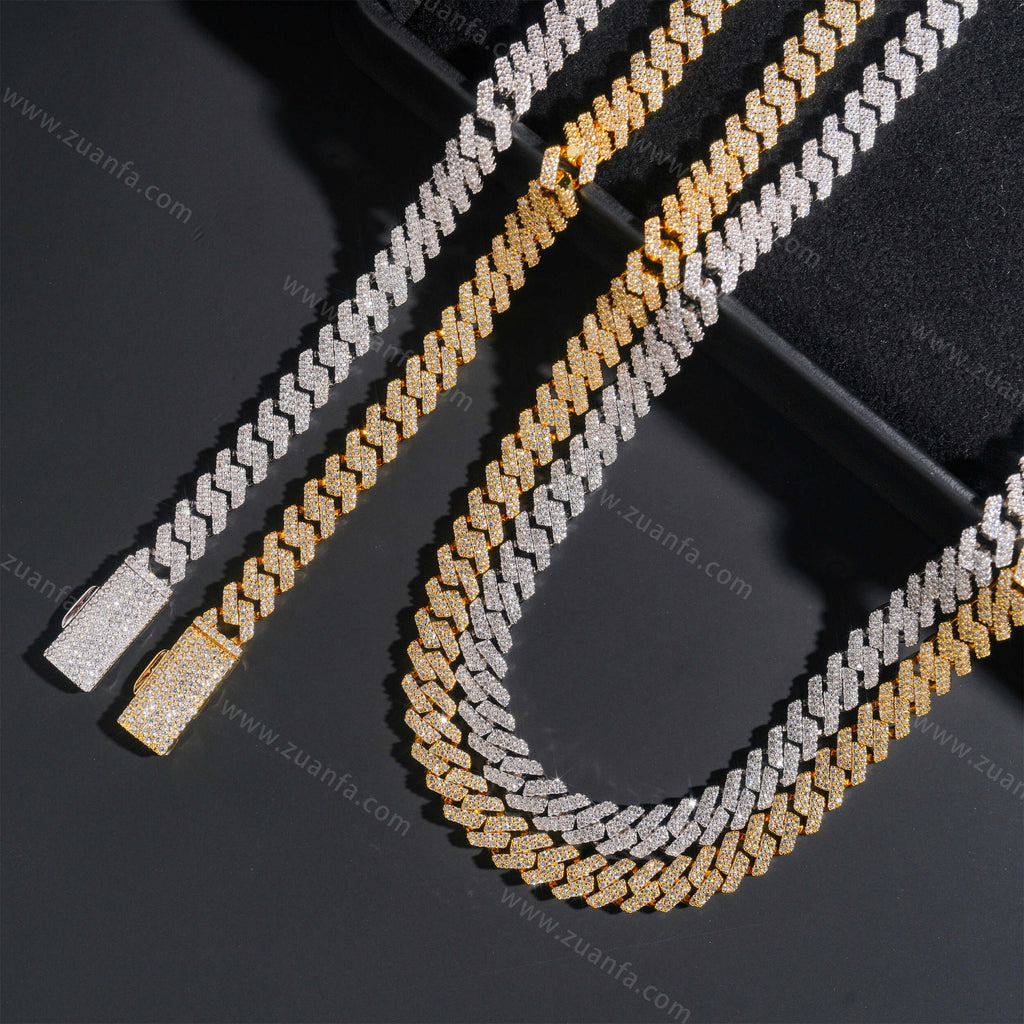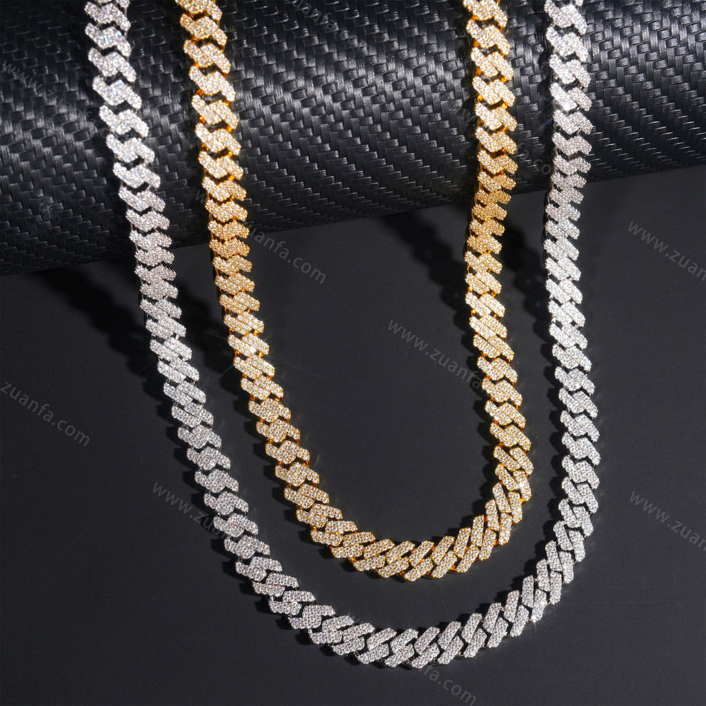 Zuanfa exclusive 8MM Round Diamond Iced Out Cuban Link Chain is now available, made of Brass and plated with a thick layer of 18K Gold.