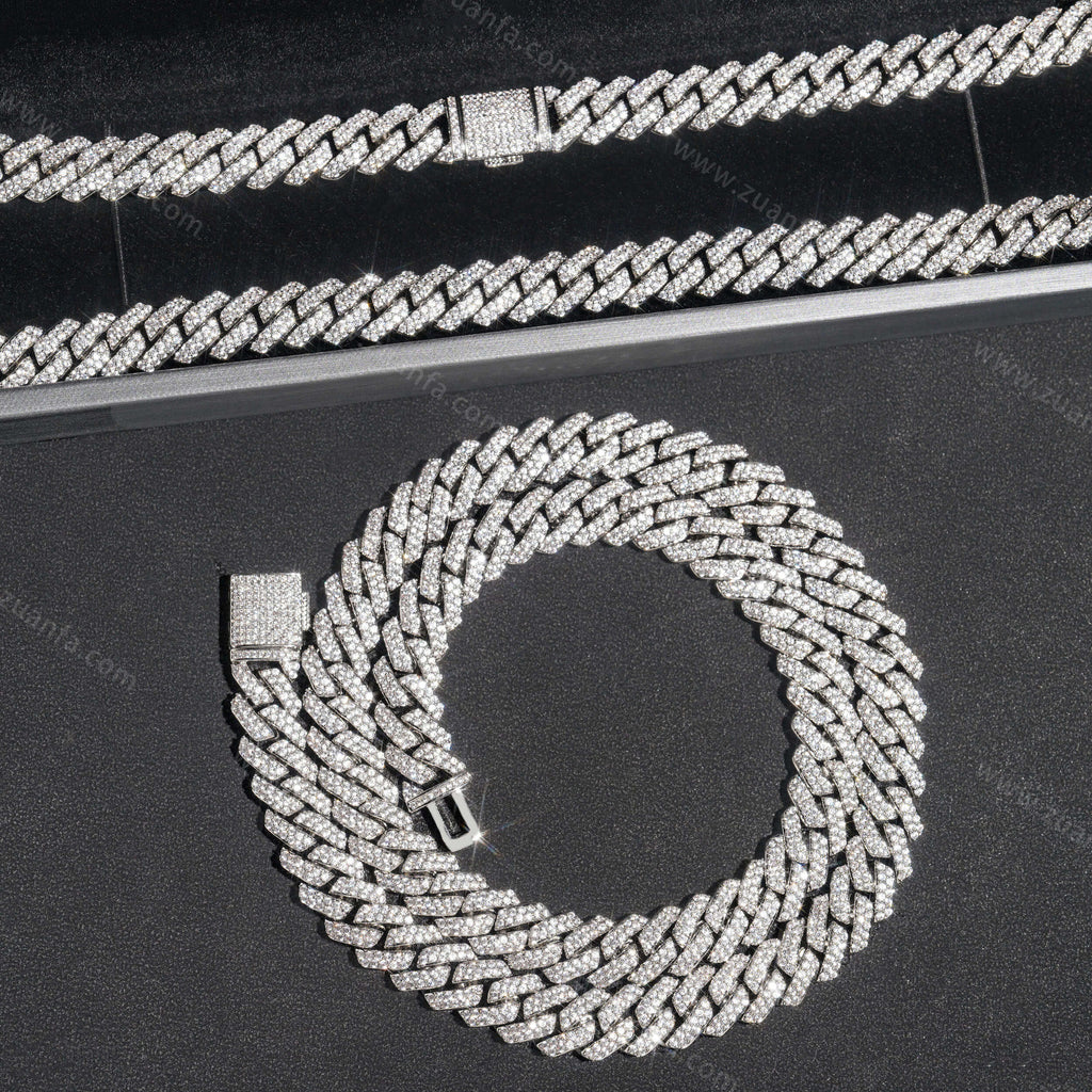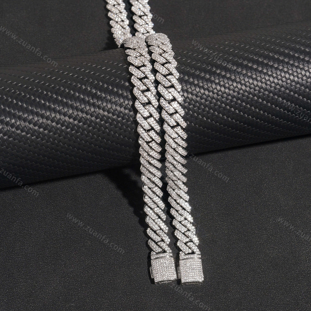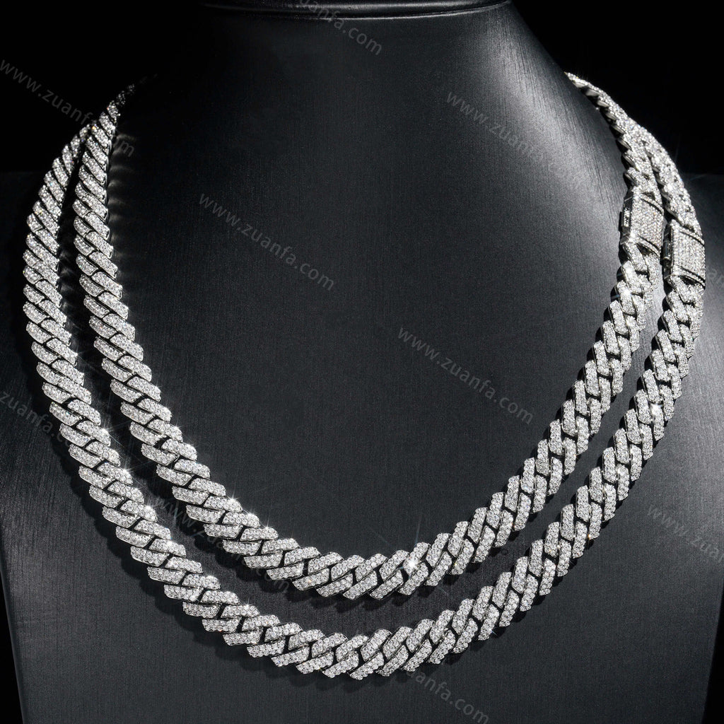 Zuanfa exclusive 10MM Iced Out Diamond Two Rows Cuban Link Chain is now available, made of Brass and plated with a thick layer of 18K Gold.