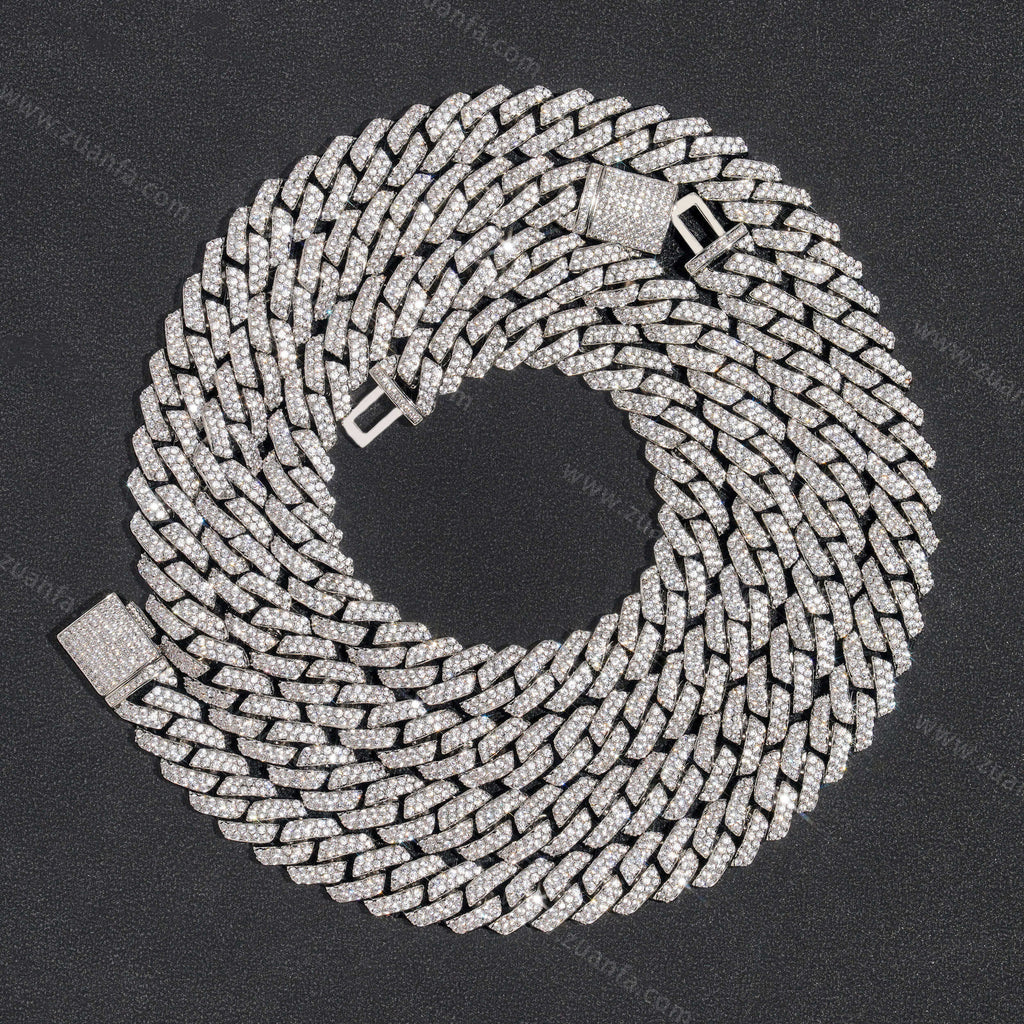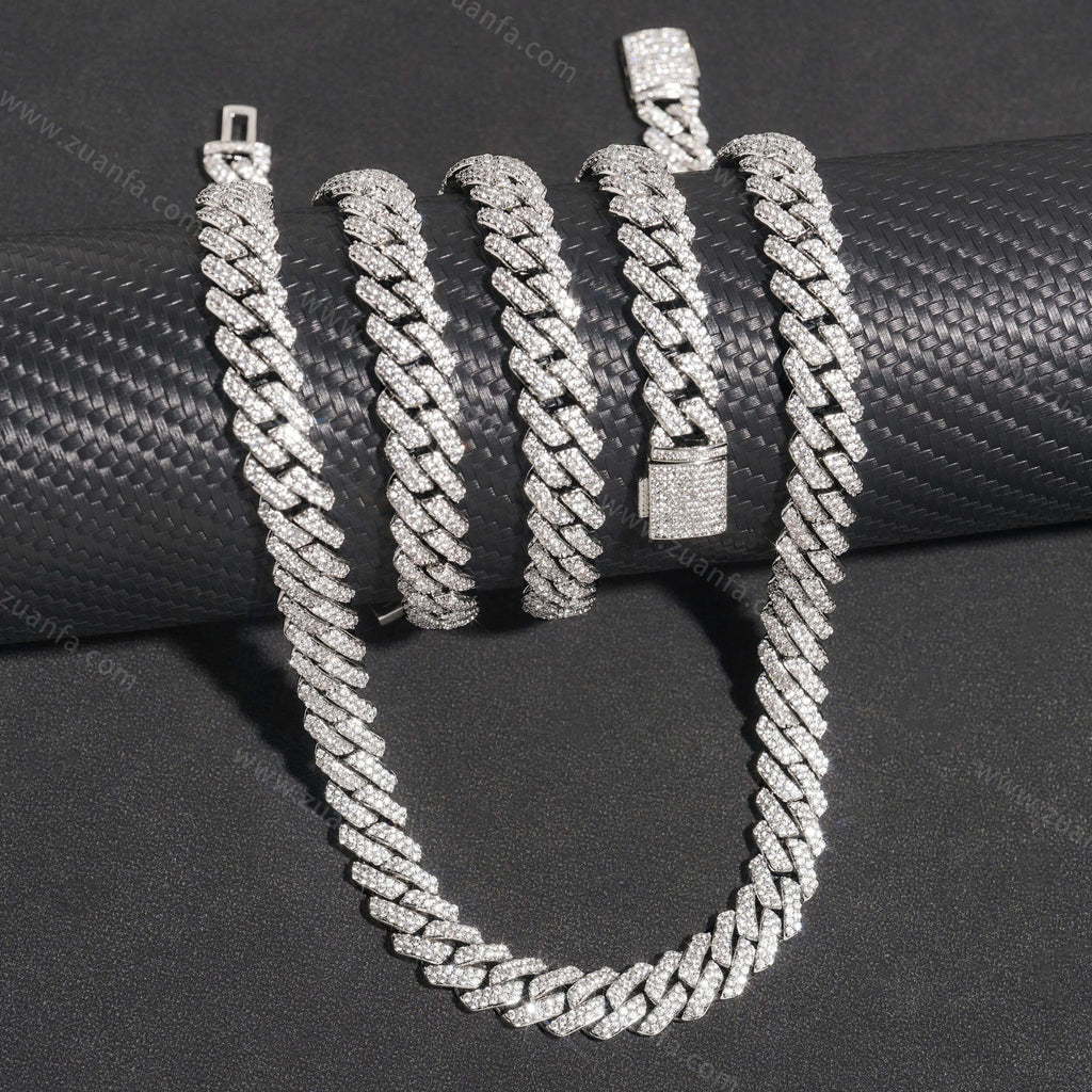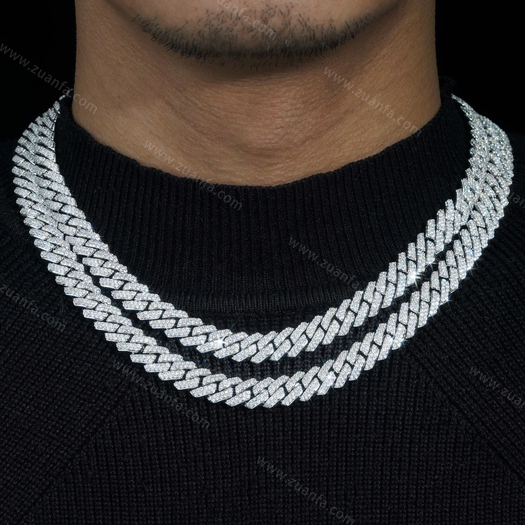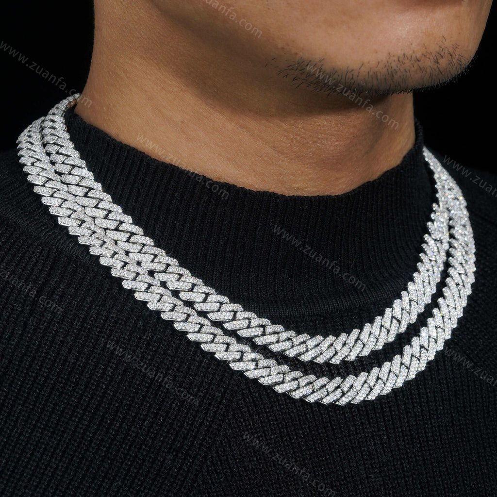 Zuanfa exclusive 10MM Iced Out Diamond Two Rows Cuban Link Chain is now available, made of Brass and plated with a thick layer of 18K Gold.