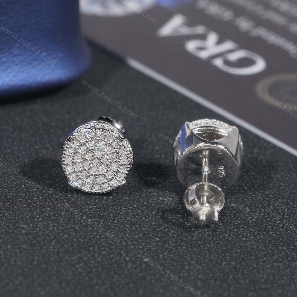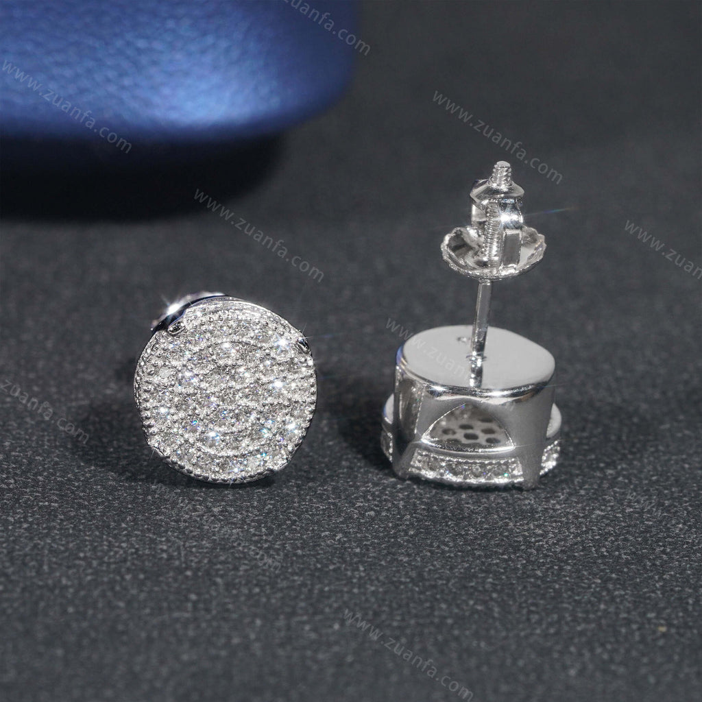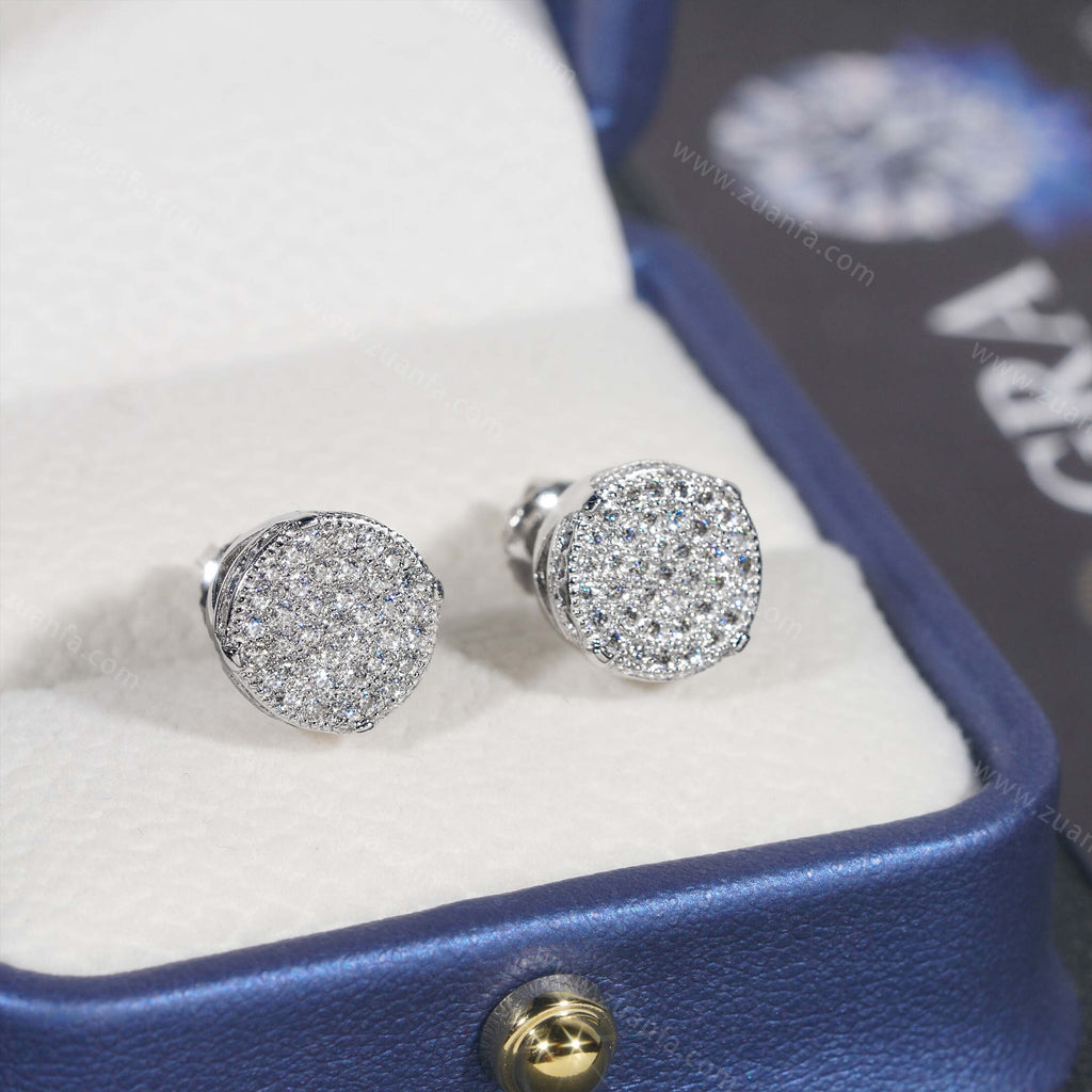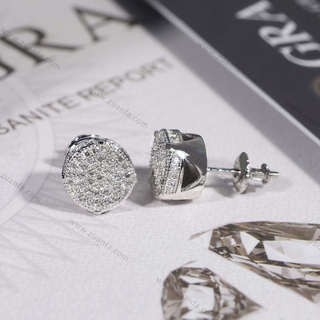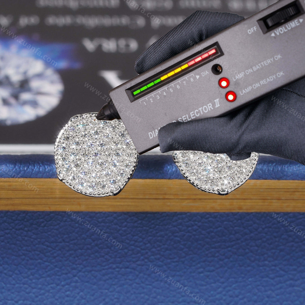 This moissanite earring is iced out with Round cut, VVS moissanite flawless diamonds. All of the diamonds on this moissanite earring are guaranteed to pass the diamond tester.