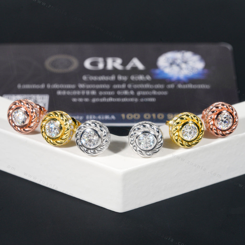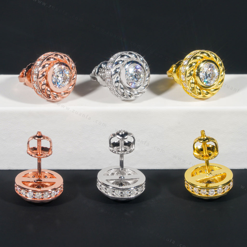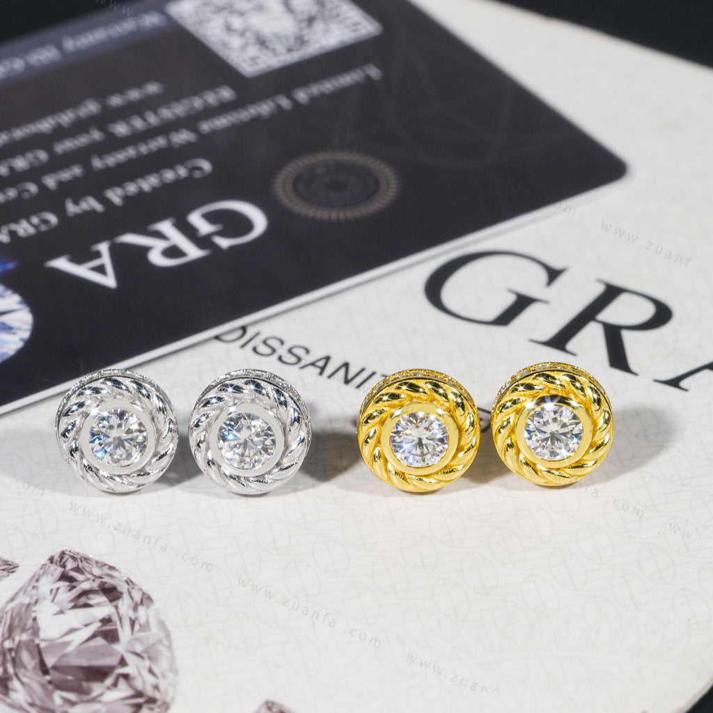 This Zuanfa exclusive Moissanite Earring is made from 925 sterling silver and PVD plated with a thick layer of 18K Gold.
