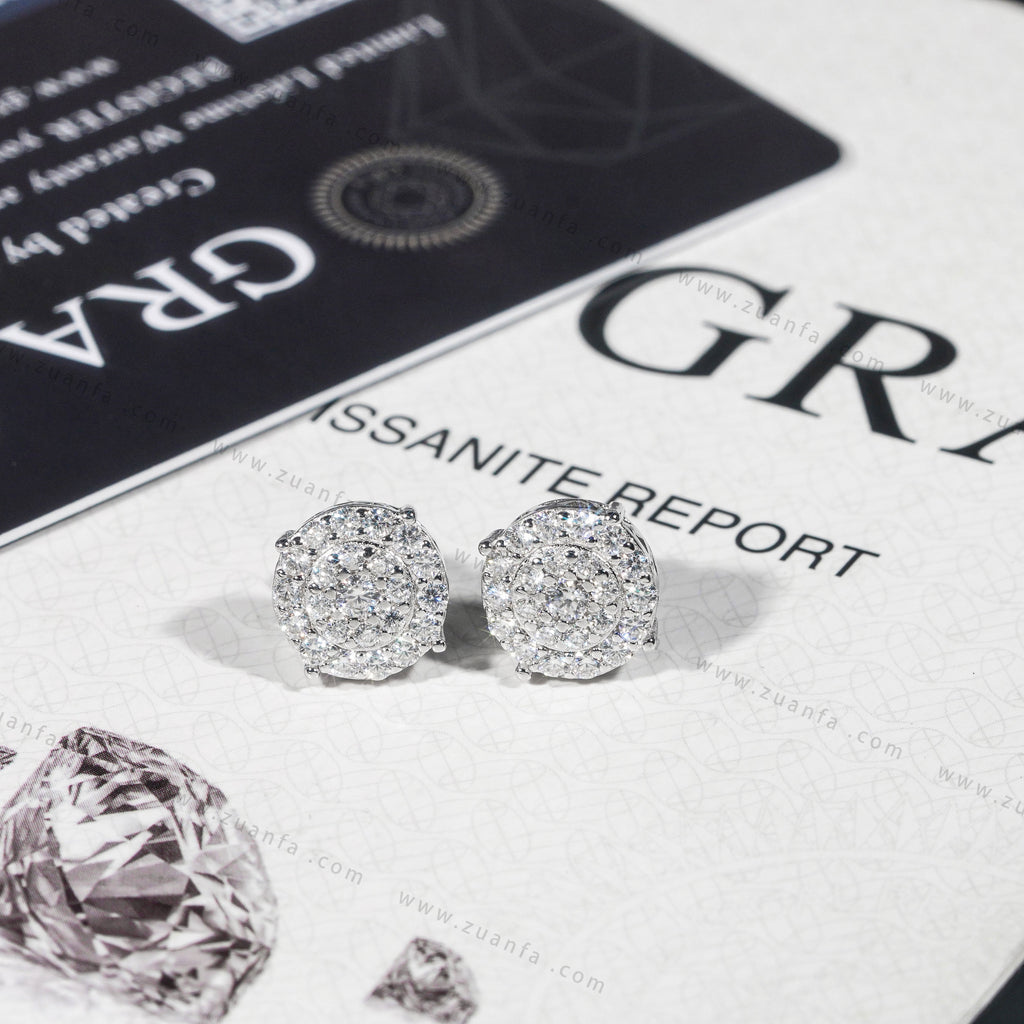 This moissanite earring is iced out with Round cut, VVS moissanite flawless diamonds. All of the diamonds on this moissanite earring are guaranteed to pass the diamond tester.