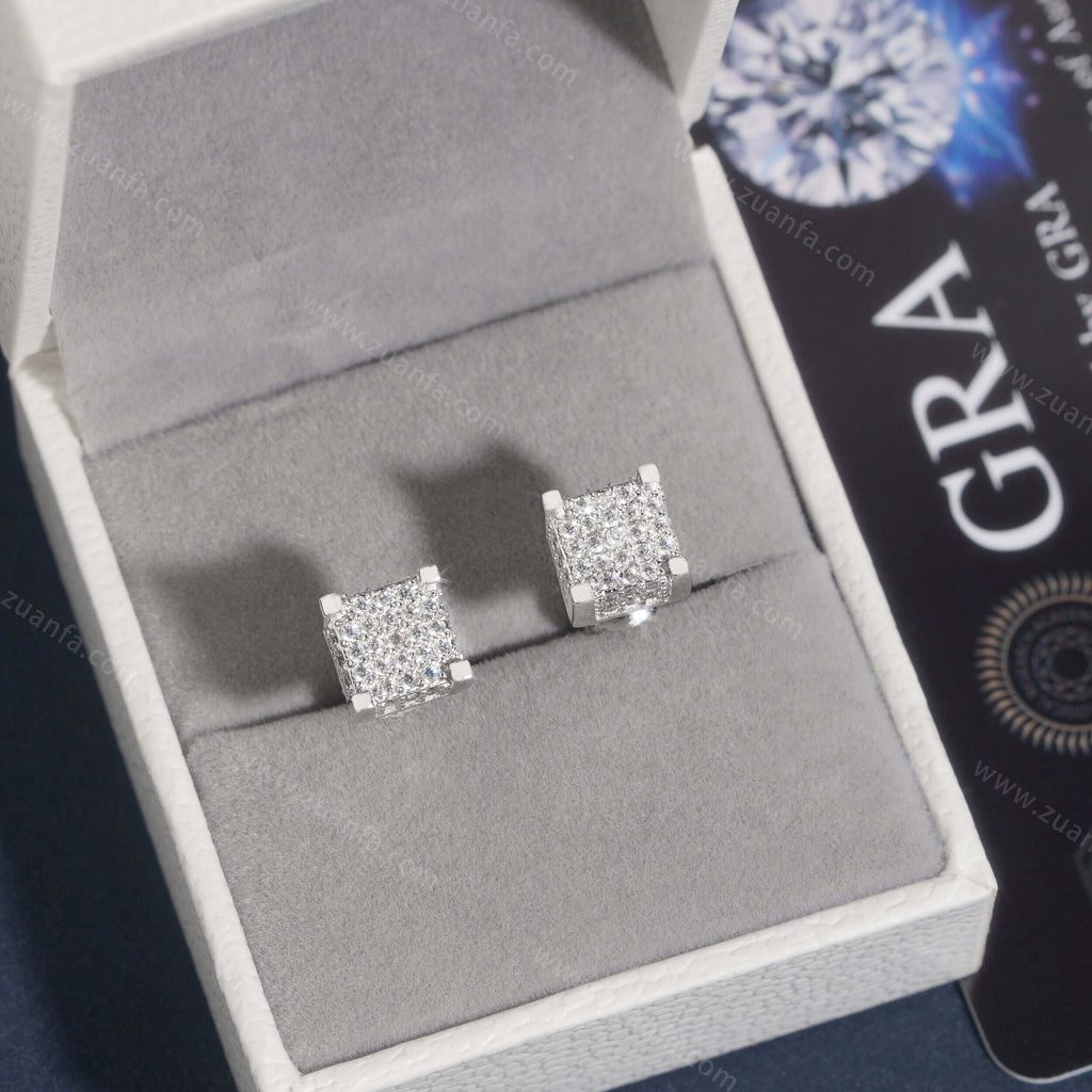 This moissanite earring is iced out with Round cut, VVS moissanite flawless diamonds. All of the diamonds on this moissanite earring are guaranteed to pass the diamond tester.