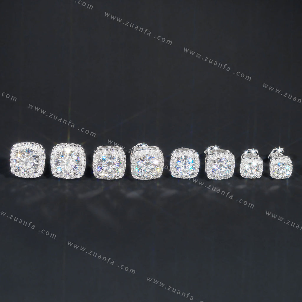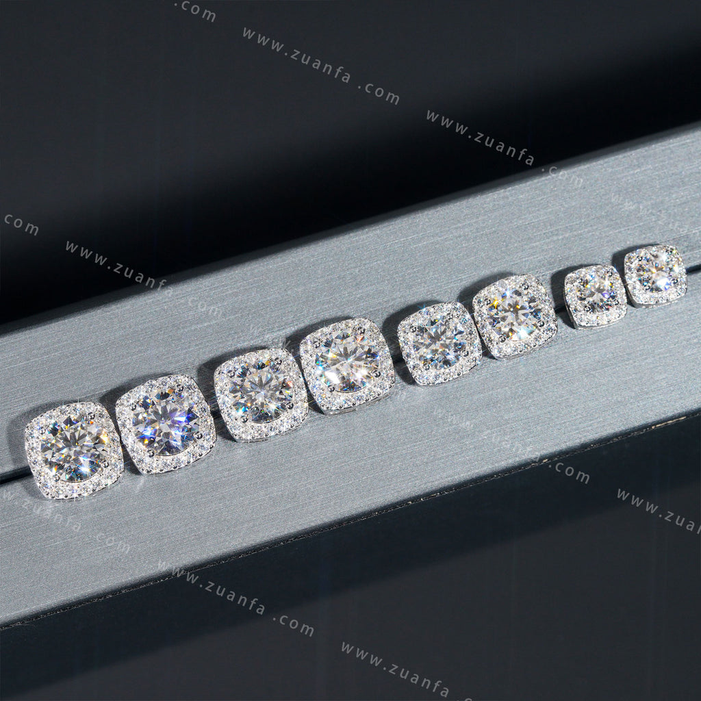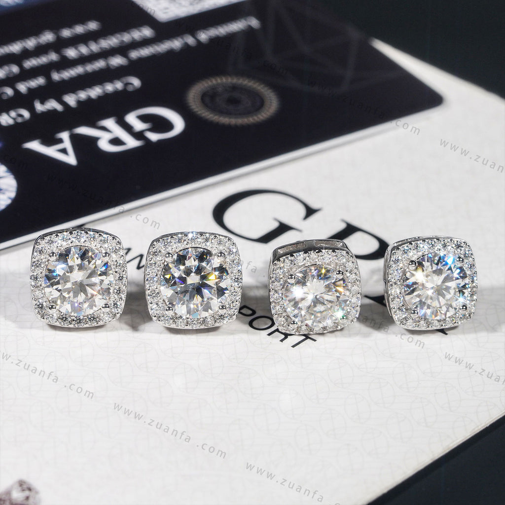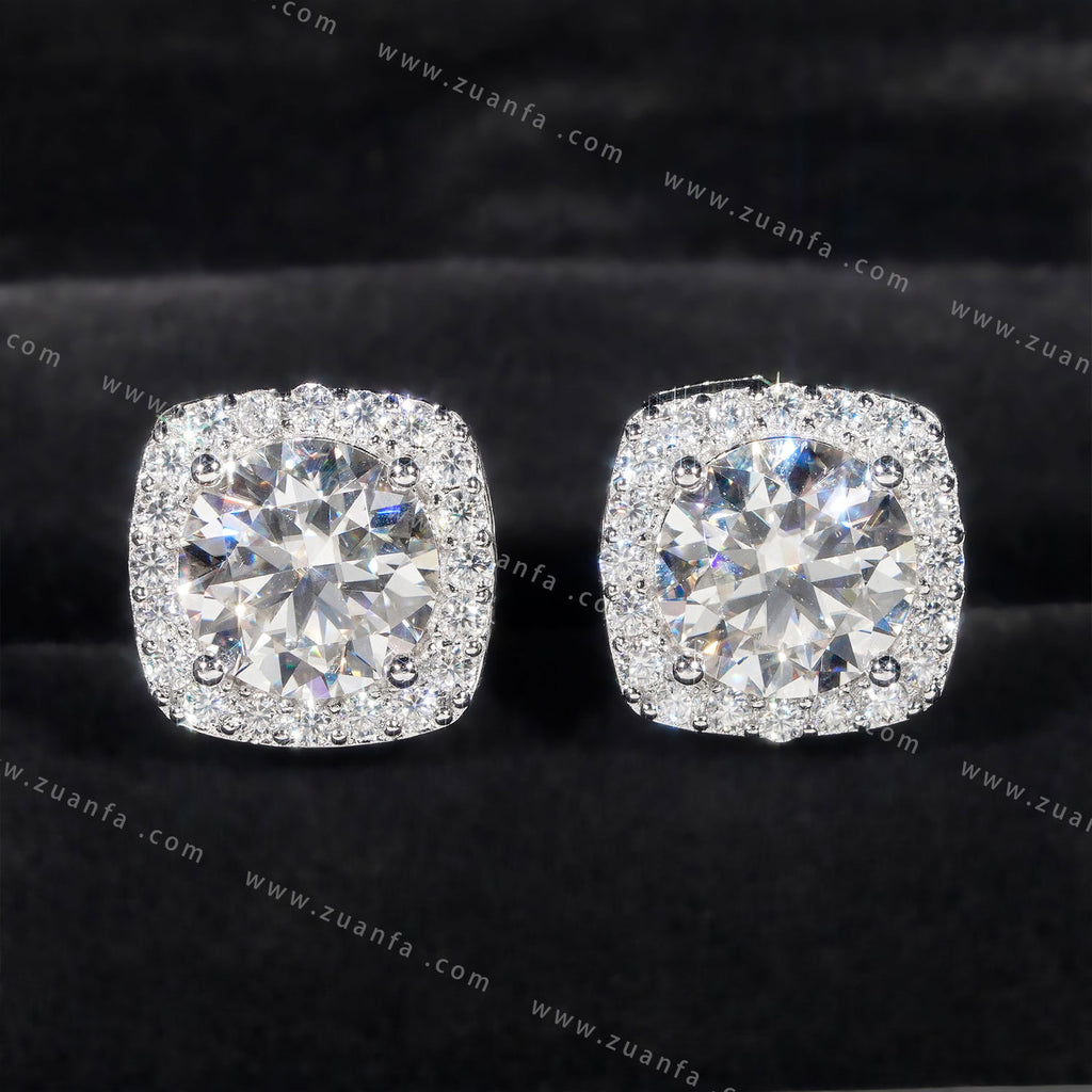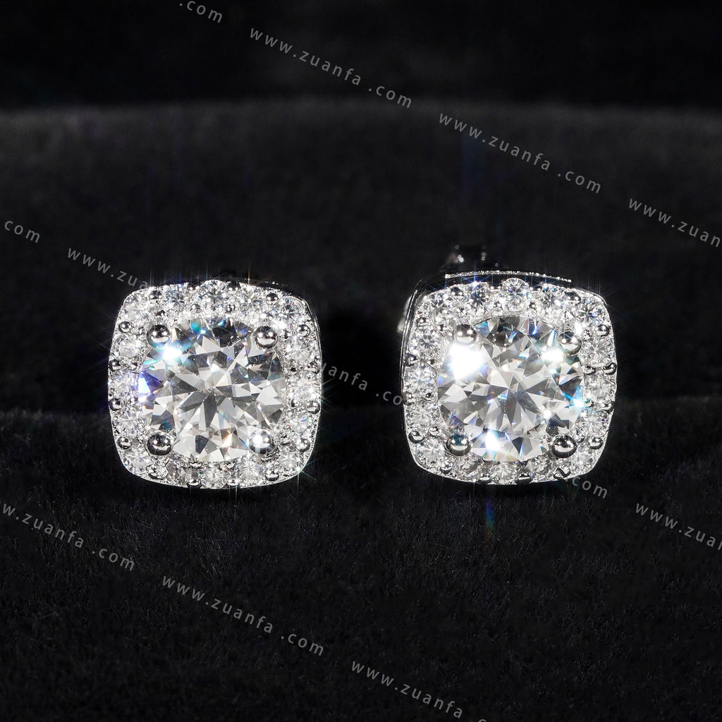 Square Shape Halo Design D Color Moissanite Earring