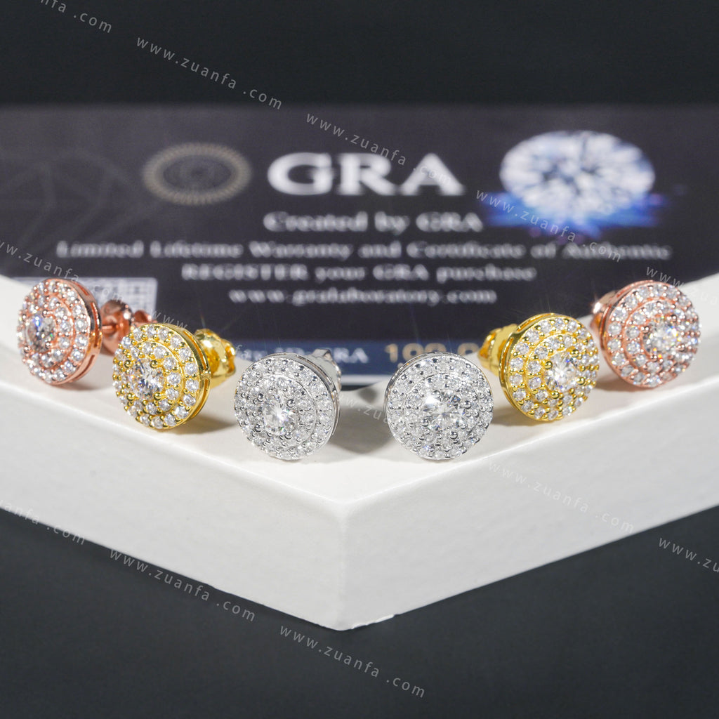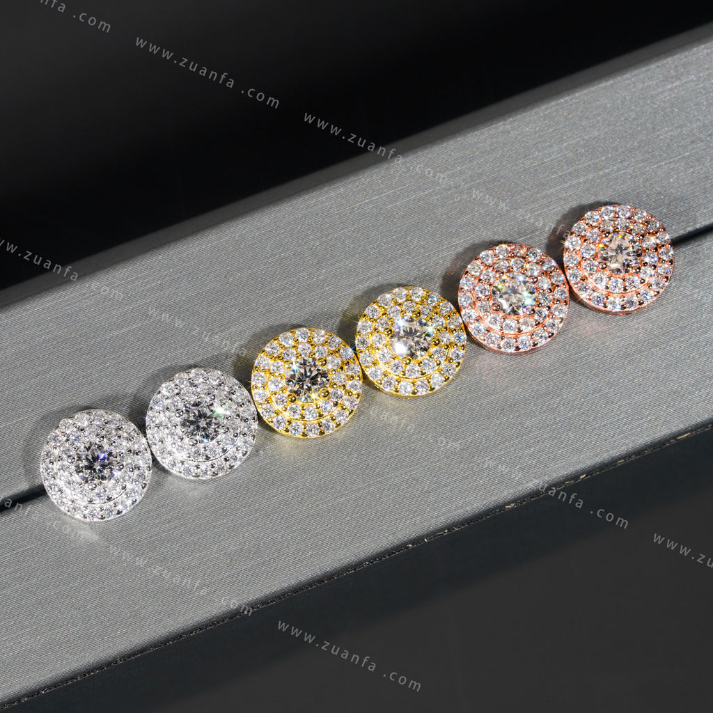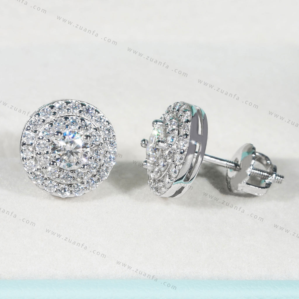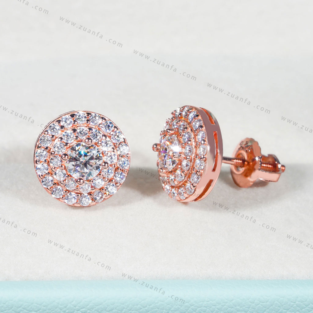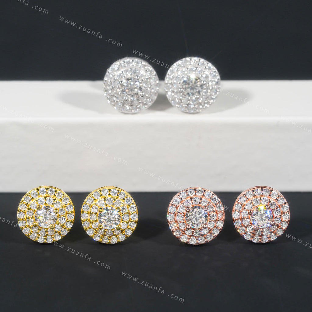 Three Rows Round Shape Moissanite Earring 18k Gold