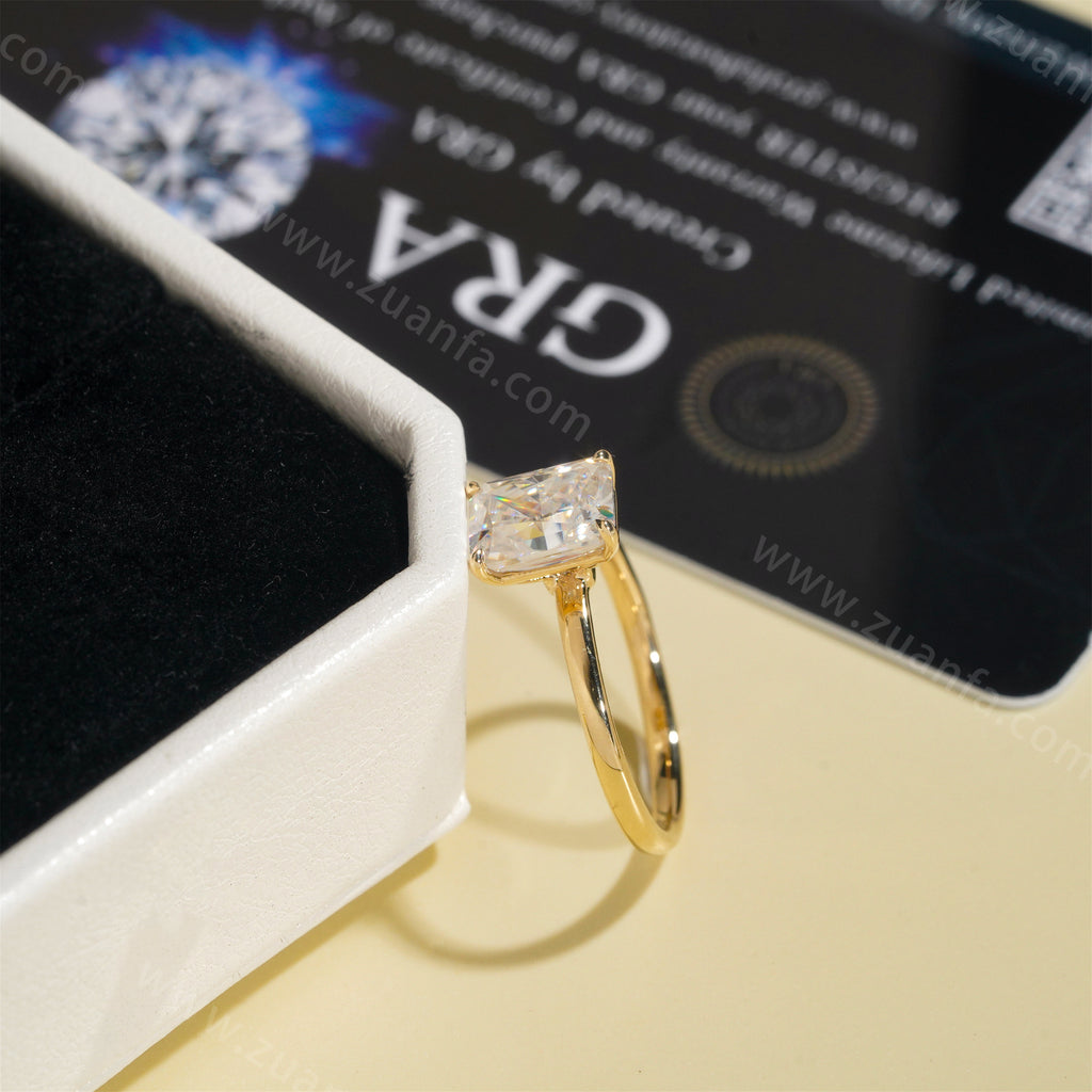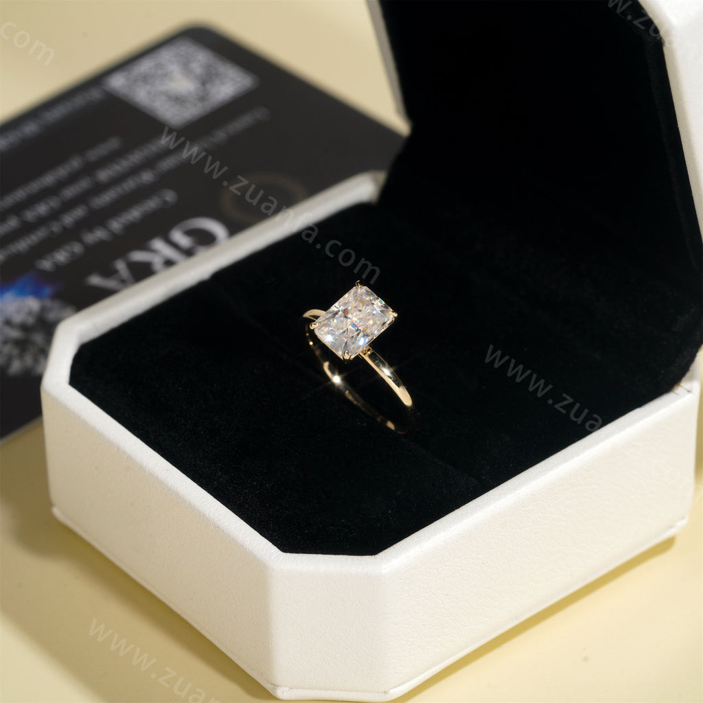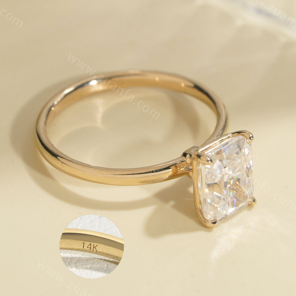 Radiant Cut 2ct Moissanite Engagement Ring 14k Solid Gold