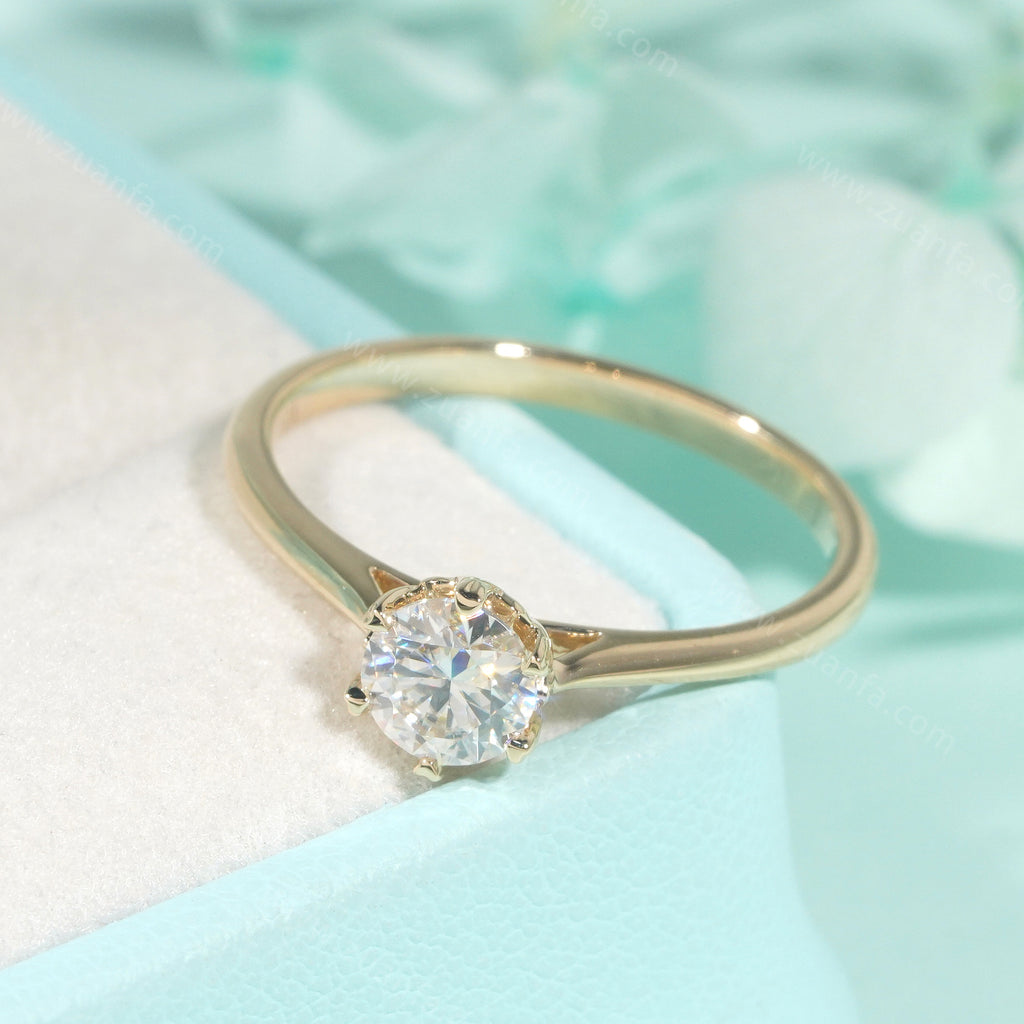 Round 0.5ct Moissanite Engagement Ring 14k Solid Gold