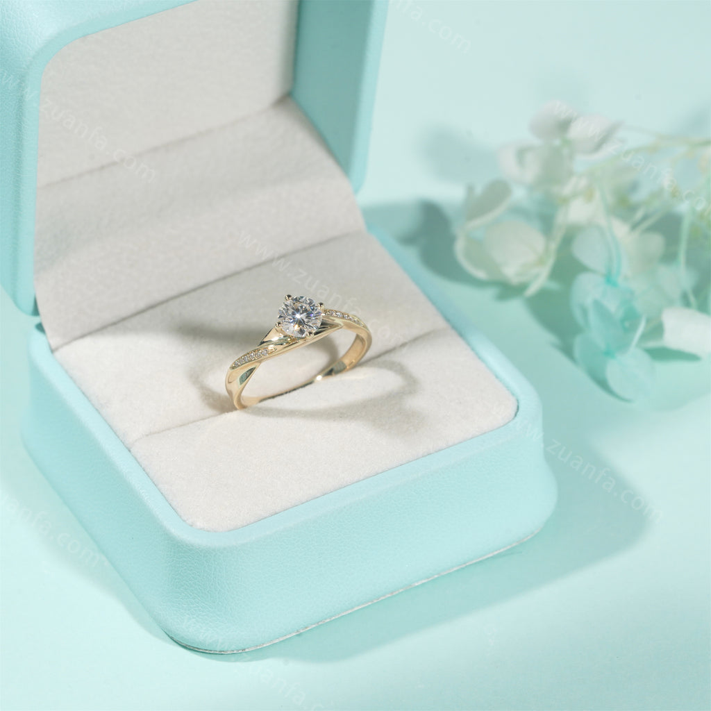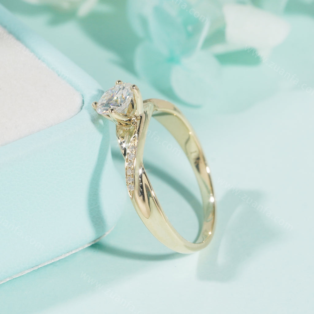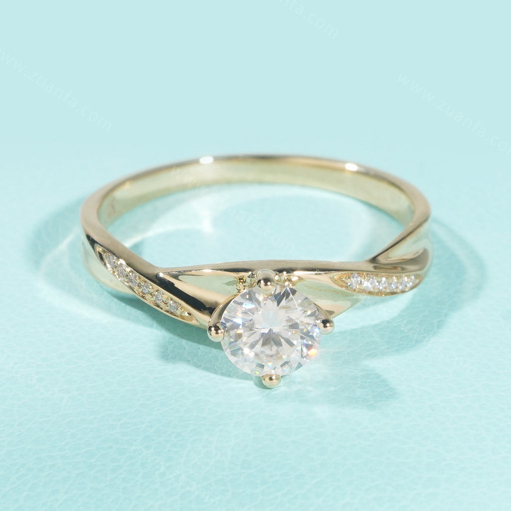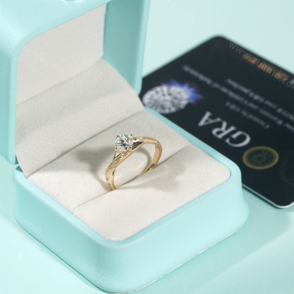 Round 0.5ct Moissanite Engagement Ring 14k Solid Gold