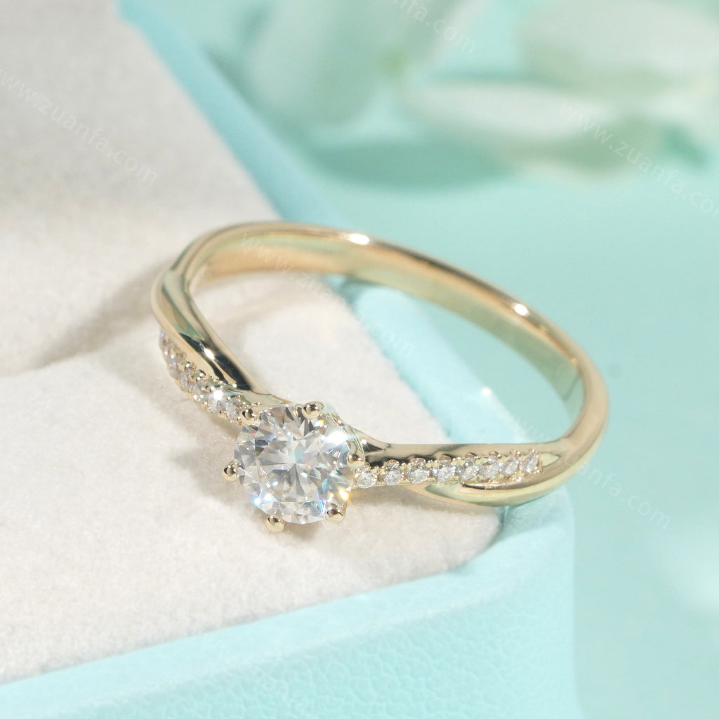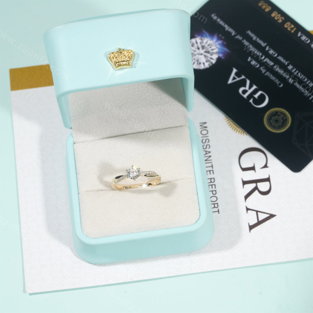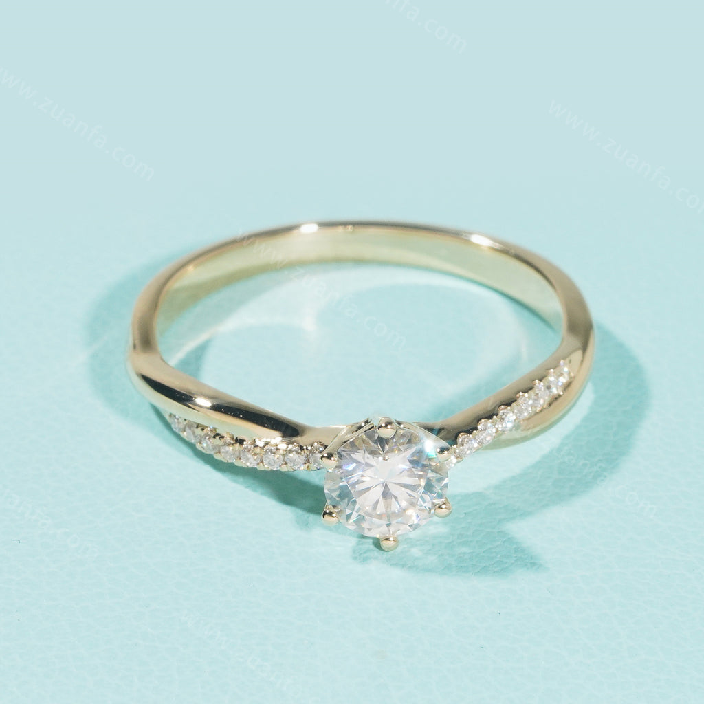 This Zuanfa exclusive Moissanite Engagement Ring is made from 14K Solid Gold