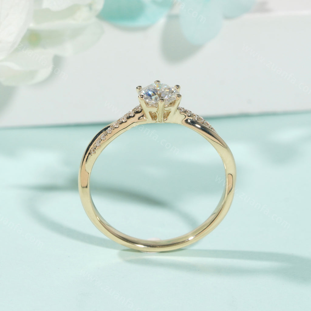 Round 0.6ct Moissanite Engagement Ring 14k Solid Gold