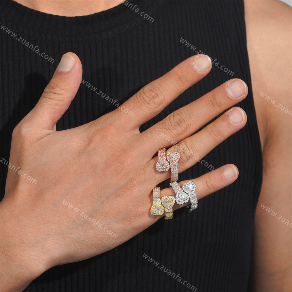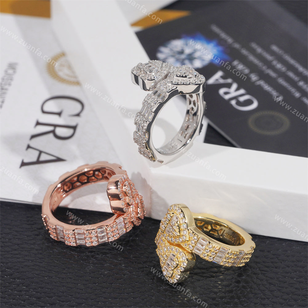 This moissanite ring is iced out with Round cut, colorless (D-Color), VVS moissanite flawless diamonds. All of the diamonds on this moissanite ring are guaranteed to pass the diamond tester.