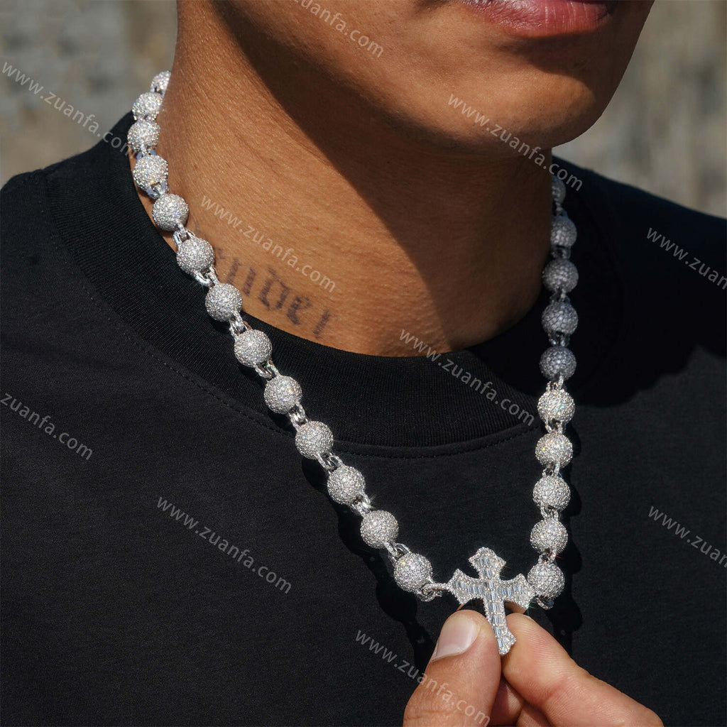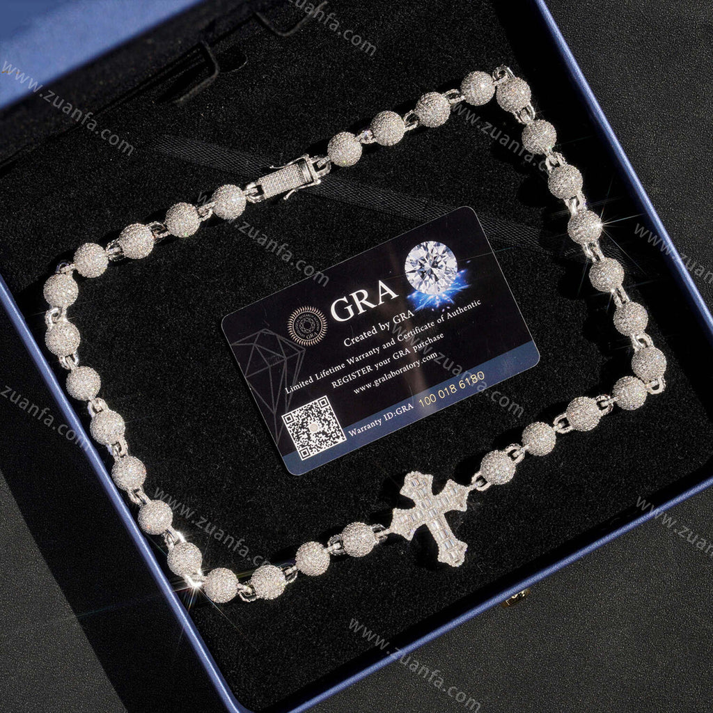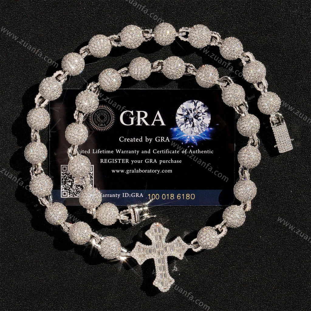 This Zuanfa exclusive 10MM Moissanite Bead Chain is made from 925 sterling silver and plated with a thick layer of 18K Gold.