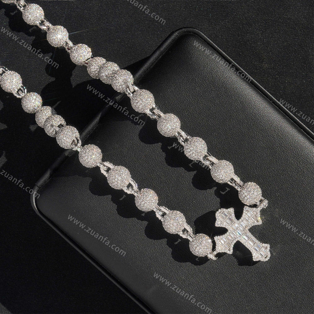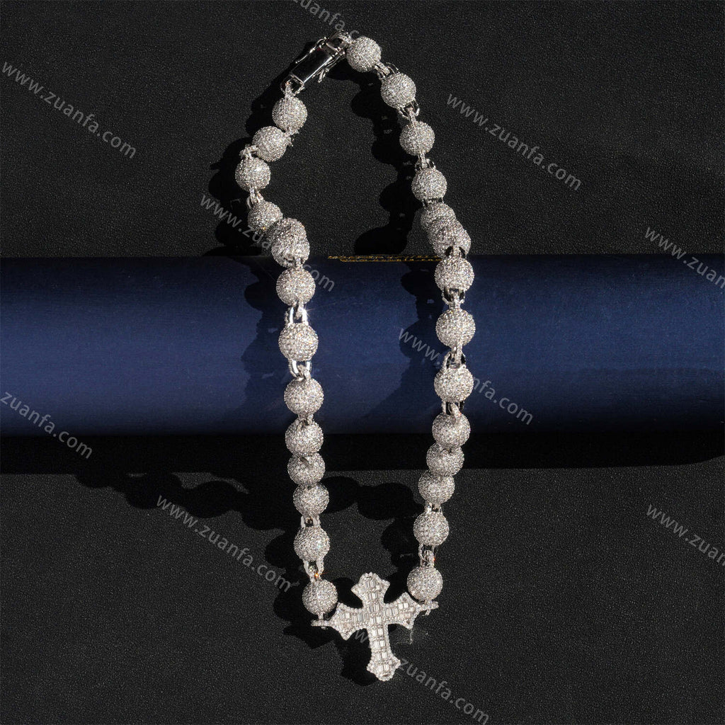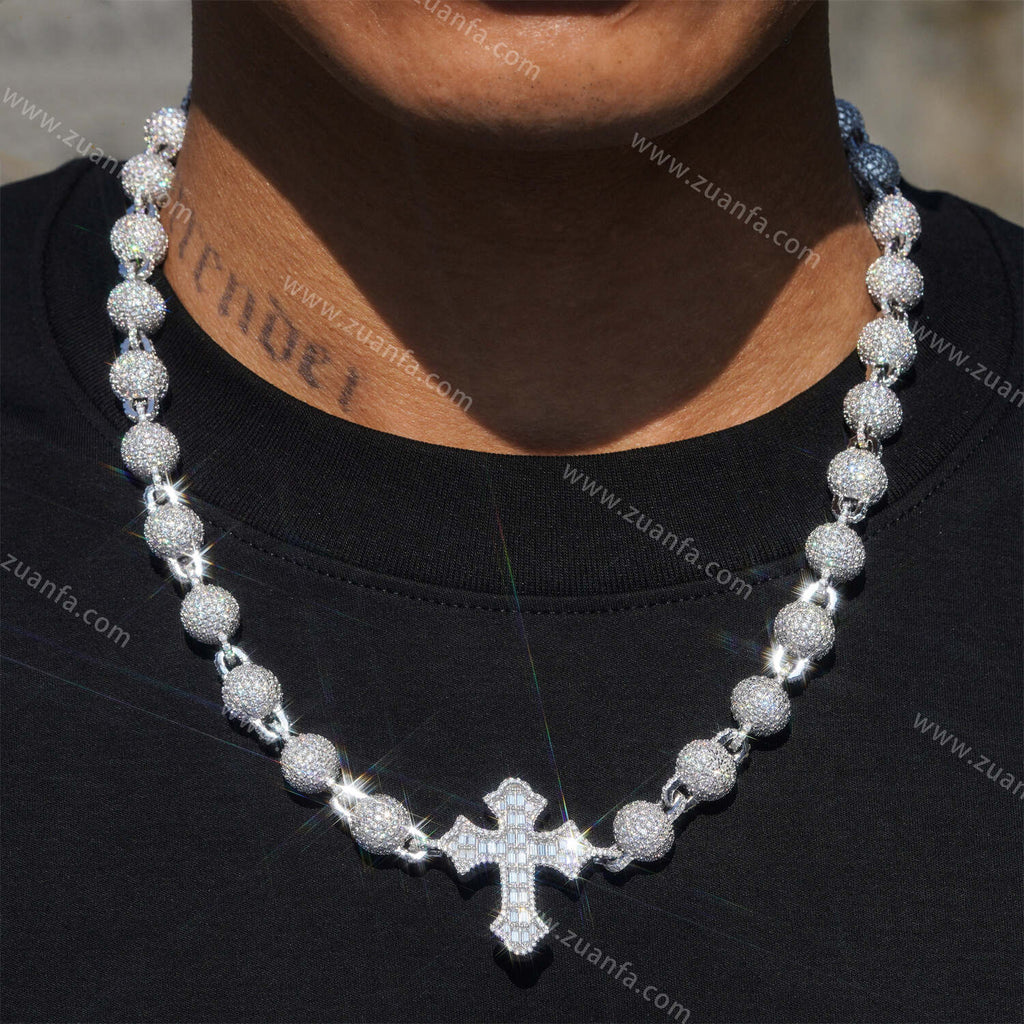 This Zuanfa exclusive 10MM Moissanite Bead Chain is made from 925 sterling silver and plated with a thick layer of 18K Gold.