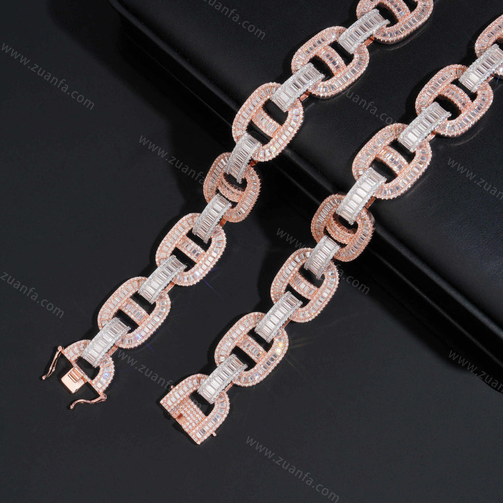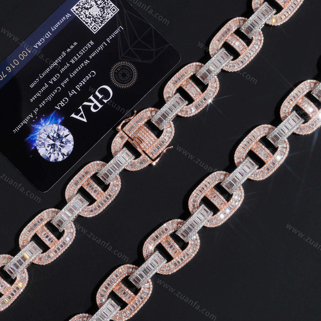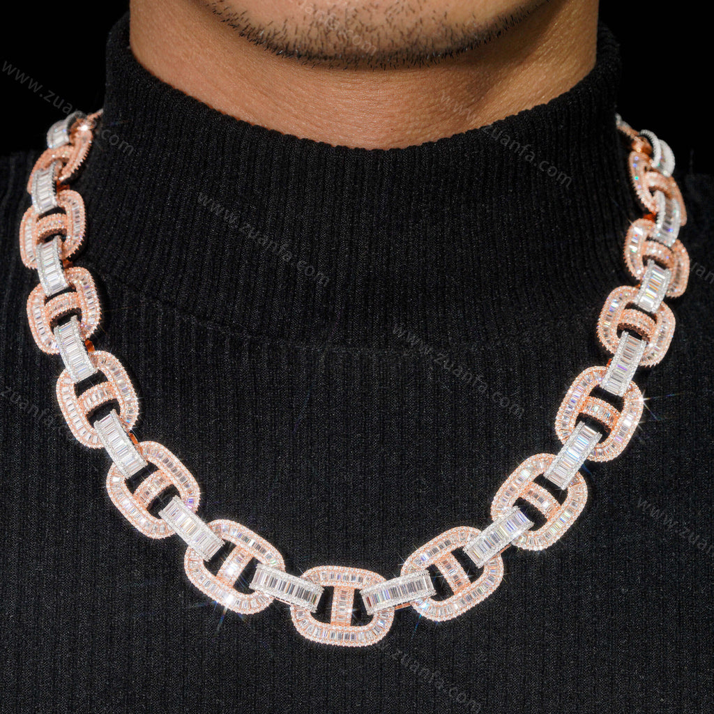 High End Two Tone 18MM Baguette Moissanite Cuban Link Chain
