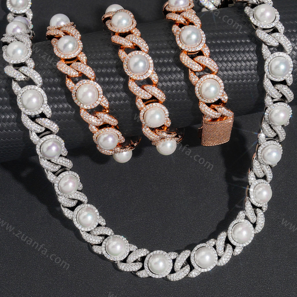 New Design 10MM Pearl Moissanite Cuban Link Chain