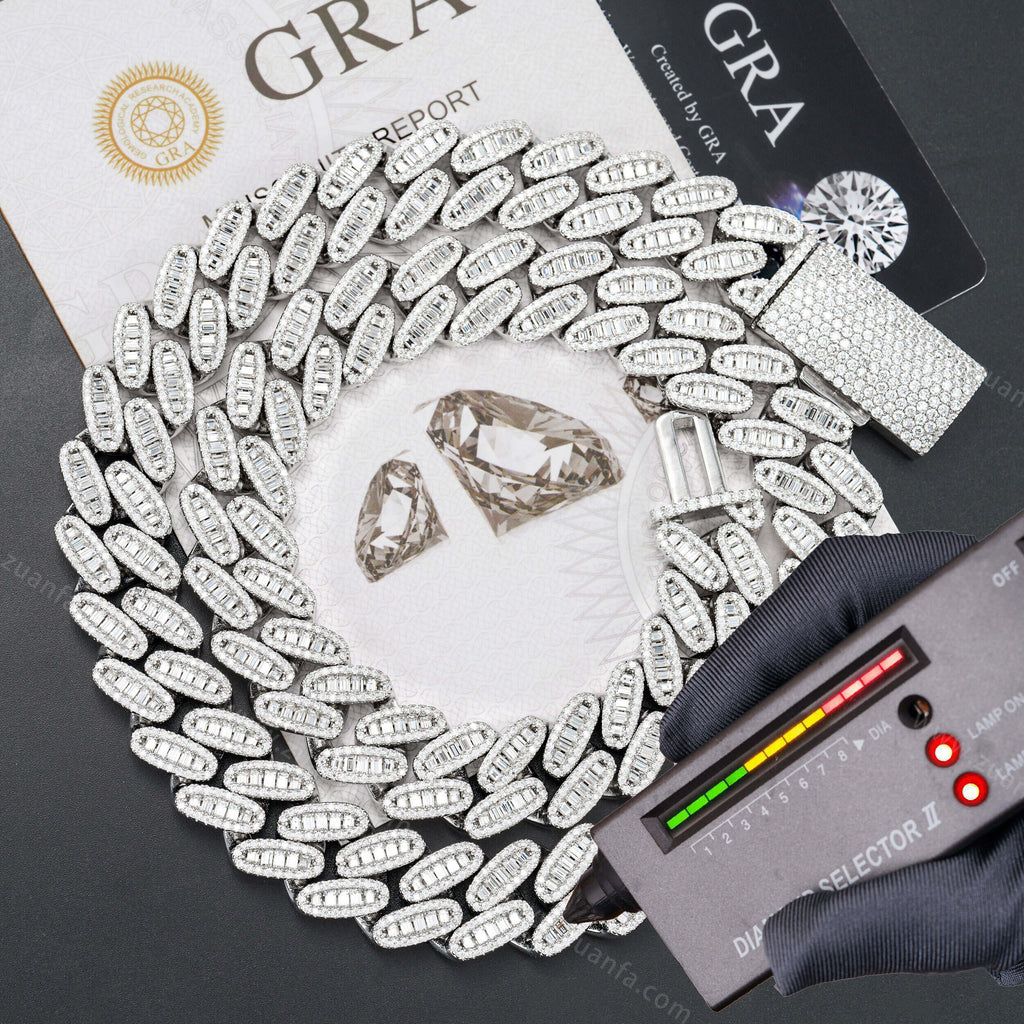 Round Cut Three Rows 16mm Moissanite Cuban Link Chain