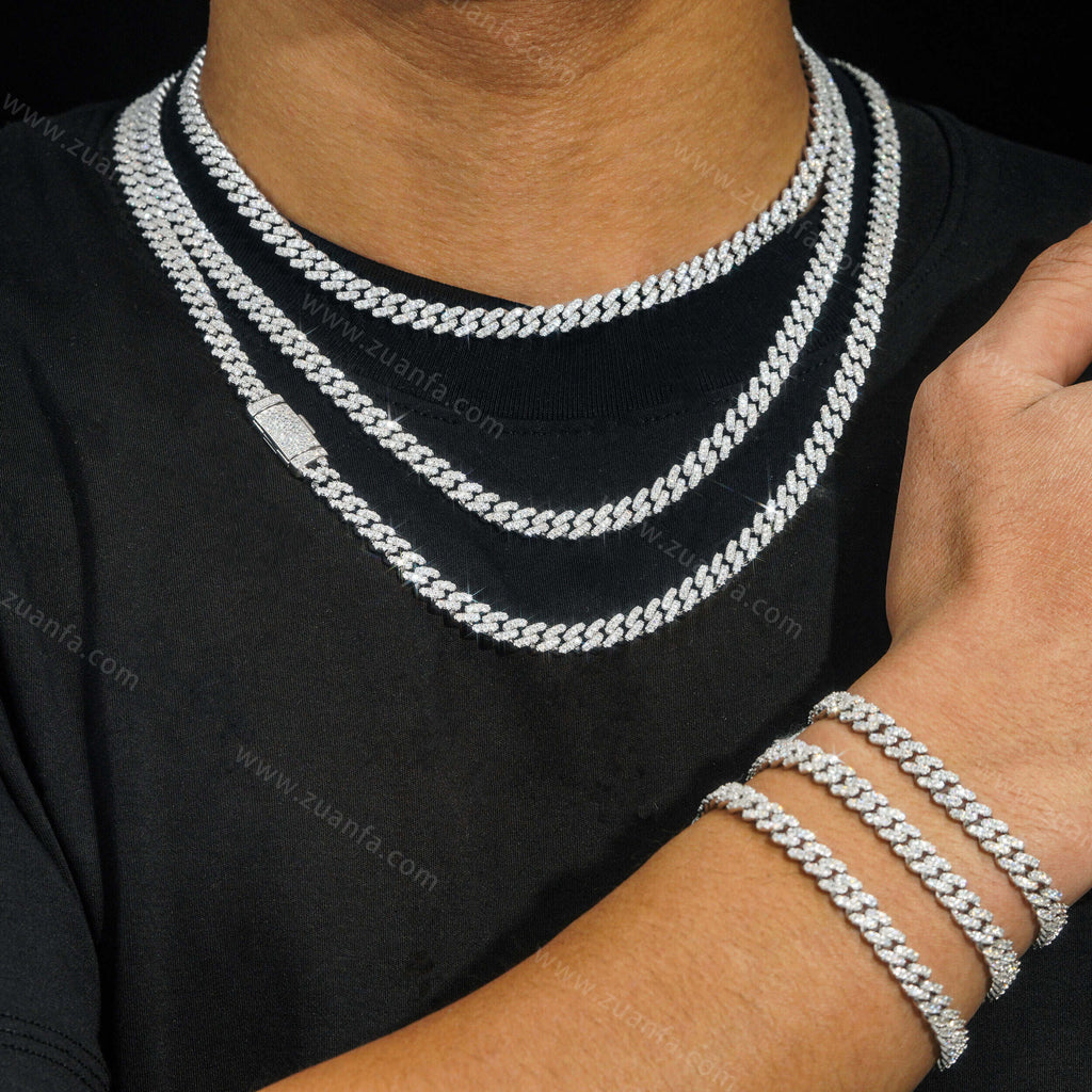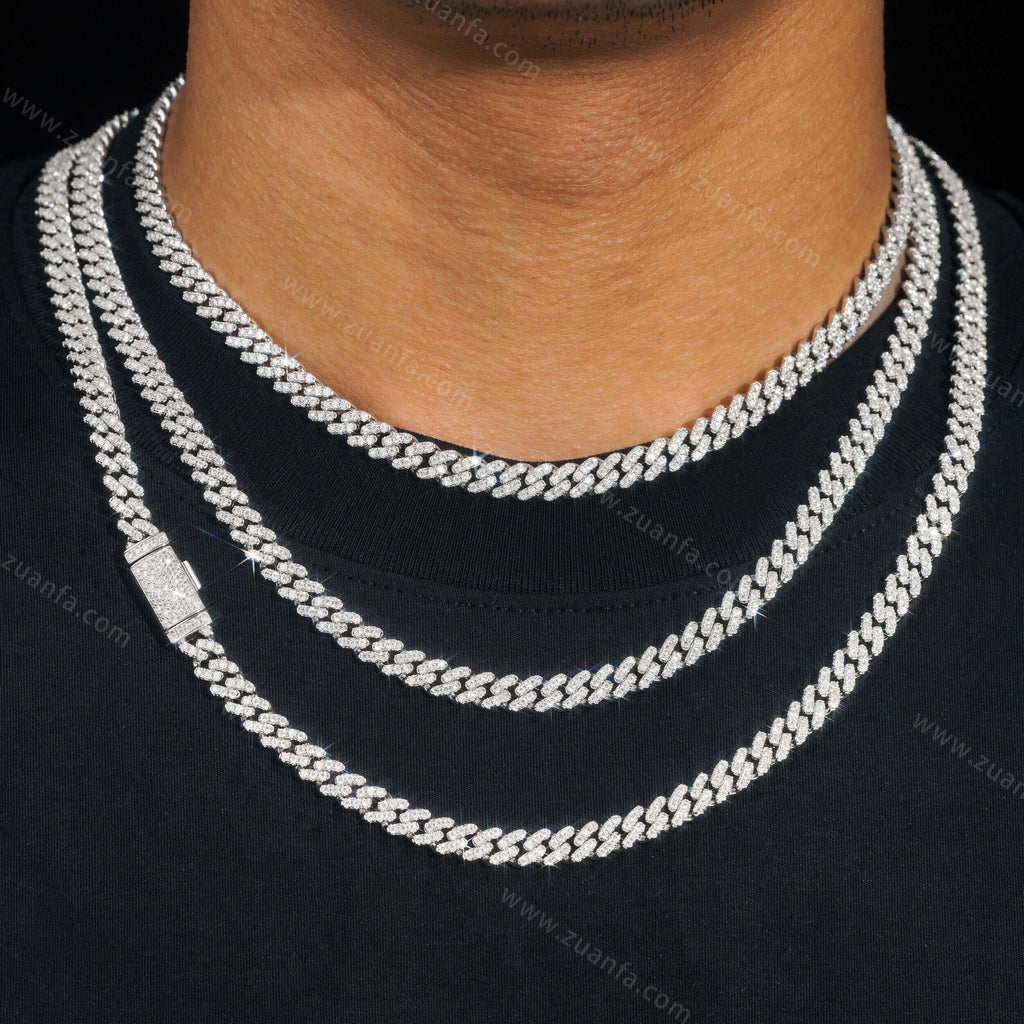 This Zuanfa exclusive 6MM Moissanite Cuban Link Chain is made from 925 sterling silver and plated with a thick layer of 18K Gold.