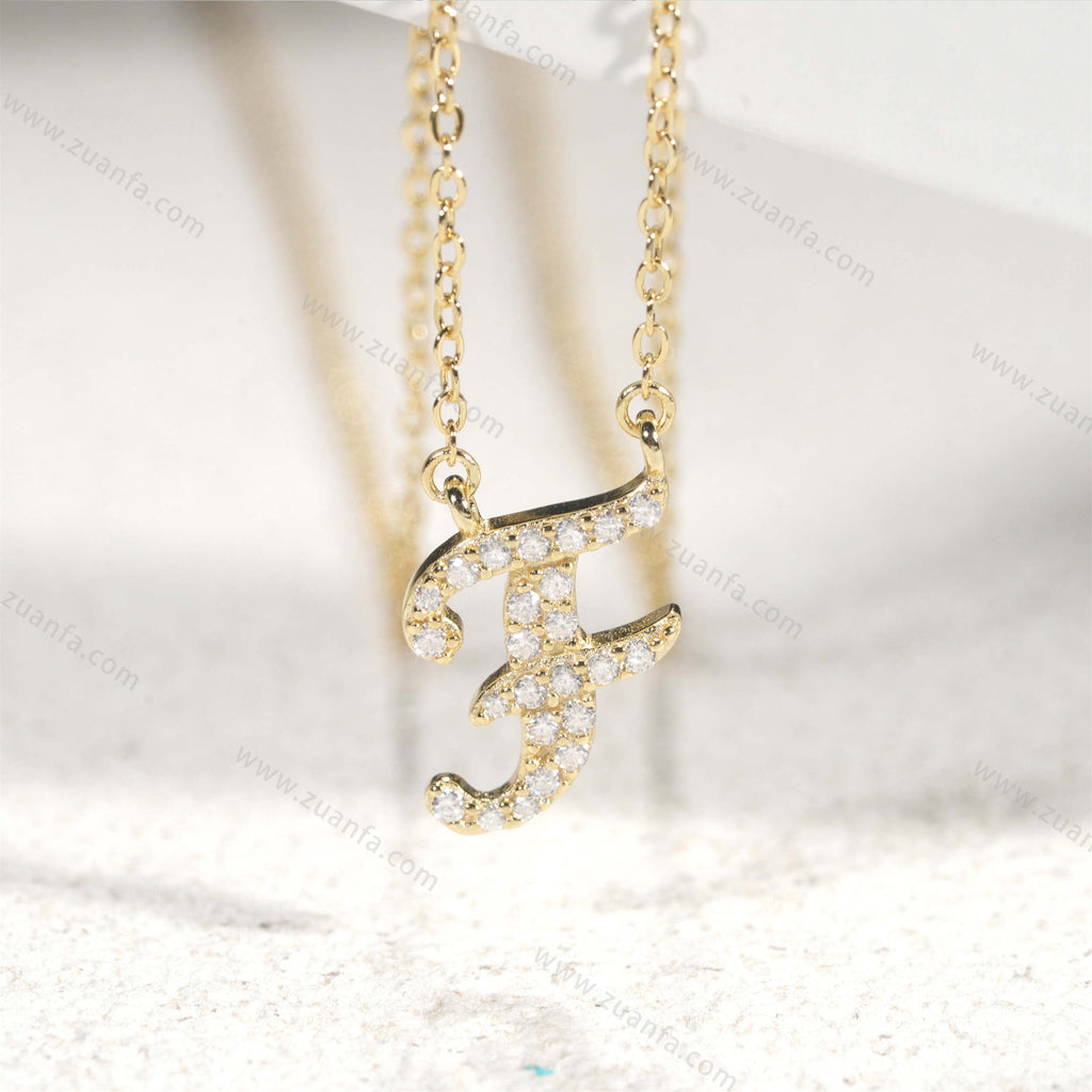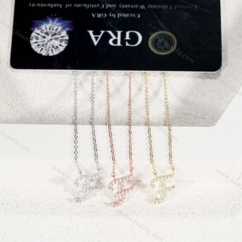 Letter F Moissanite Pendant Necklace