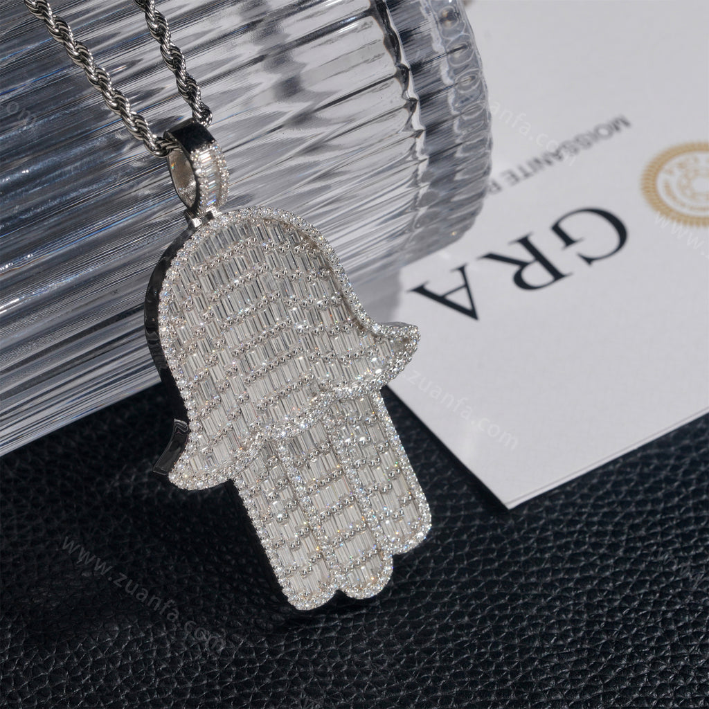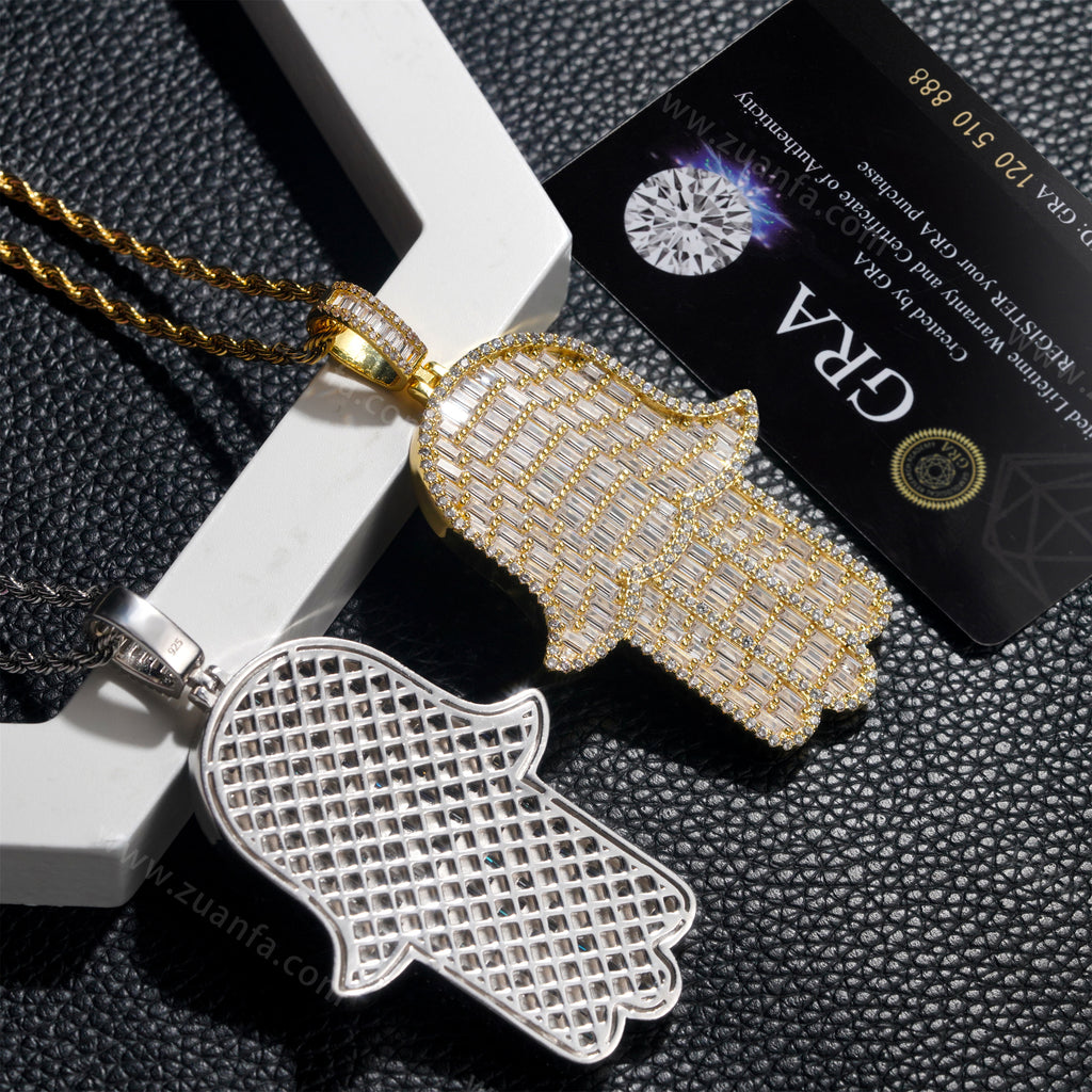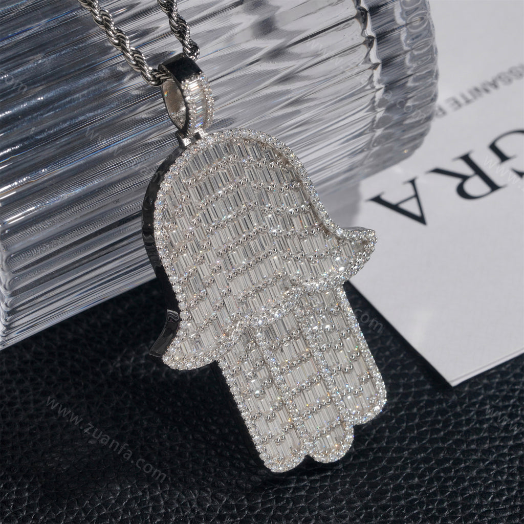 Big Luxury Baguette Moissanite Hamsa Hand Pendant
