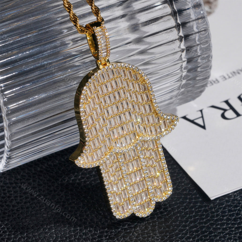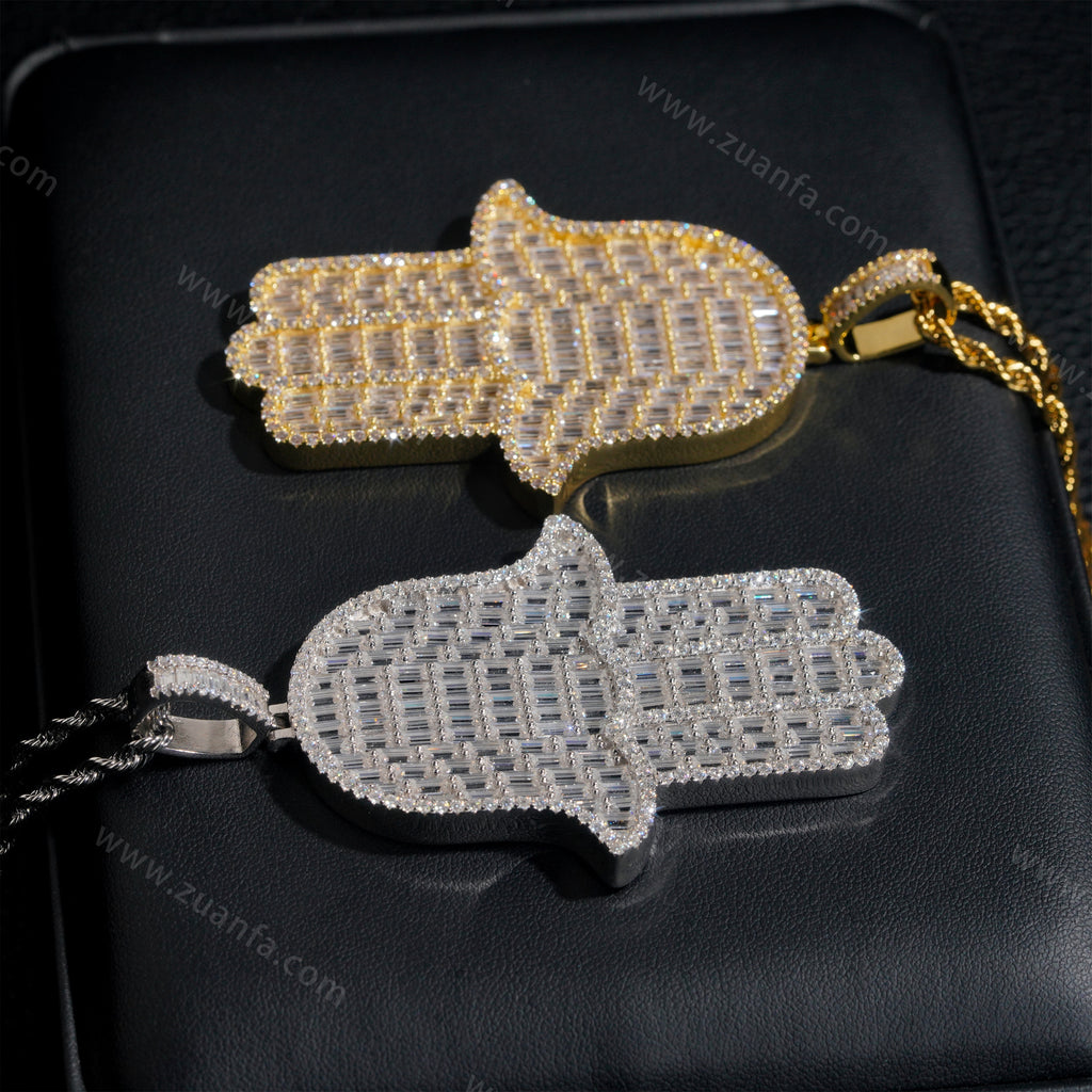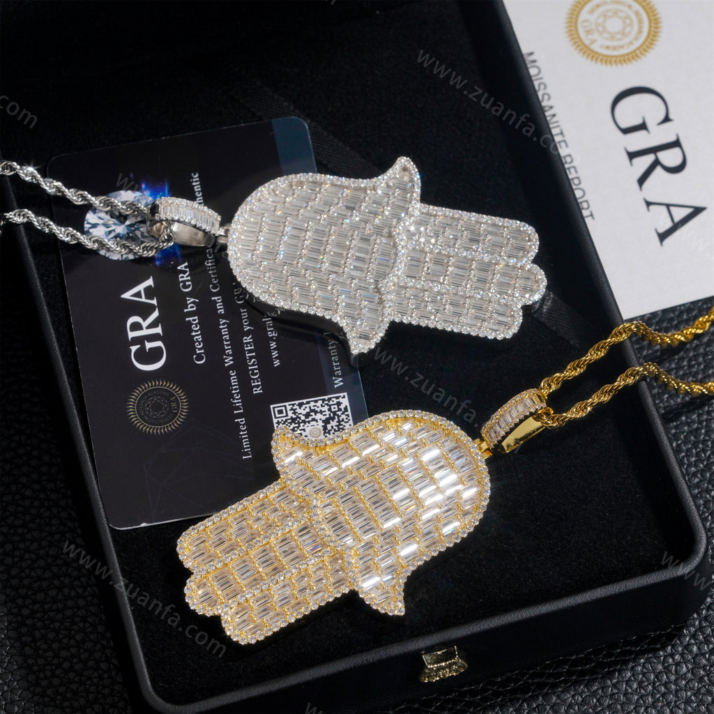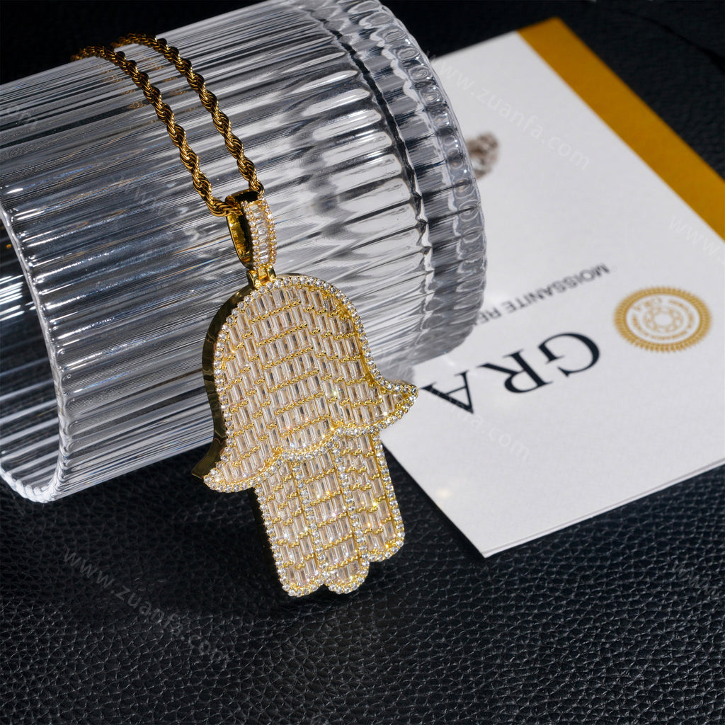 Big Luxury Baguette Moissanite Hamsa Hand Pendant
