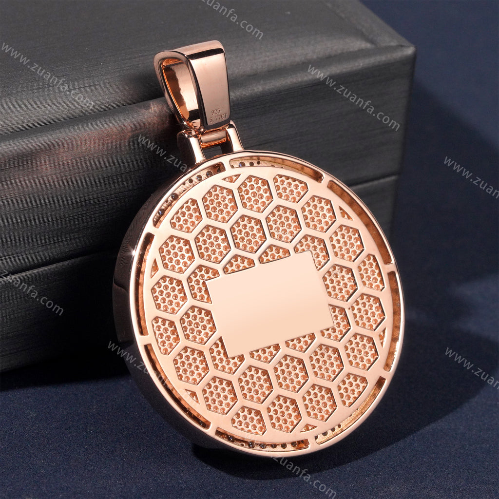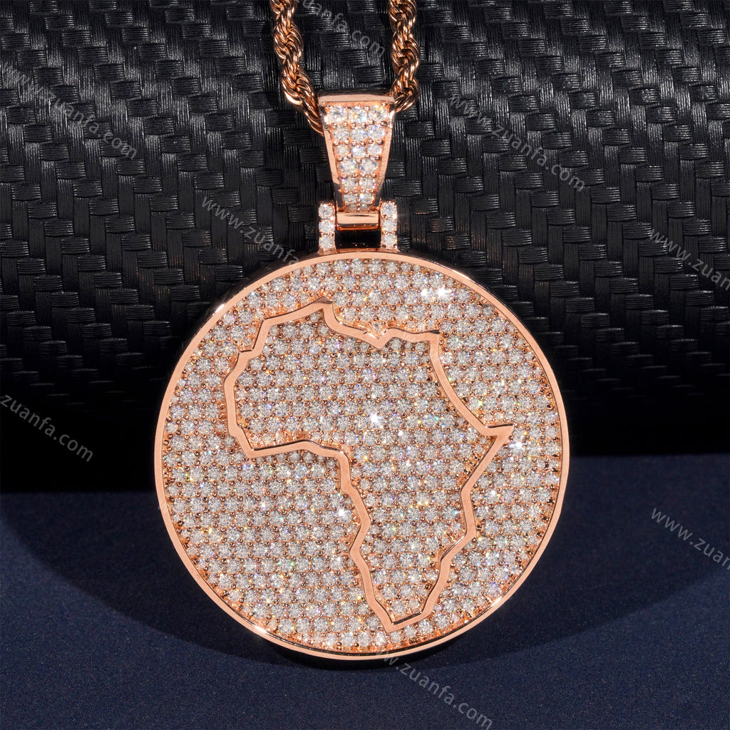 This moissanite Pendant is iced out with round cut, colorless (D-Color), VVS moissanite flawless diamonds. All of the diamonds on this moissanite pendant are guaranteed to pass the diamond tester.
