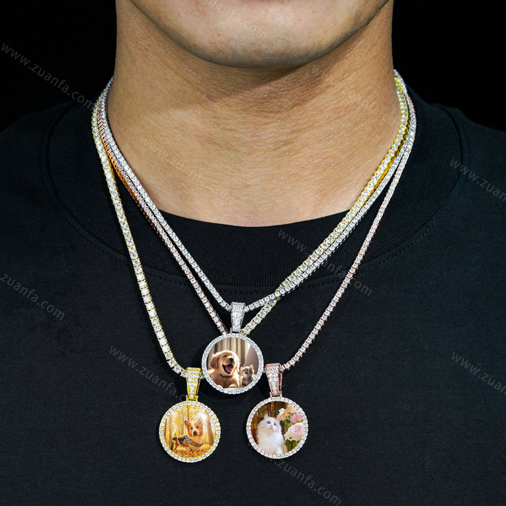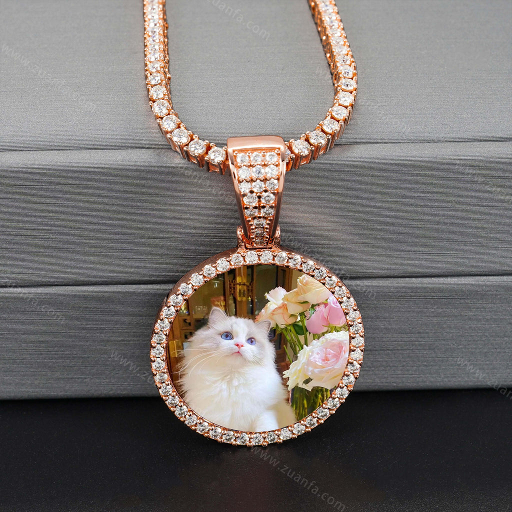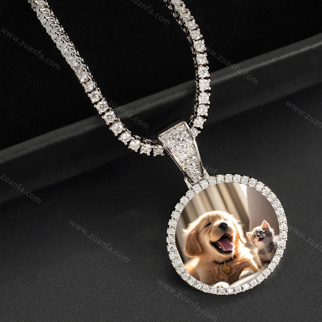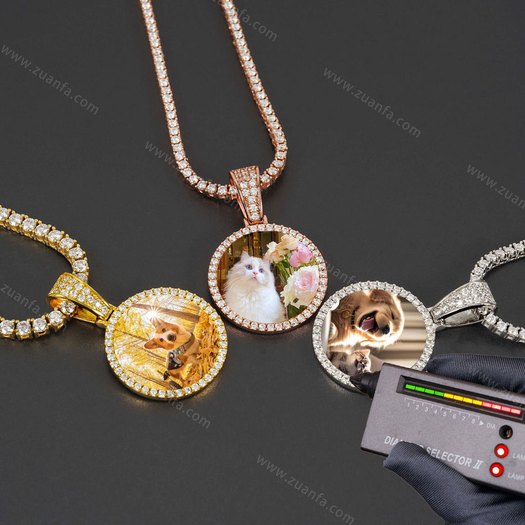 This moissanite Pendant is iced out with round cut, colorless (D-Color), VVS moissanite flawless diamonds. All of the diamonds on this moissanite pendant are guaranteed to pass the diamond tester.