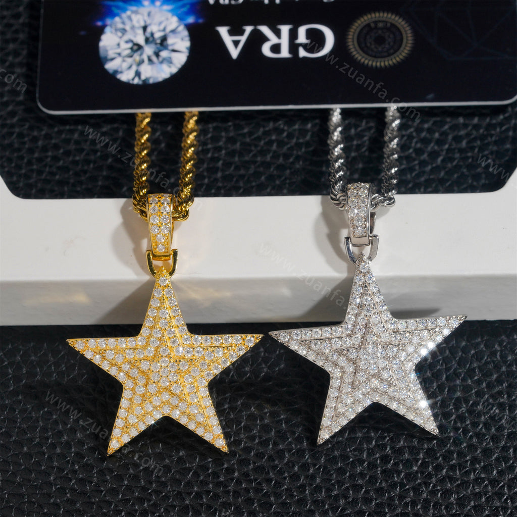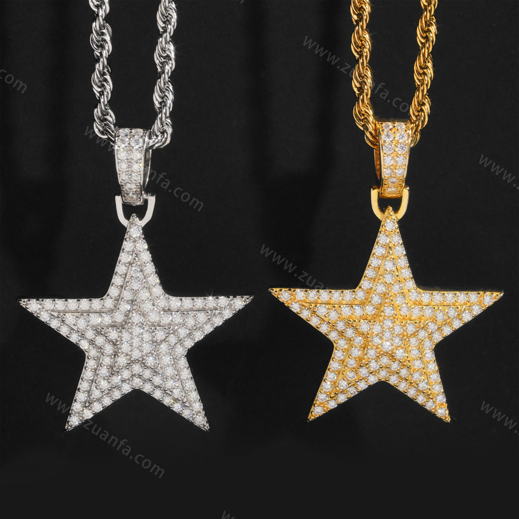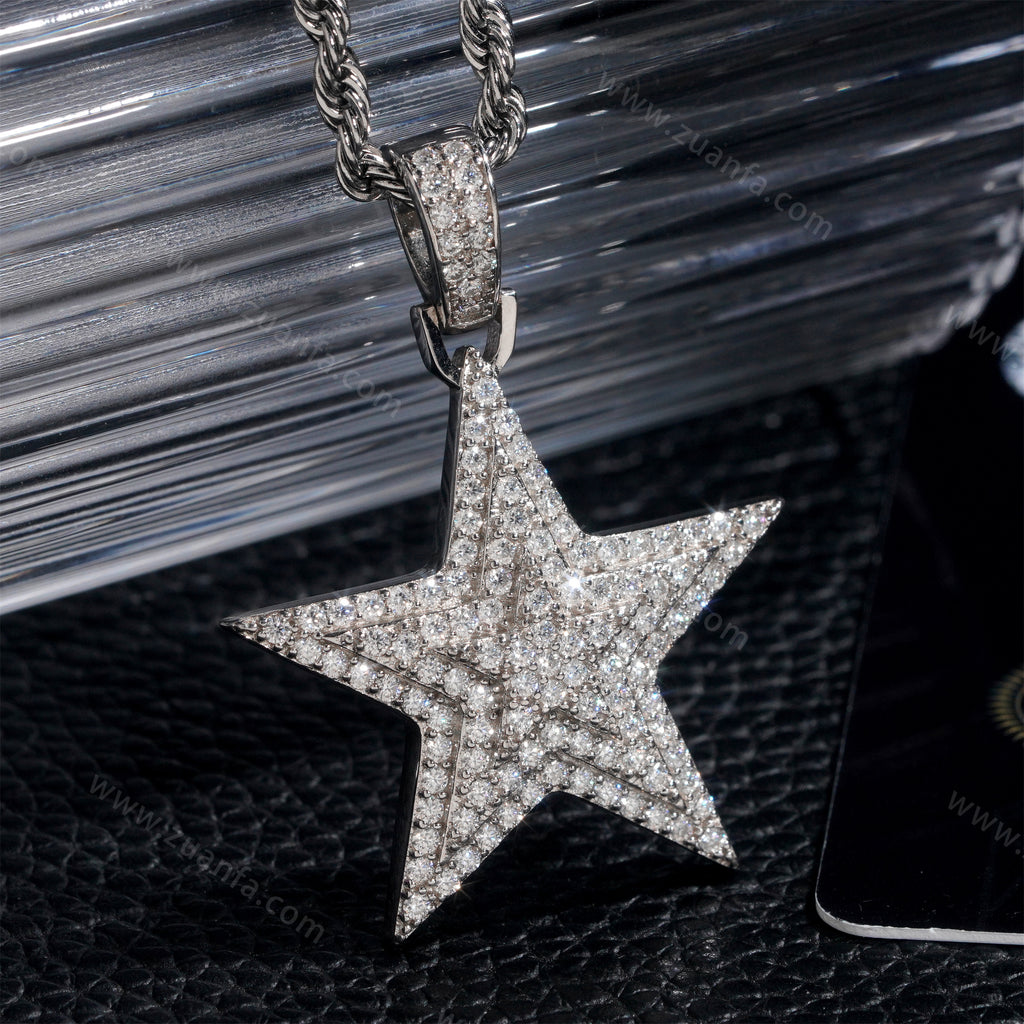 This moissanite Pendant is iced out with round cut, colorless (D-Color), VVS moissanite flawless diamonds. All of the diamonds on this moissanite pendant are guaranteed to pass the diamond tester.