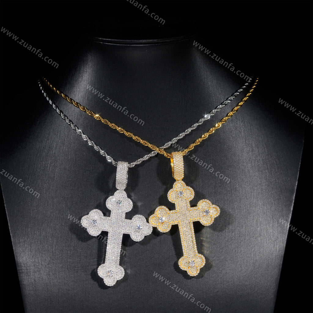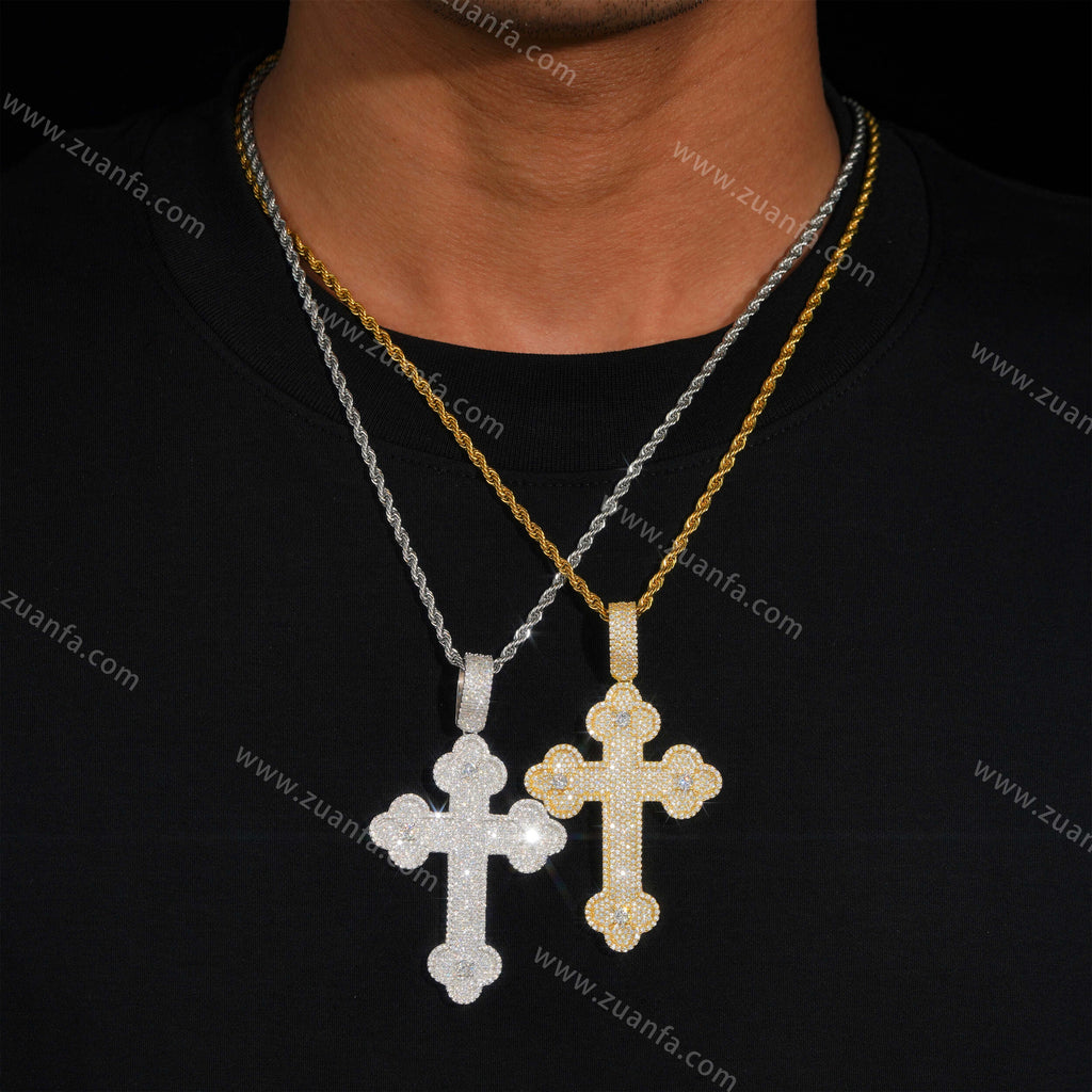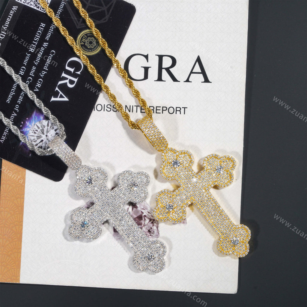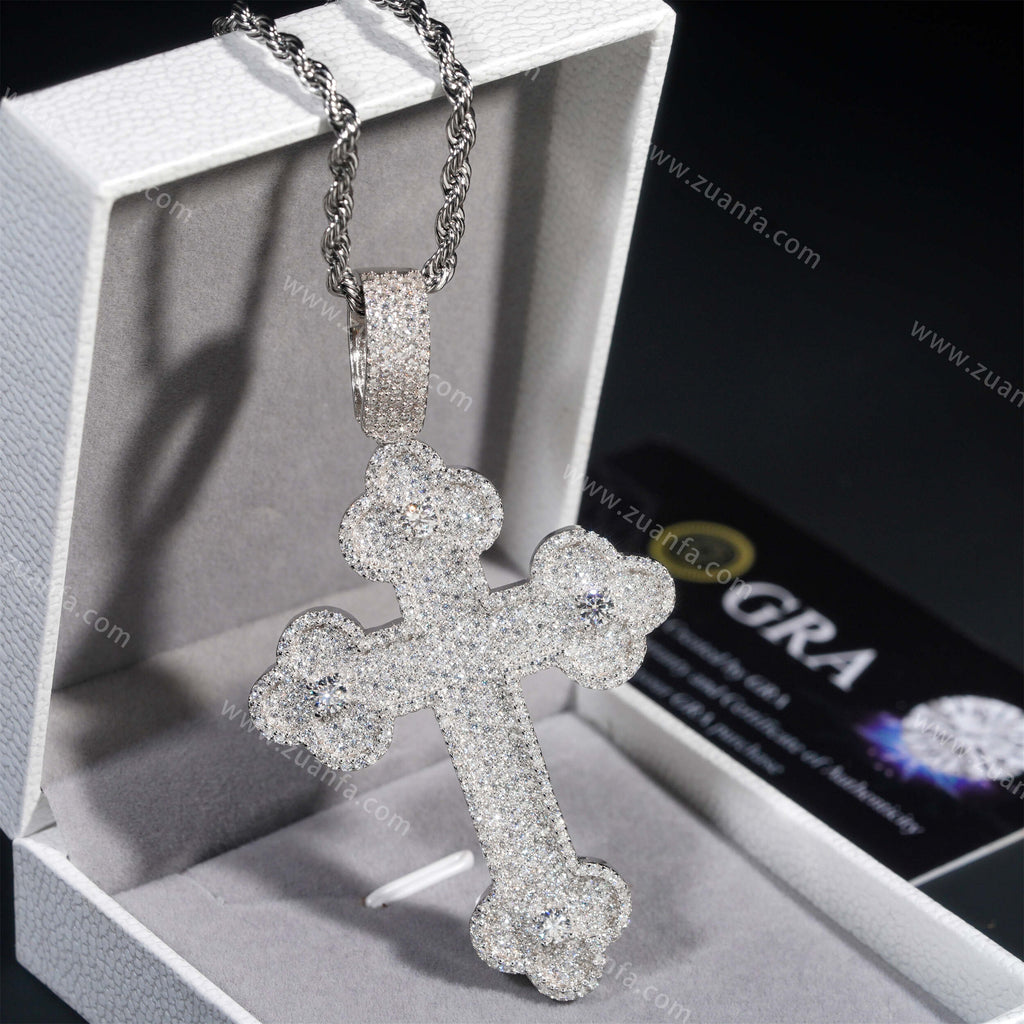 This moissanite Pendant is iced out with round cut, colorless (D-Color), VVS moissanite flawless diamonds. All of the diamonds on this moissanite pendant are guaranteed to pass the diamond tester.