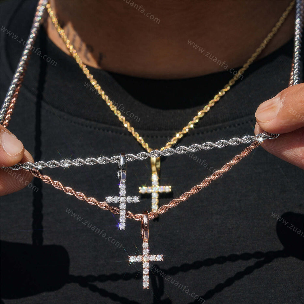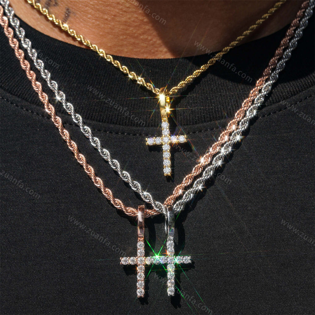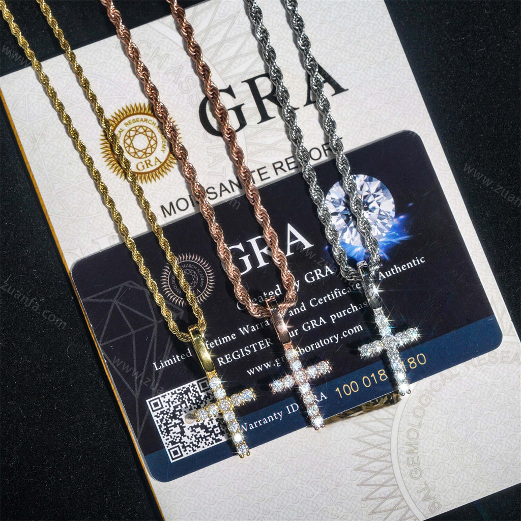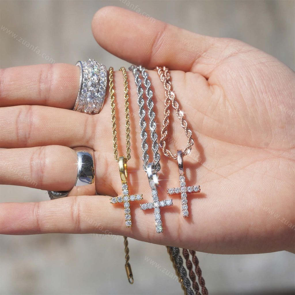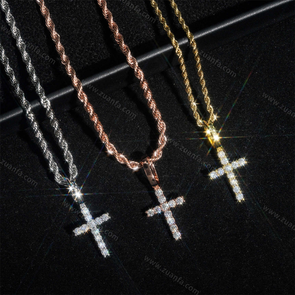 High Quality 2.5MM Moissanite Cross Pendant 18k Gold